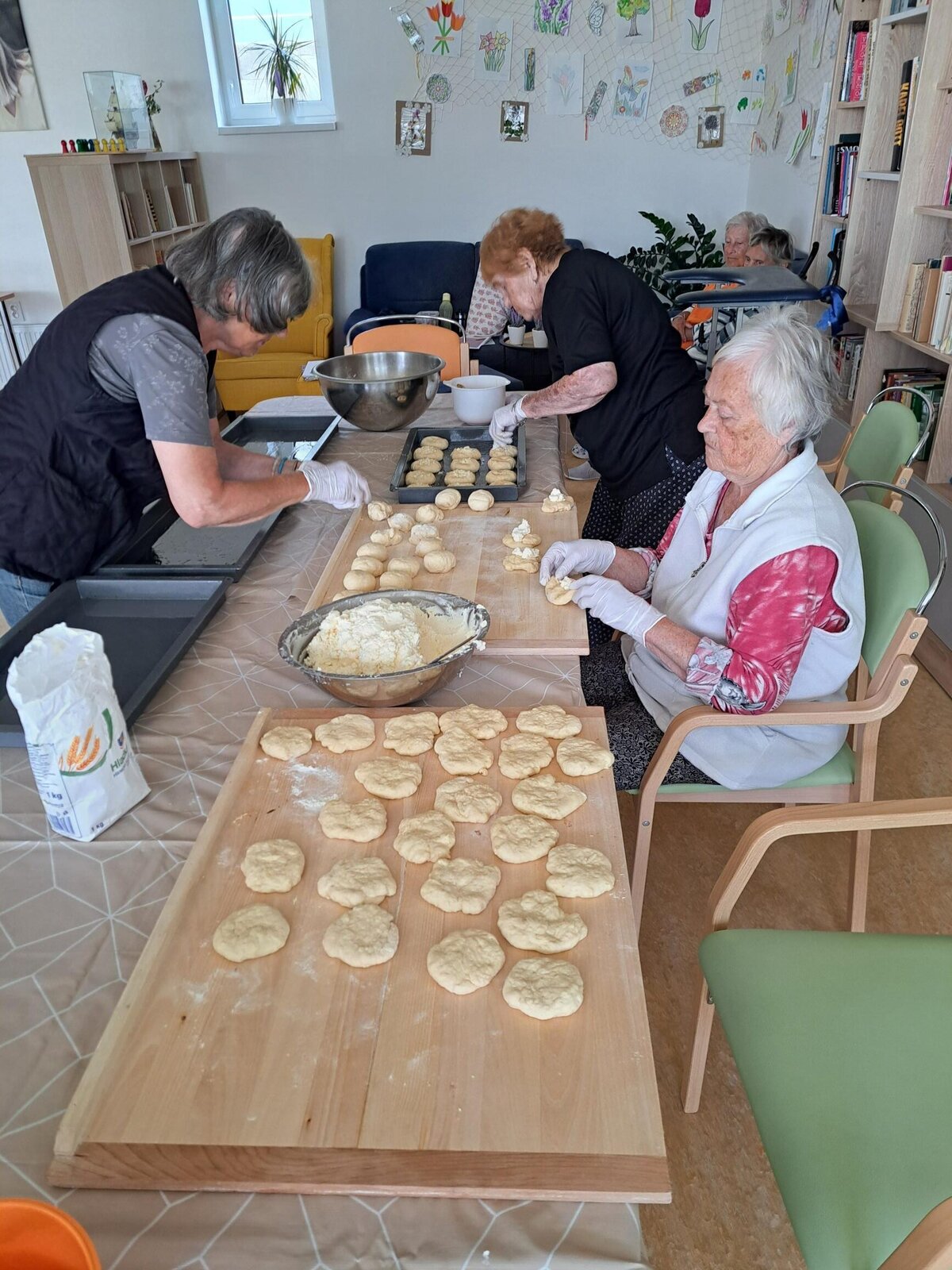 Klienti Senevida Boskovice se společně s aktivizačními pracovnicemi v rámci dopolední aktivizace pustili do pečení voňavých tvarohových koláčů, na kterých si všichni pochutnáme ve čtvrtek při příležitosti oslavy narozenin květnových oslavenců. 😋 Příjemná vůně se nesla celým naším Domovem a výsledek byl přímo famózní, posuďte sami.
