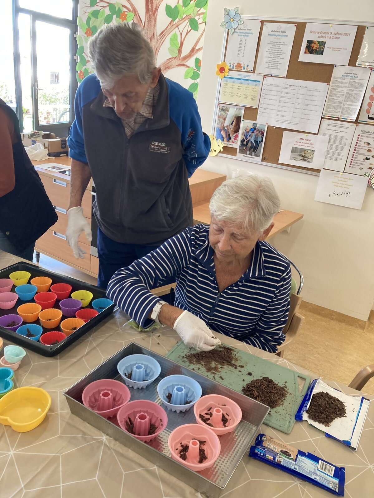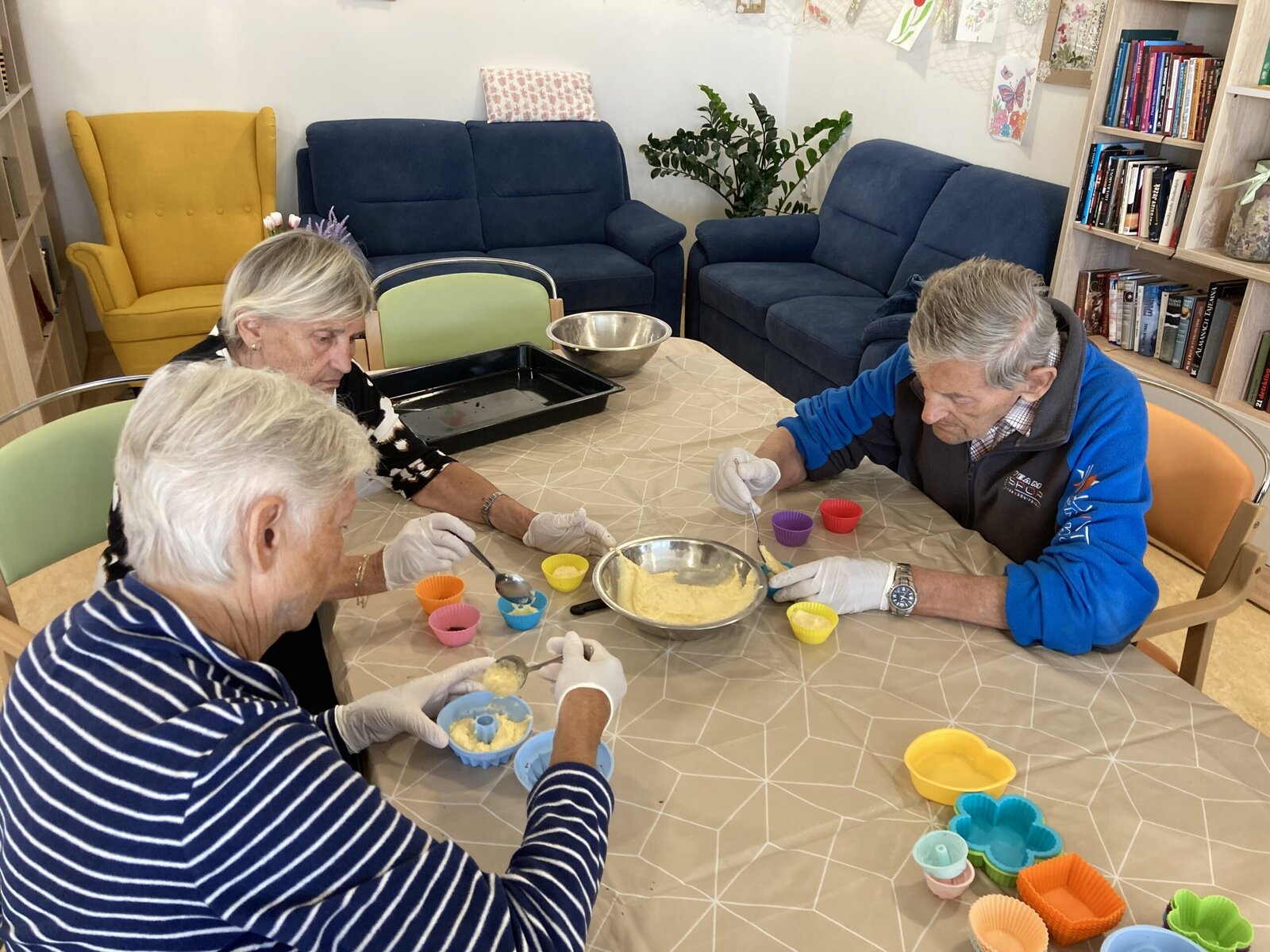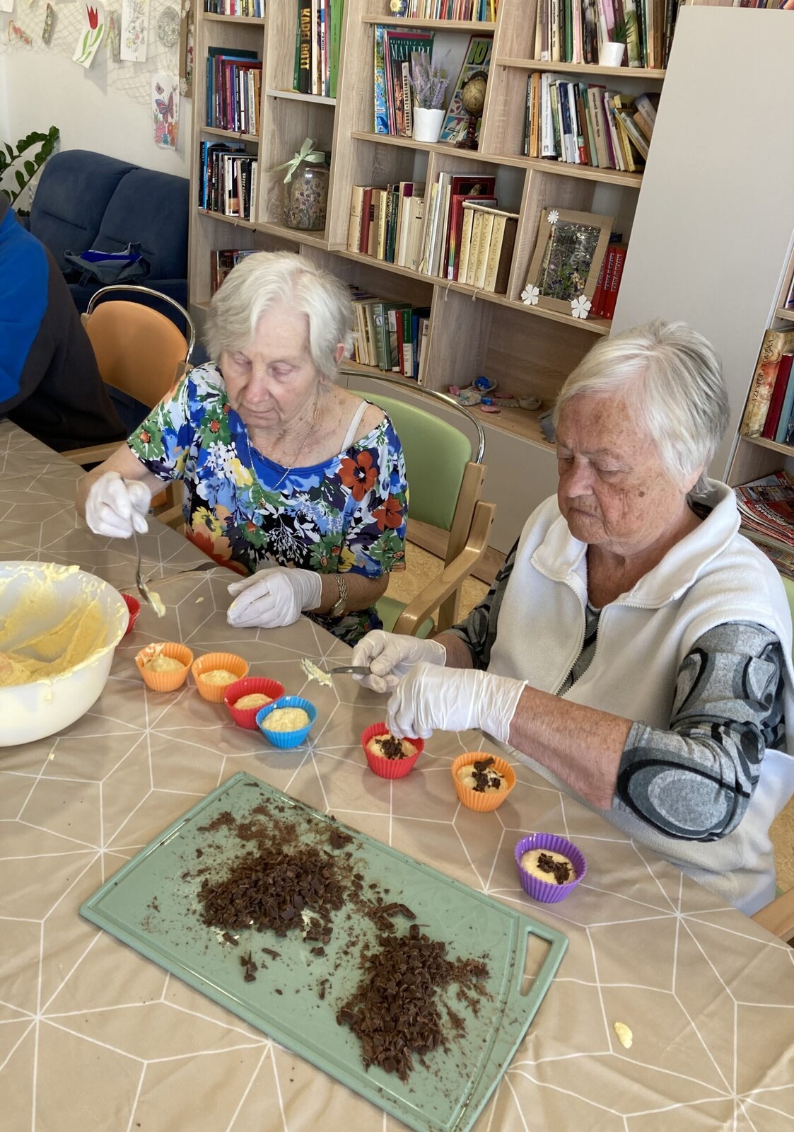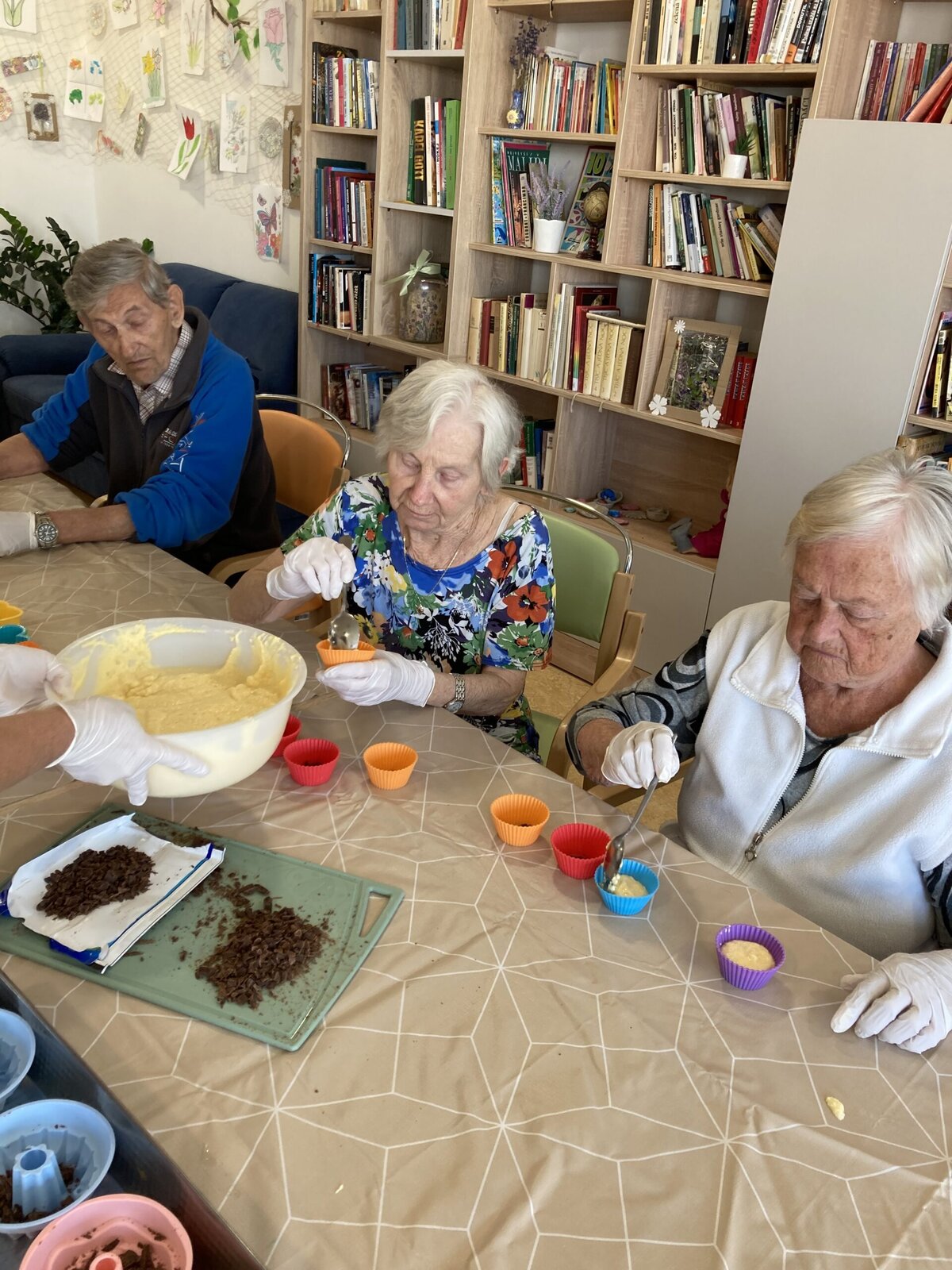 Budovu Senevida v Boskovicích dnes provoněla příjemná vůně sladkého pečiva. Klienti společně s aktivizačními pracovnicemi se v rámci dopolední aktivizace pustili do pečení muffinů. 😋 Recept byl jednoduchý, a tak se naše zkušené cukrářky pustily do práce. Nejprve smíchaly sypké suroviny, poté zvlášť tekuté, a následně vše spojily dohromady. Na závěr do těsta přidaly nakrájenou čokoládu. Výsledek se moc povedl, můžete se podívat sami. 👍