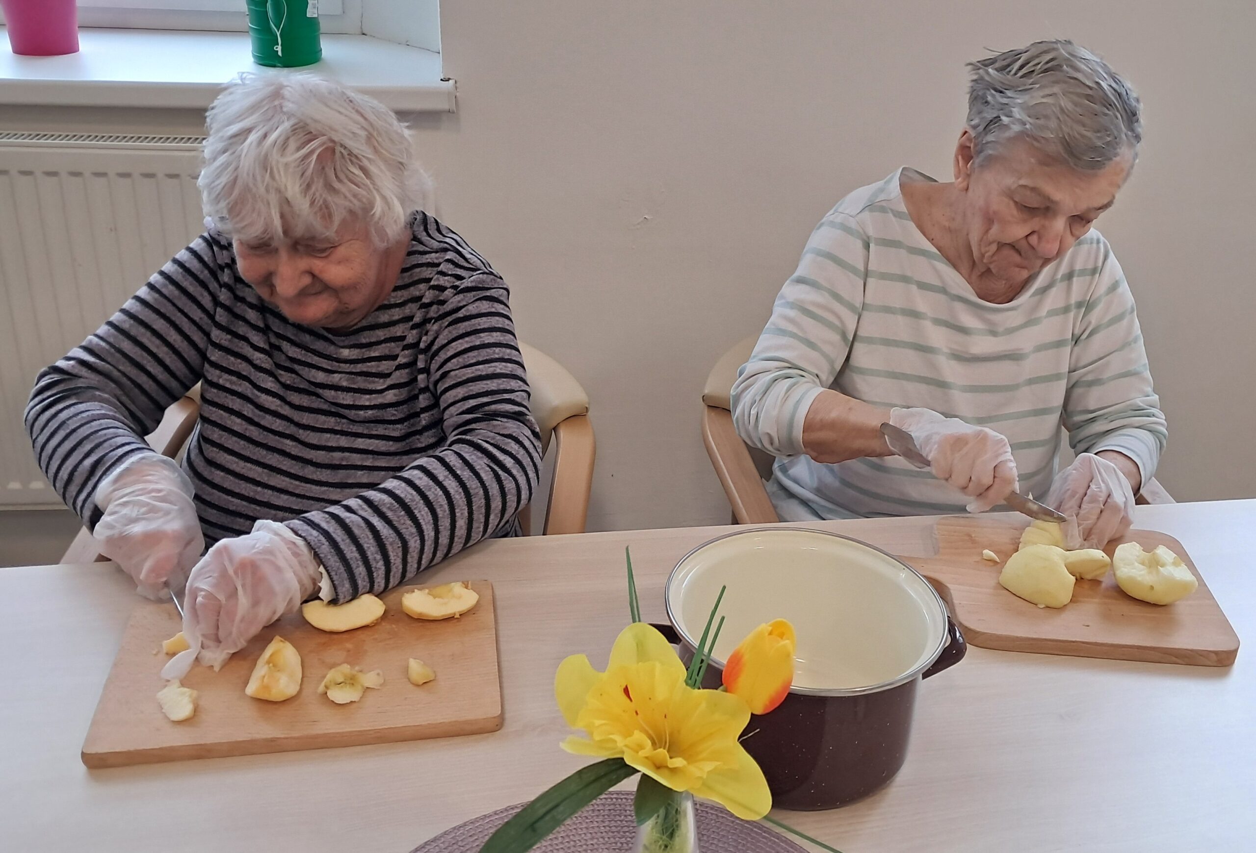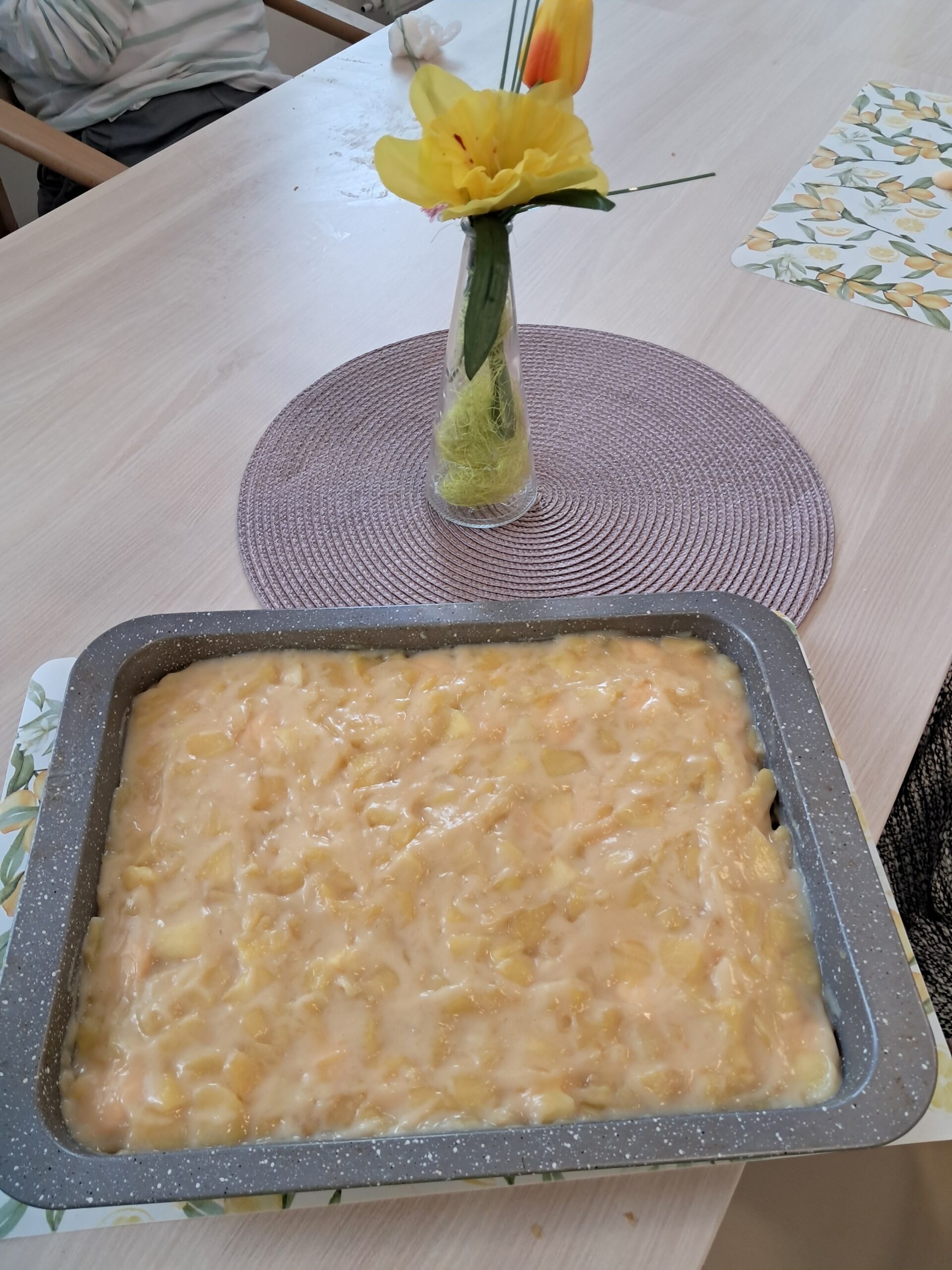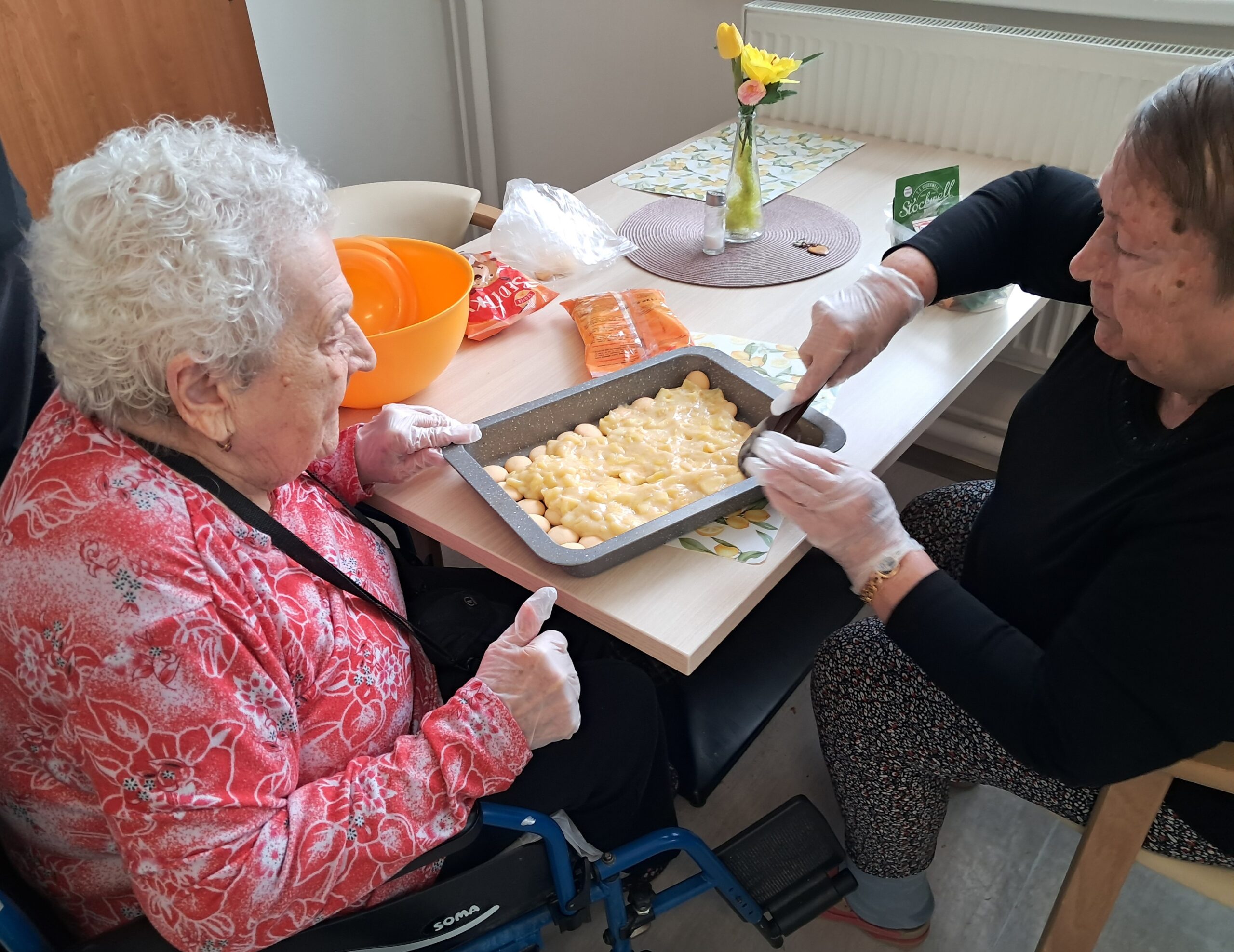 Dopoledne jsme se s klienty zapojili do přípravy nepečeného pudingového zákusku s piškoty a jablky. Klienti pomáhali s jednotlivými kroky přípravy, procvičili si jemnou motoriku i spolupráci a společně jsme si užili příjemně strávený čas při tvoření sladké dobroty, kterou si klienti rádi dají ke své oblíbené kávě.