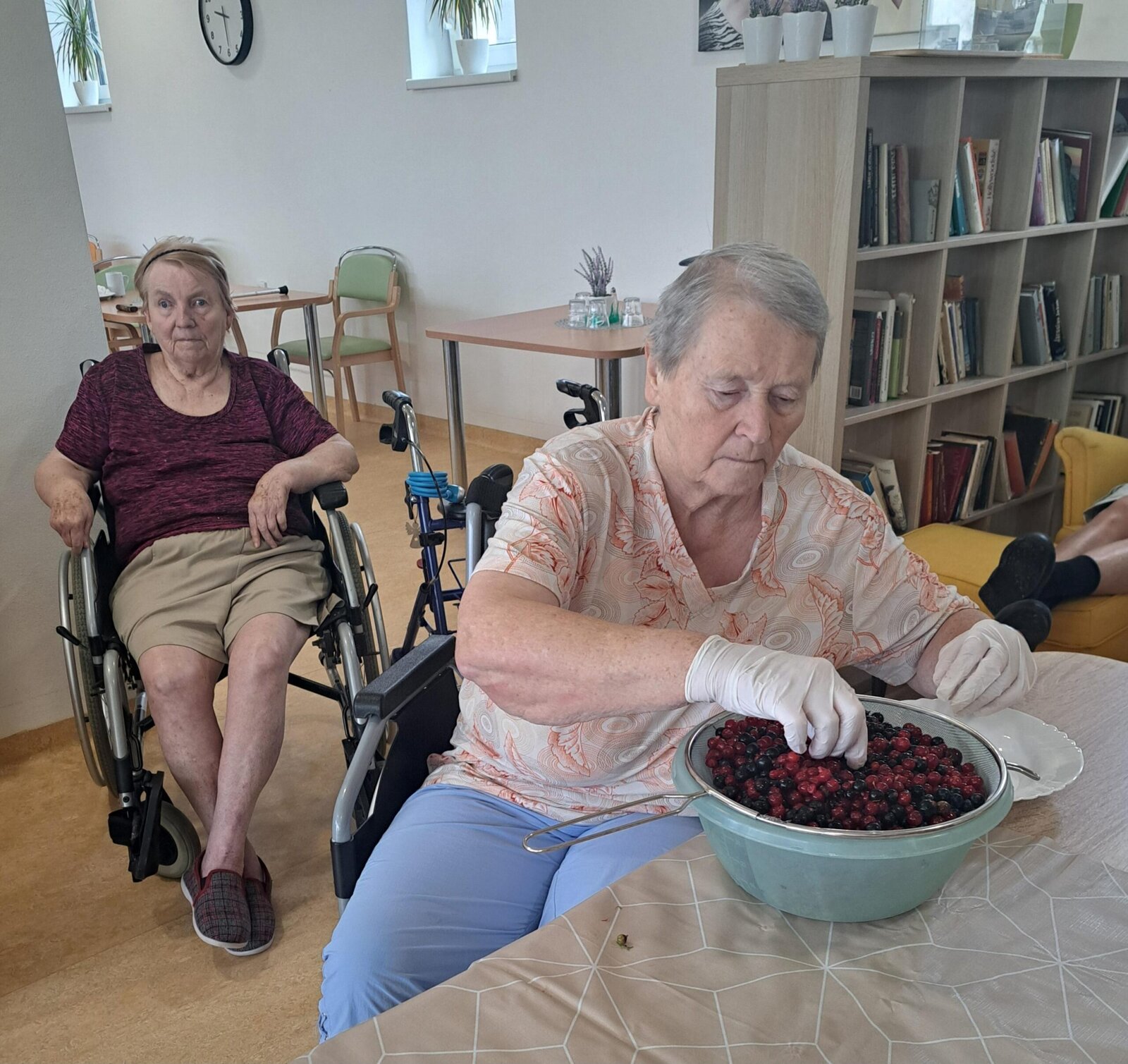 Klienti Senevida v Boskovicích se společně s aktivizačními pracovnicemi pustili v rámci dopolední aktivizace do pečení ovocného koláče👍. Nejprve smíchali suroviny, které pak dali na plech, posypali červeným rybízem a na konec drobenkou. Koláč se povedl, a klienti si na něm moc pochutnali😋.