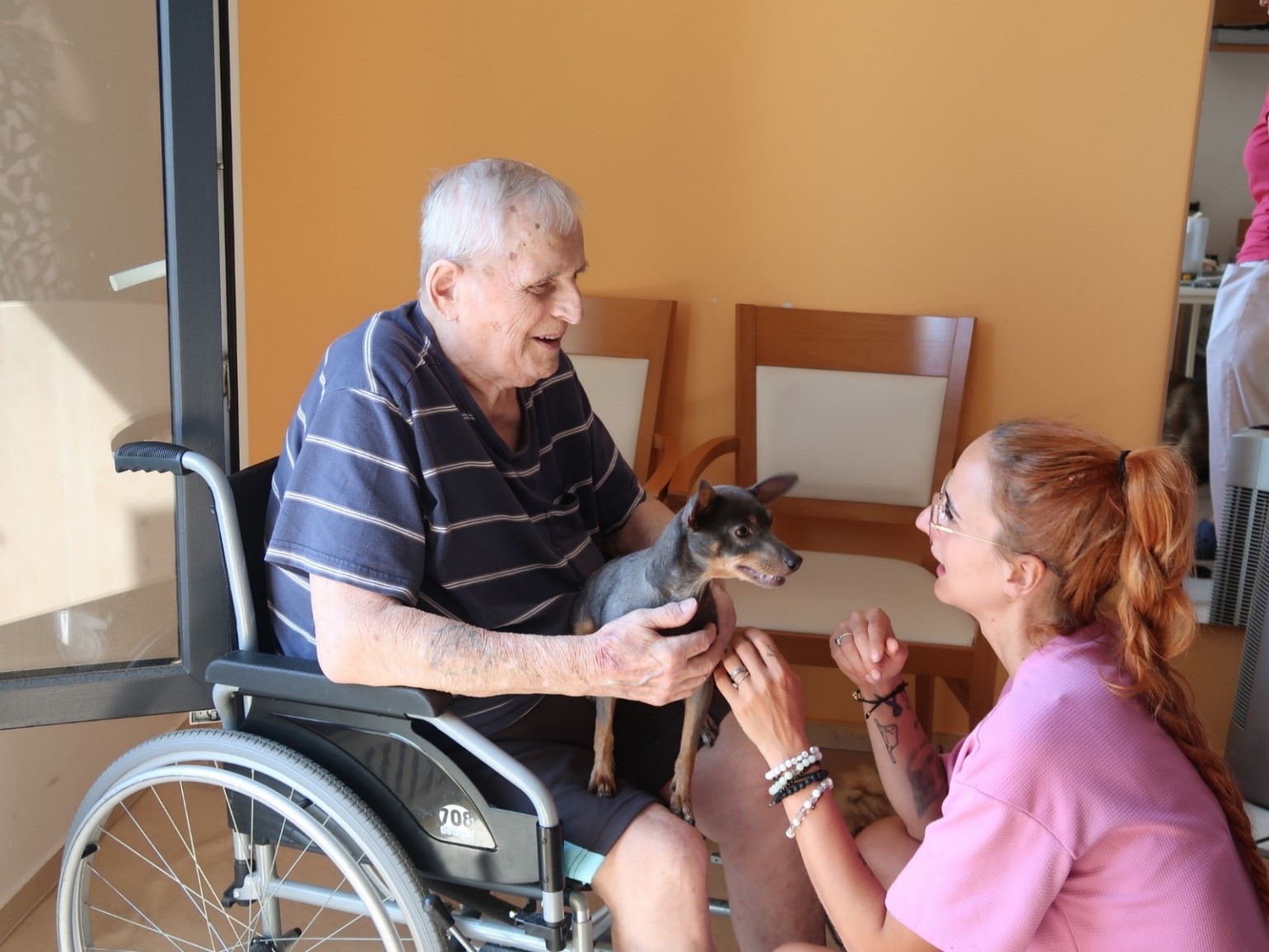 Návštěvy paní Anny Knop-Kostkové s jejími psími spolupracovníky dokazují, že psi přinášejí do života člověka něco výjimečného. Canisterapie je u našich klientů vždy doprovázena rozzářenými obličeji, úsměvy a pozitivními změnami nálady.