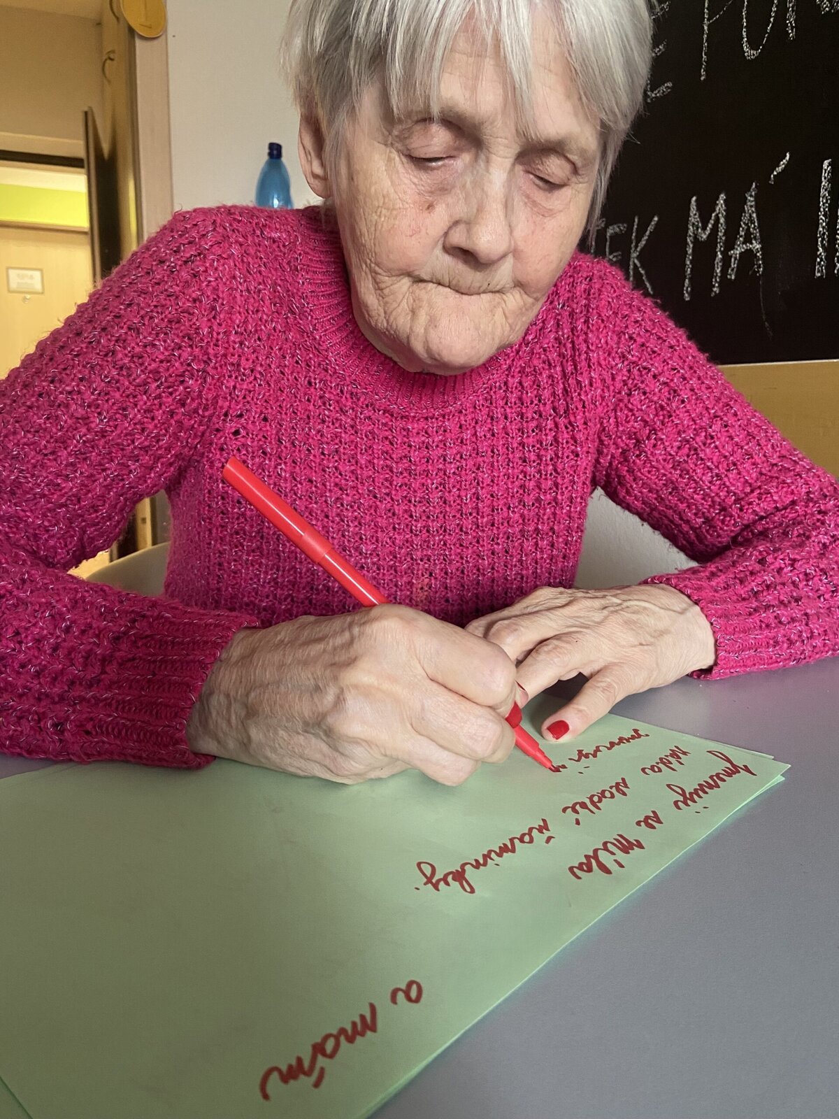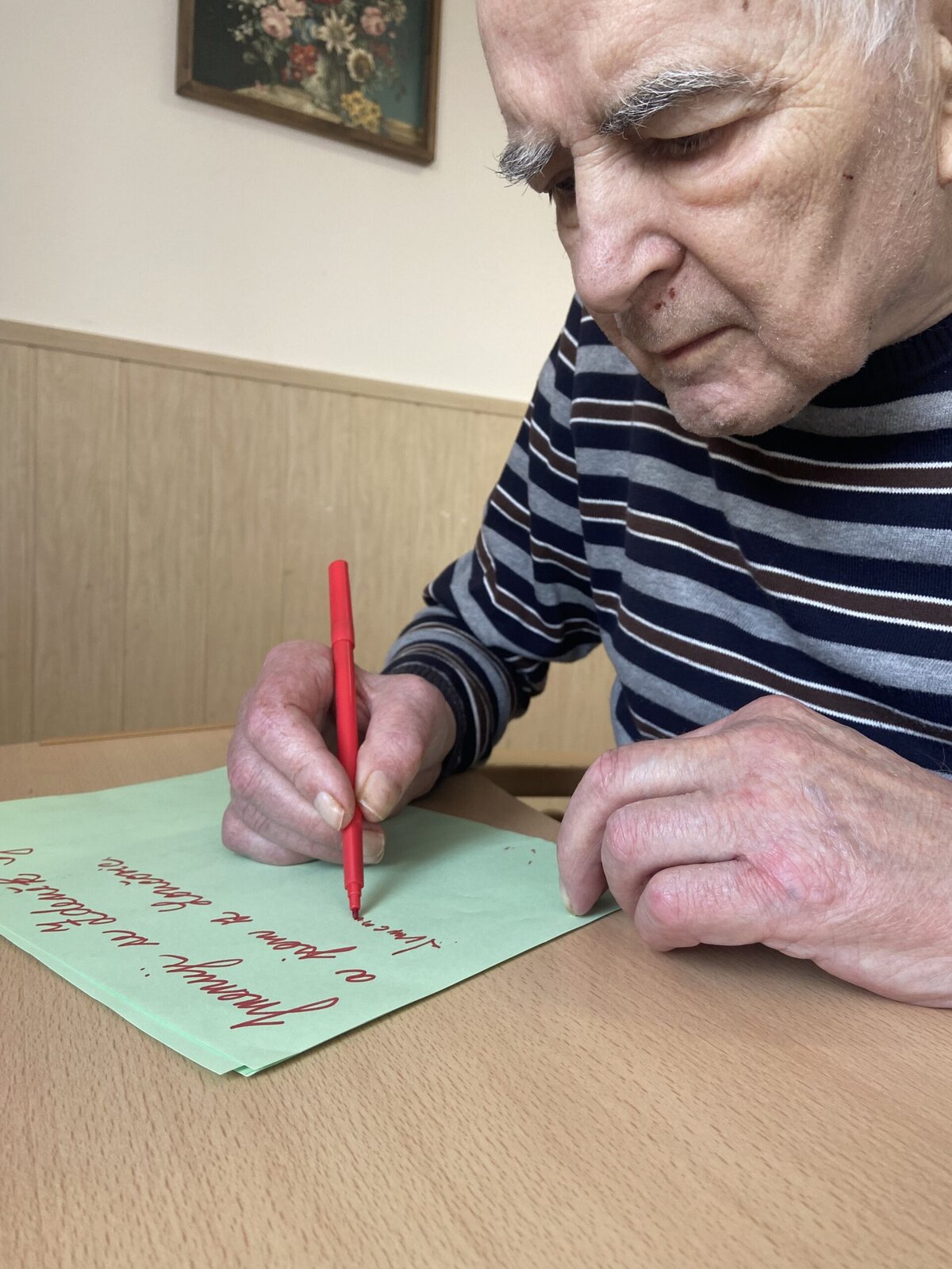 U nás v Domově si neprocvičujeme jen smysly, ale také například psaní. Takové psací písmo bychom si rádi zachovali. Zároveň nezapomínáme pečovat o nás kreslící arzenál. :-)