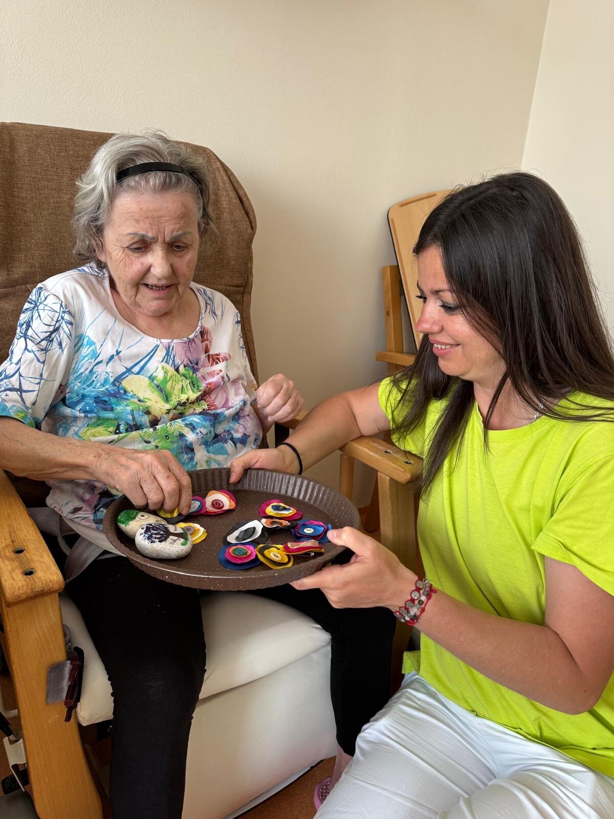 V rámci projektu s organizací Mezi námi, ops nám pro klienty Senevida Prácheň vyrobily děti ze školní družiny ZŠ Tylova Písek krásné barevné připínací knoflíky, jako poděkování za celoroční setkávání 😊😍. A my jsme jim na oplátku poslali dopis a malé dárečky v podobě sladkostí 🌞💜