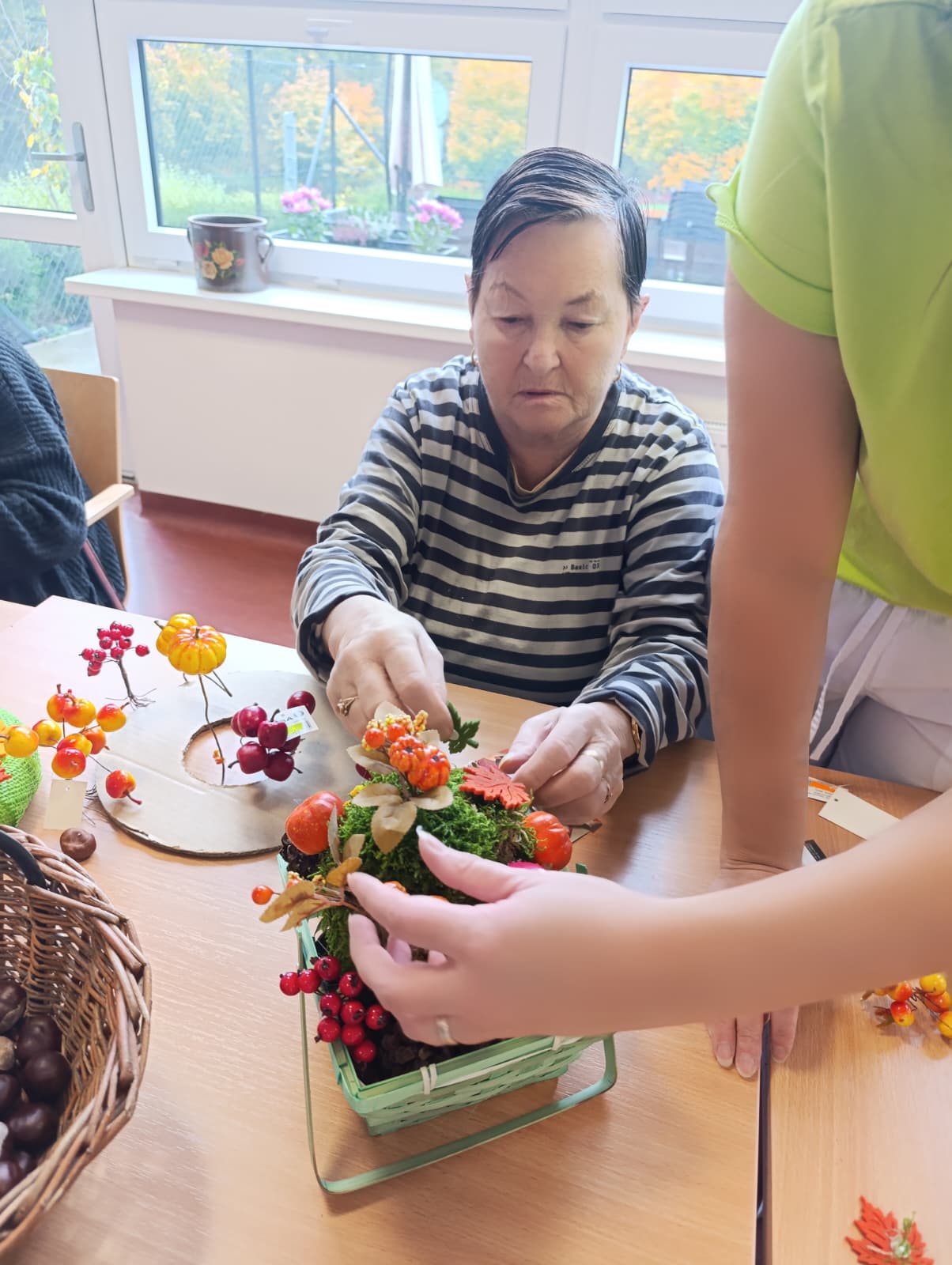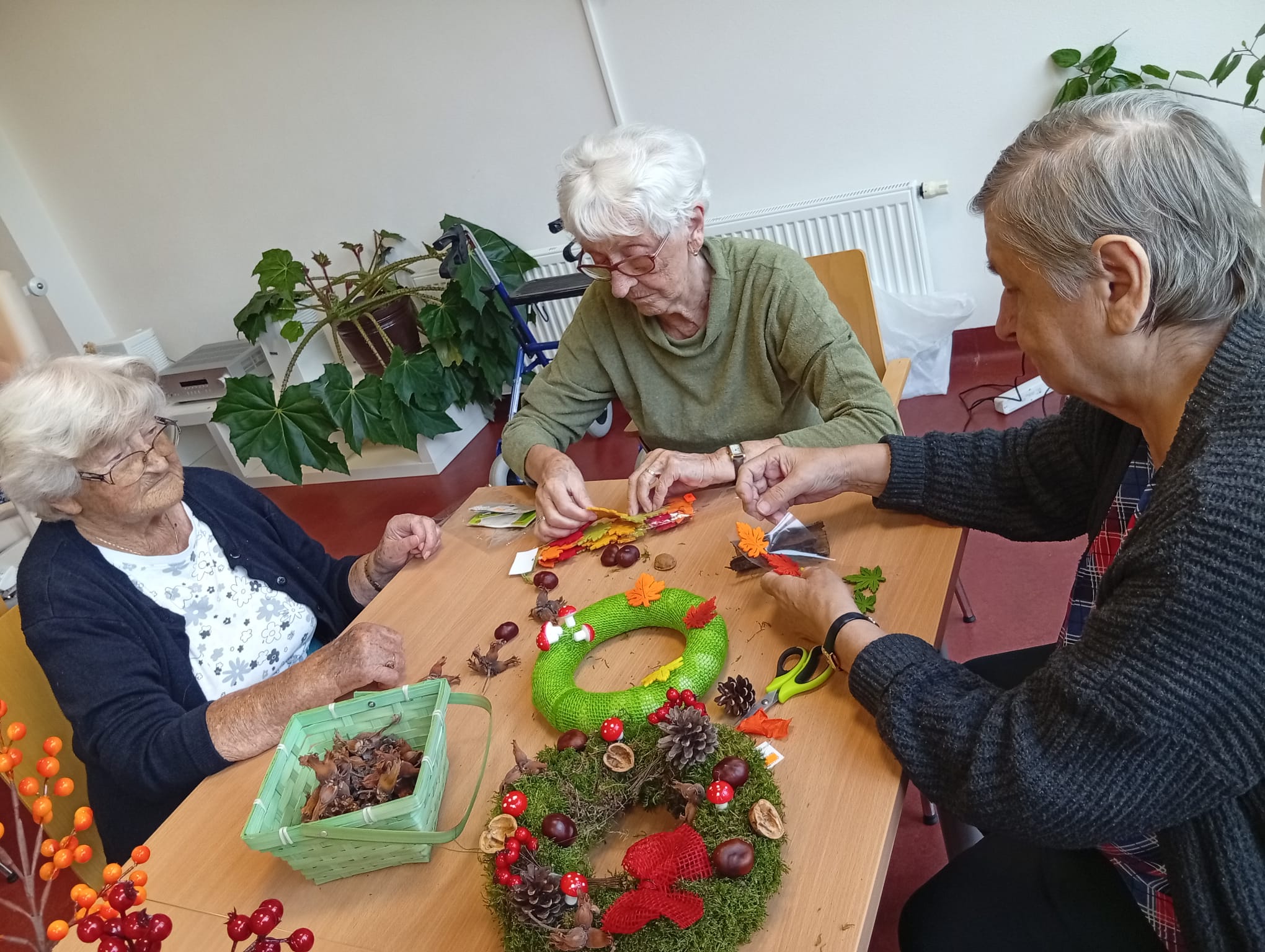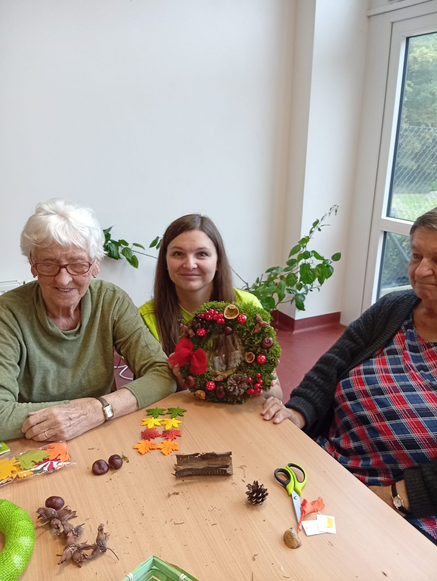 Senevida Nepomuk se oblékl do podzimních barev! 🍁 Klienti se s velkou kreativitou a nadšením pustili do tvoření podzimní výzdoby pro náš Domov. S pomocí přírodních materiálů jsme vytvořili krásné dekorace, které zdobí naše společné prostory. Bylo úžasné vidět, jak aktivně se zapojili a jak si užívali práci s přírodními materiály. Tvoření posiluje jemnou motoriku, a navíc nám vytváří útulnou a veselou atmosféru!🏵️