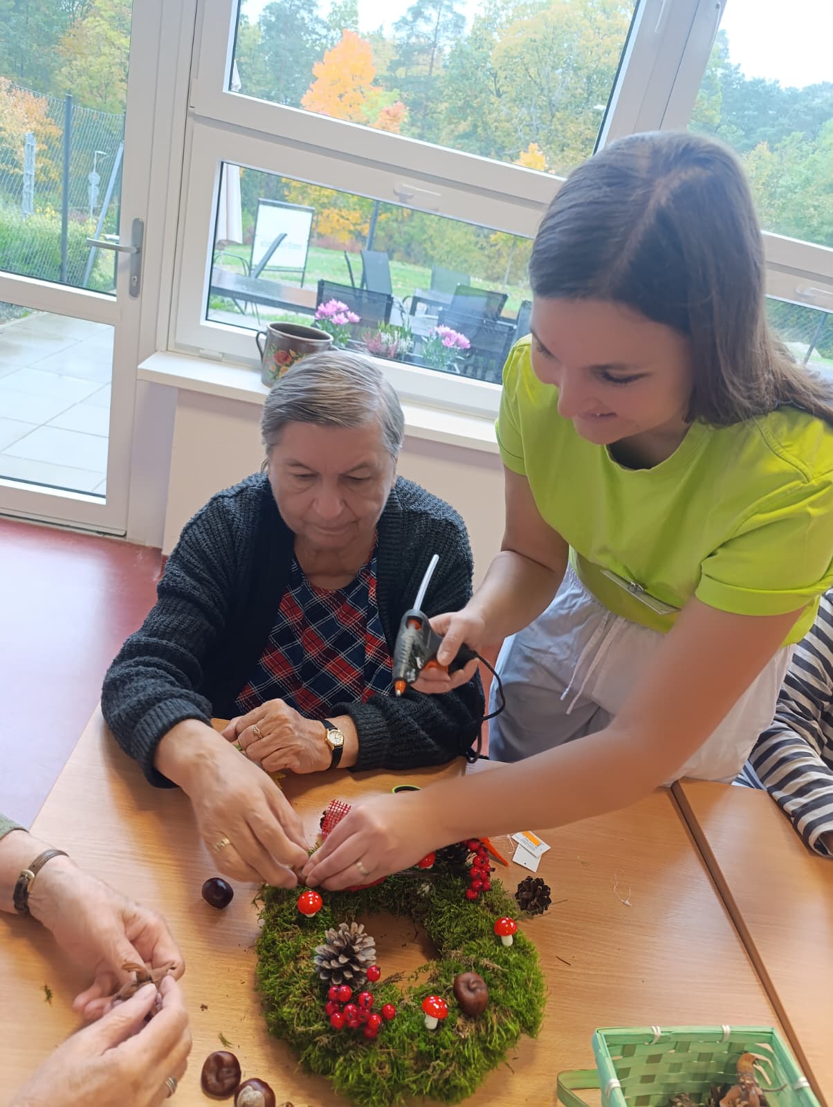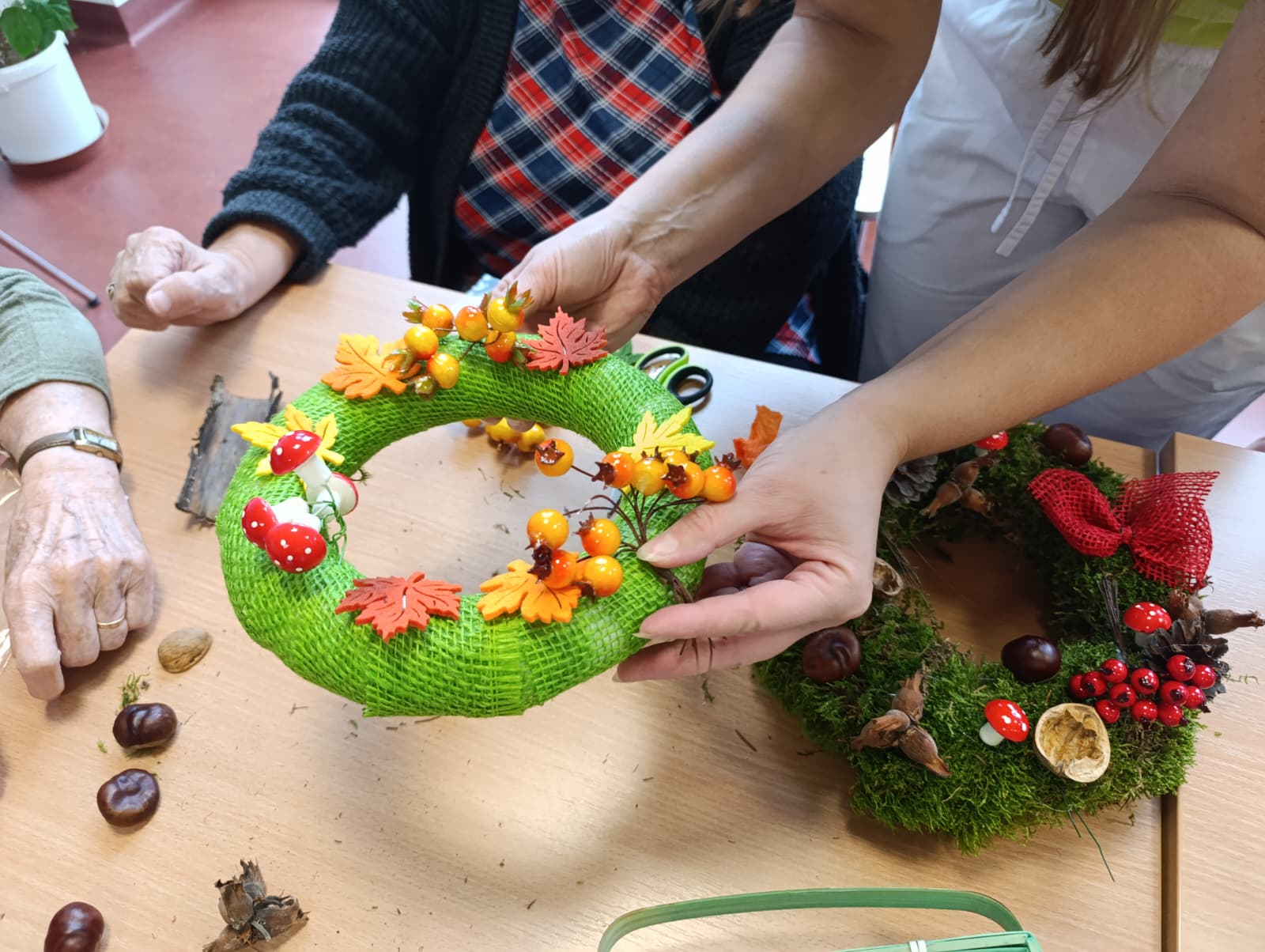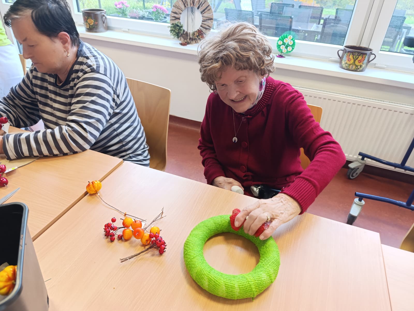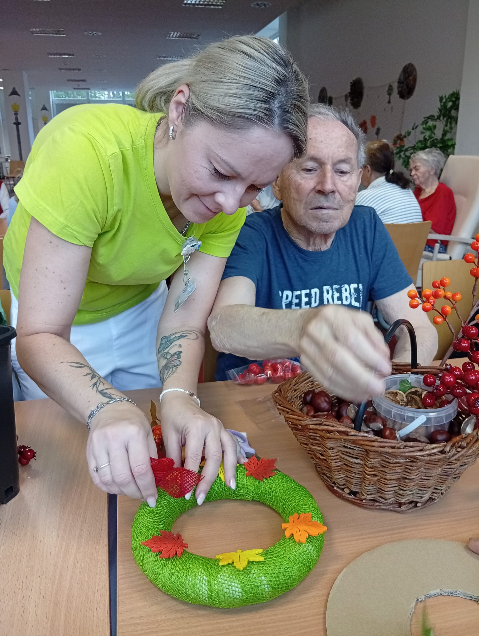 Senevida Nepomuk se oblékl do podzimních barev! 🍁 Klienti se s velkou kreativitou a nadšením pustili do tvoření podzimní výzdoby pro náš Domov. S pomocí přírodních materiálů jsme vytvořili krásné dekorace, které zdobí naše společné prostory. Bylo úžasné vidět, jak aktivně se zapojili a jak si užívali práci s přírodními materiály. Tvoření posiluje jemnou motoriku, a navíc nám vytváří útulnou a veselou atmosféru!🏵️