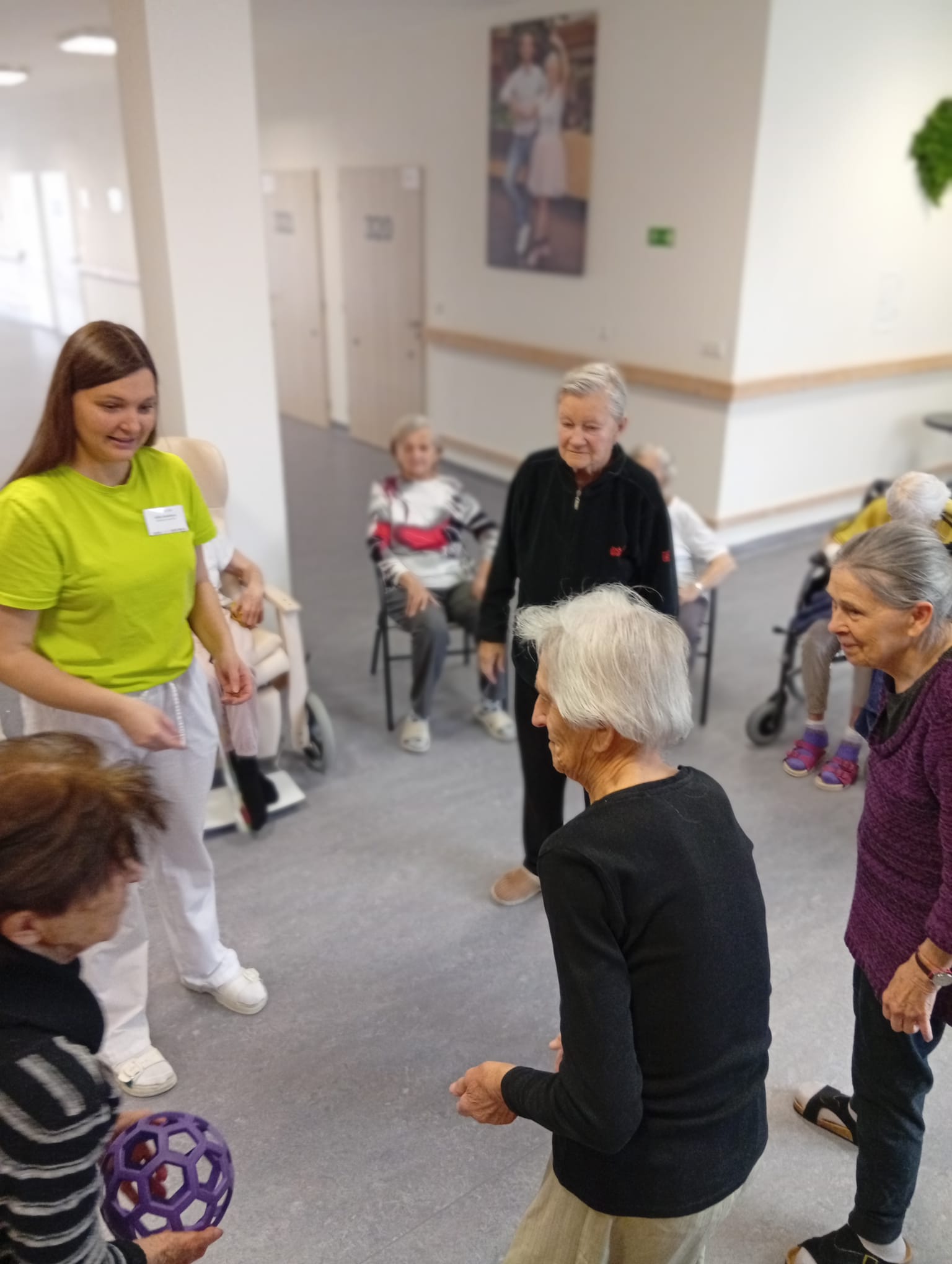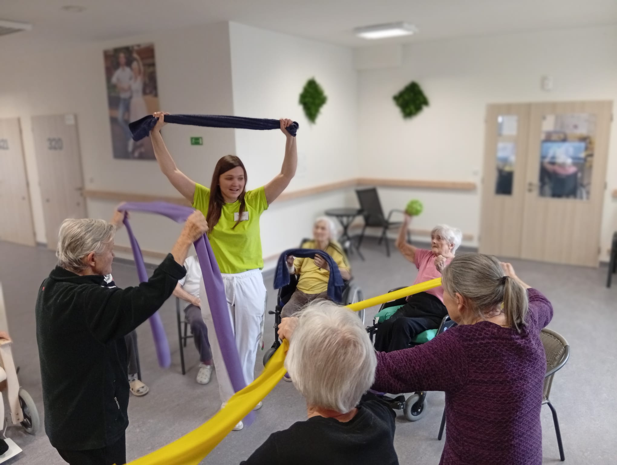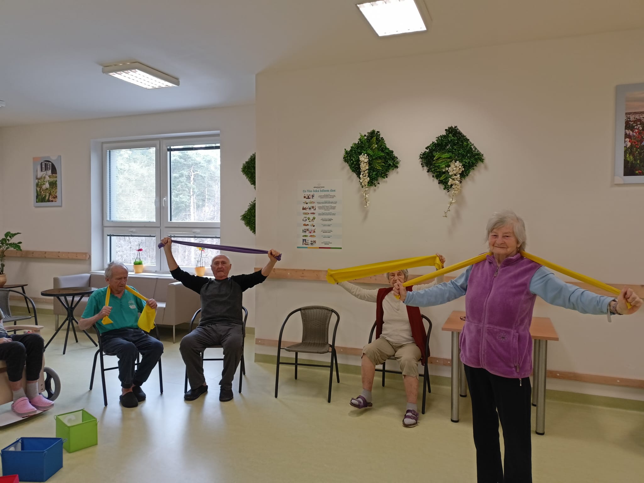 Cvičení bylo zaměřeno na uvolnění svalstva, zlepšení mobility a celkového protažení těla. Klienti spolupracovali dle svých možností. Aktivita probíhala v klidné a příjemné atmosféře.