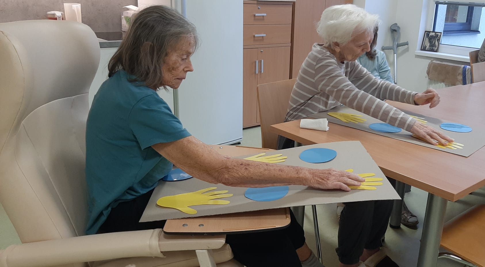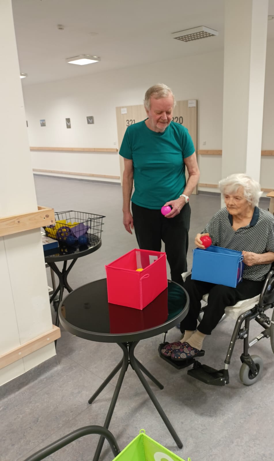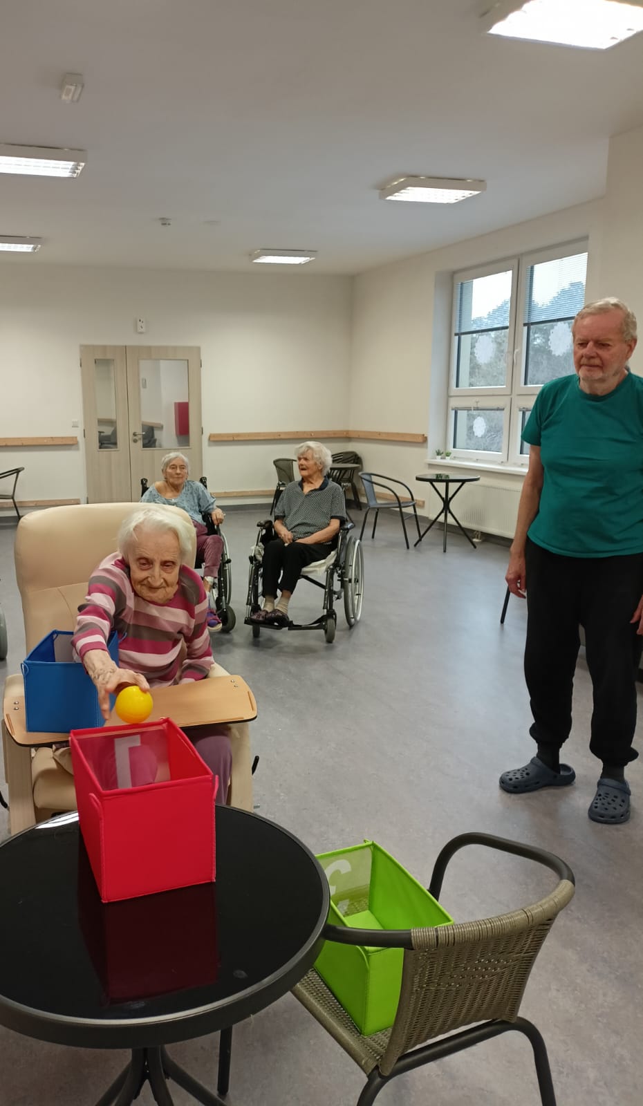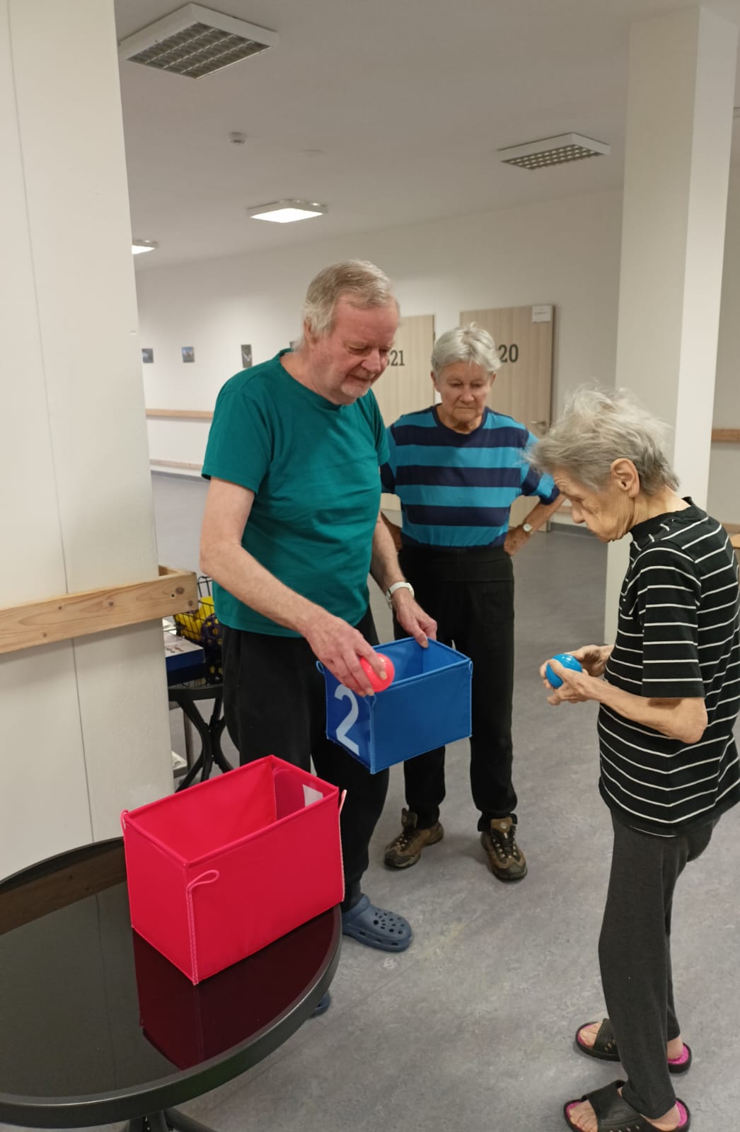 Dnes jsme zapojili ruce klientů při cvičení a hrách.
