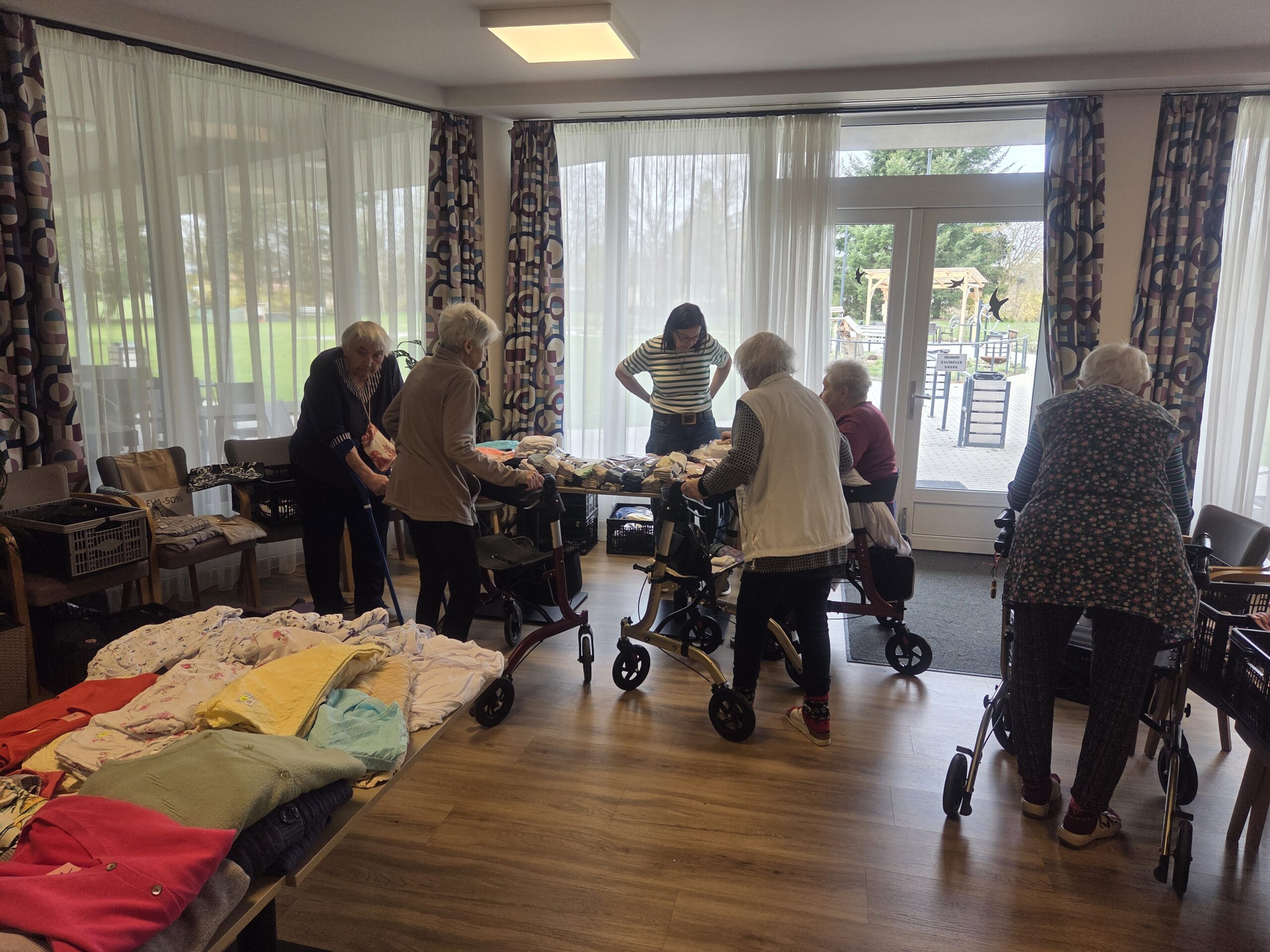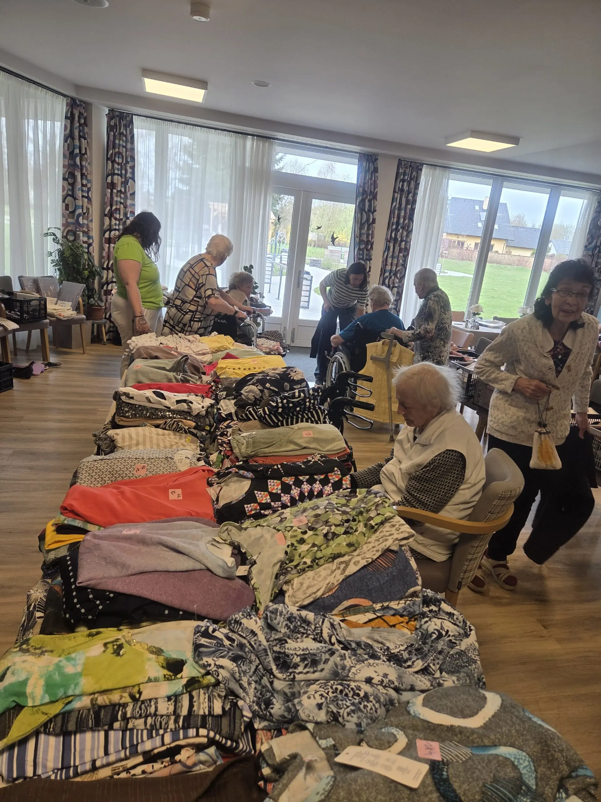 Do našeho domova zavítala pojízdná prodejna oblečení, která přinesla klientům možnost pohodlného nákupu přímo v místě jejich bydliště. Nabídka byla pestrá - od praktického každodenního oblečení, až po hezké kousky pro radost.