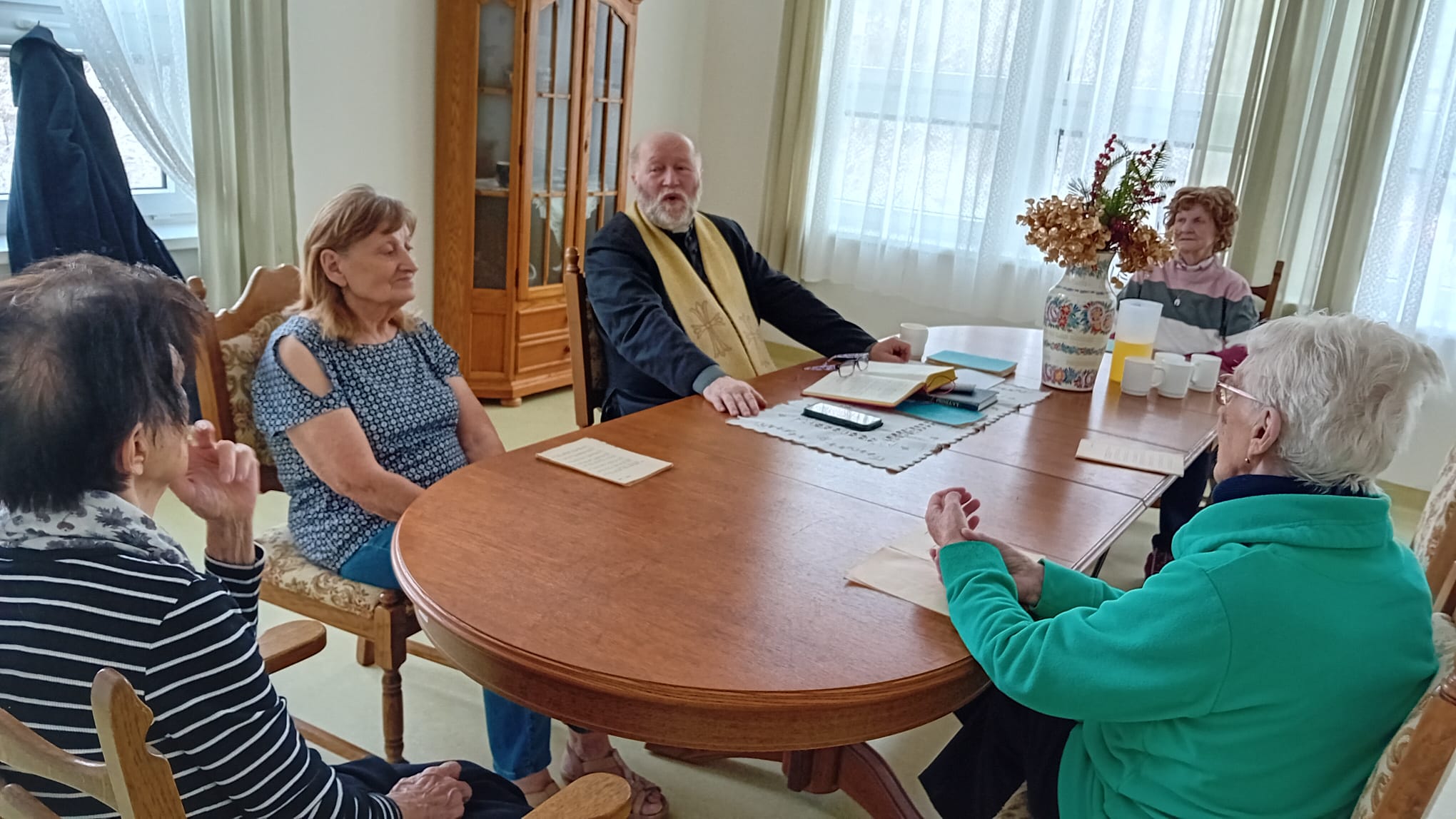 Senevida Nepomuk opět poctil svou návštěvou pan farář! ⛪ Klienti, kteří mají zájem, se zúčastnili duchovního setkání a modlitby. Tyto pravidelné návštěvy jsou pro mnoho našich klientů velmi důležité. Setkání s panem farářem přináší pocit klidu, bezpečí a vnitřní pohody a umožňuje klientům udržovat kontakt se svou vírou a dlouholetými zvyky. Děkujeme za tyto cenné chvíle duchovního rozjímání.