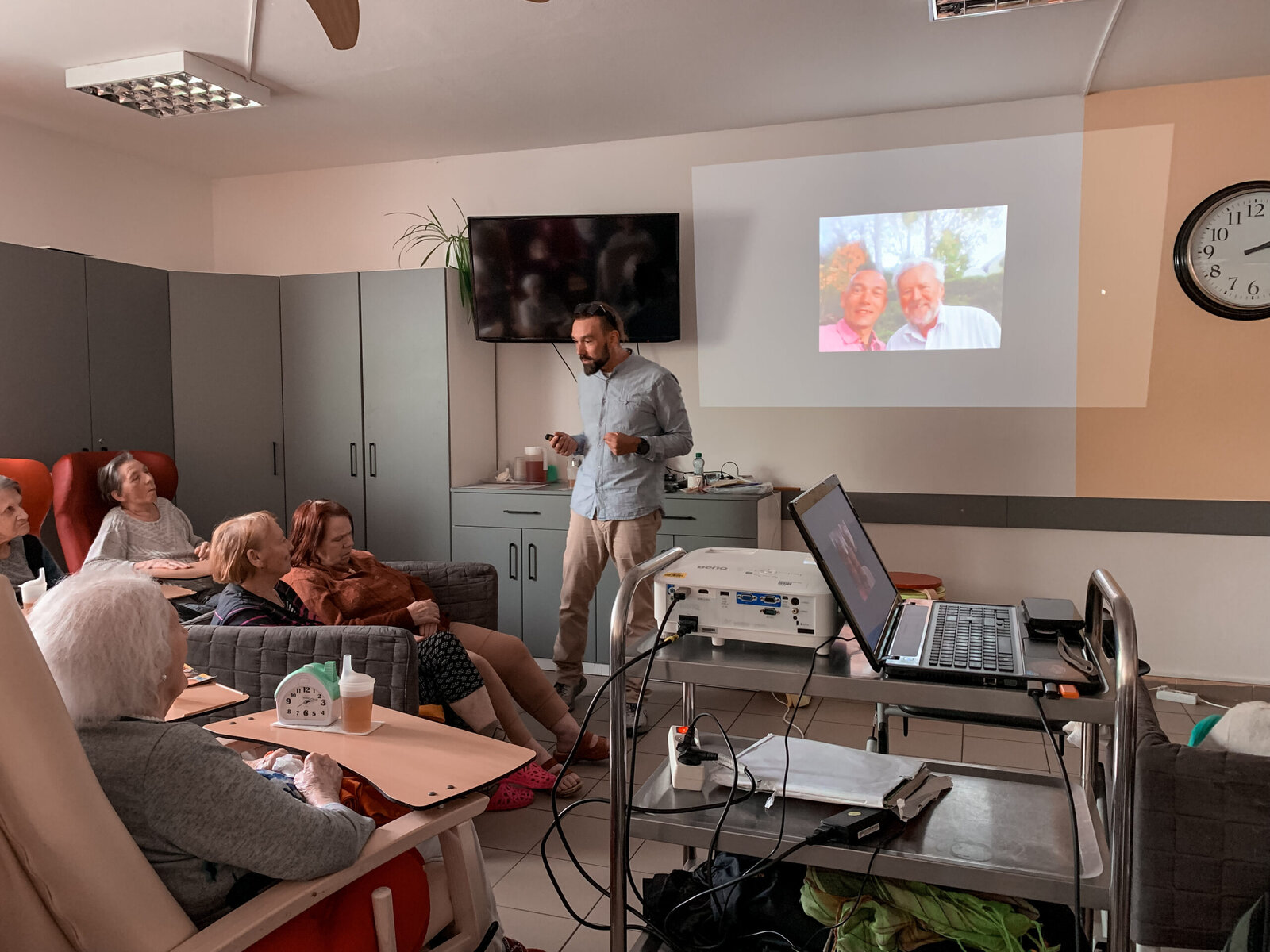 Pohodlně jsme se usadili a nechali jsme se unášet poutavým vyprávěním o poutní cestě z Českých Budějovic až do Santiaga de Compostela. Z Náměstí Přemysla Otakara II. ke katedrále v Santiagu je to rovných 2970 km. A náš mladý vypravěč šel cestu půl roku. Bylo to velmi zajímavé, poučné i zábavné.