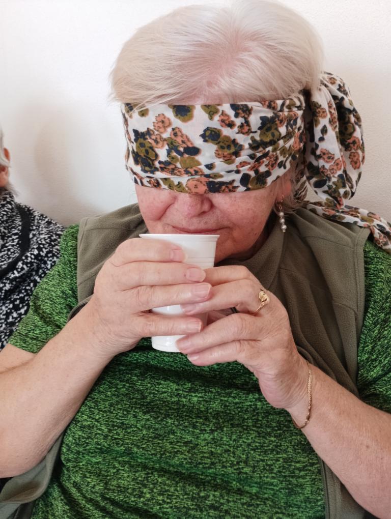 Klienti měli zavázané oči a hádali jednotlivé druhy koření podávaných v kelímkách. Aktivita přinesla mnoho úsměvů i veselých dohadů. Klienti si procvičili smysly i paměť a společné dopoledne si velmi užili.