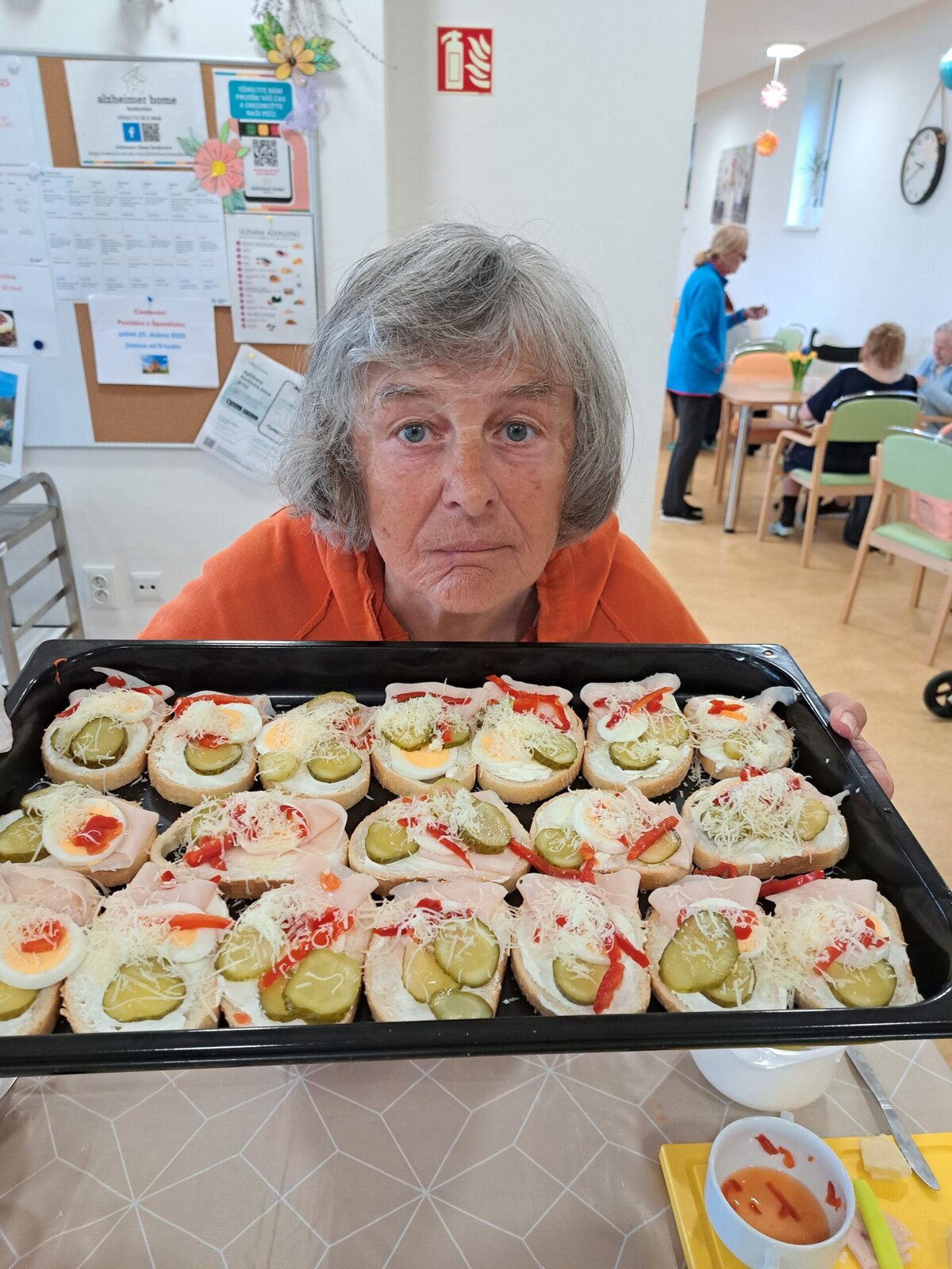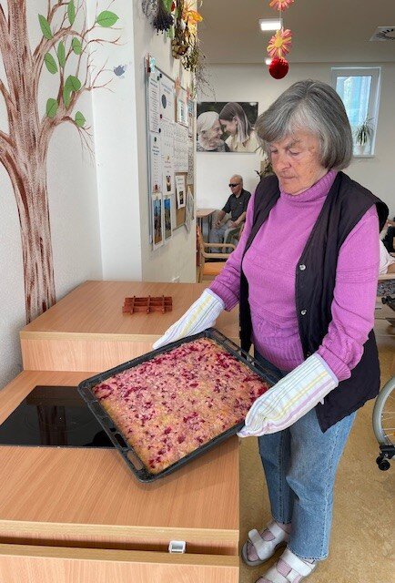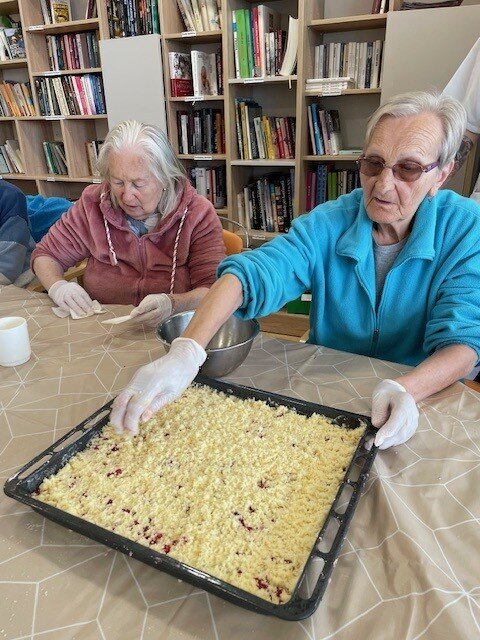 Každý poslední týden v měsíci se u nás v Senevida Boskovice nese v duchu příprav na narozeninovou oslavu. Klienti si jako dezert upekli rybízový koláč s drobenkou, který si na úplný závěr dozdobili šlehačkou. Na stole nesměly ani chybět všemi oblíbené chlebíčky, které si opět klienti připravili sami. ☺️