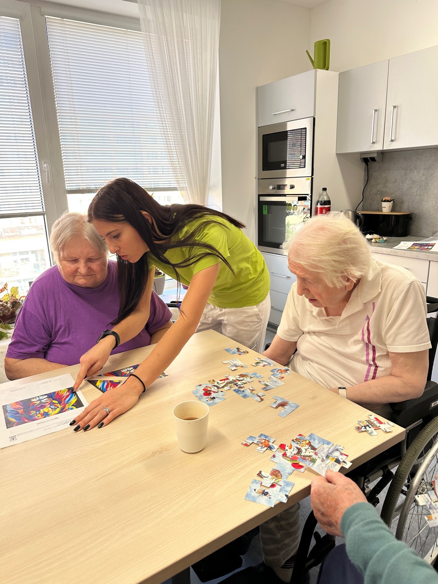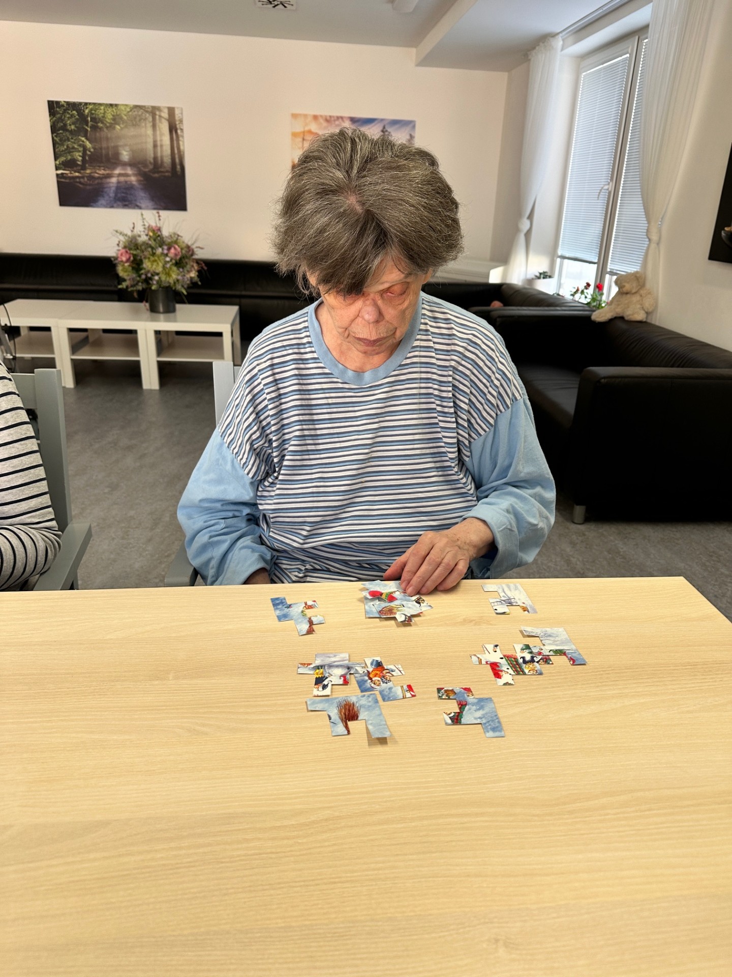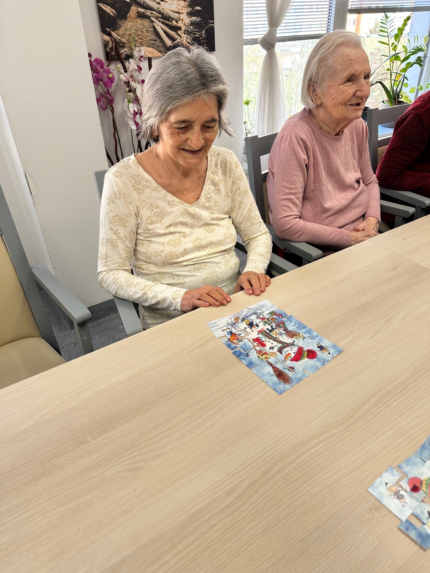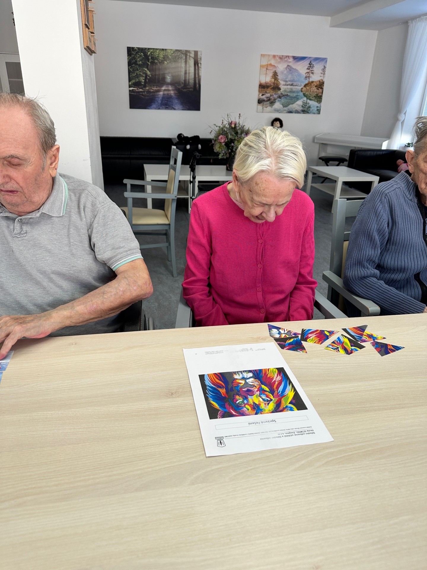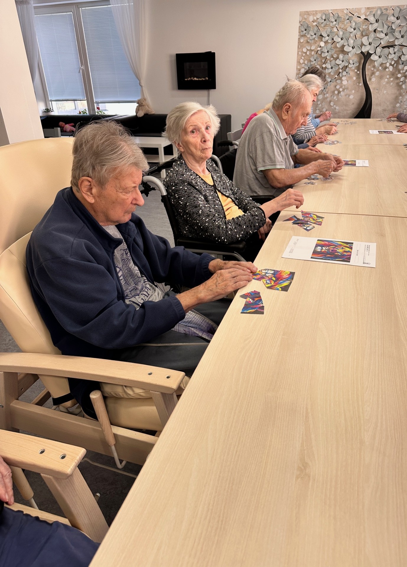 S klienty domova Senevida Jasmín jsme trénovali kognitivní funkce pomocí jednoduchých papírových puzzlí a pracovních listů 🧩. Tyto aktivity podporovaly soustřední, logické myšlení i jemnou motoriku 🧠. Zároveň přinášely klientům dobrý pocit z dobře odvedené práce 😊💙.