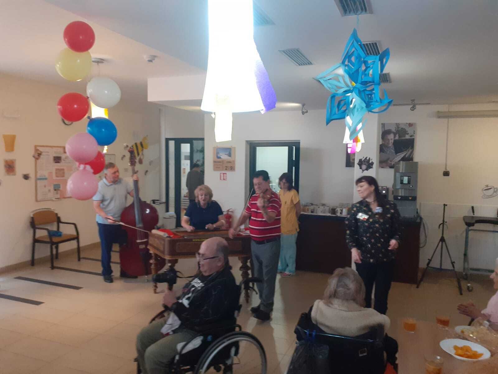 V pátek 29. 12. 2023 jsme si společně oslavili narozeniny všech klientů narozených v prosinci. V dopoledních hodinách proběhla příprava jednohubek, odpoledne přijela Cimbálová muzika Dušana Kotlára. Oslava se moc povedla!