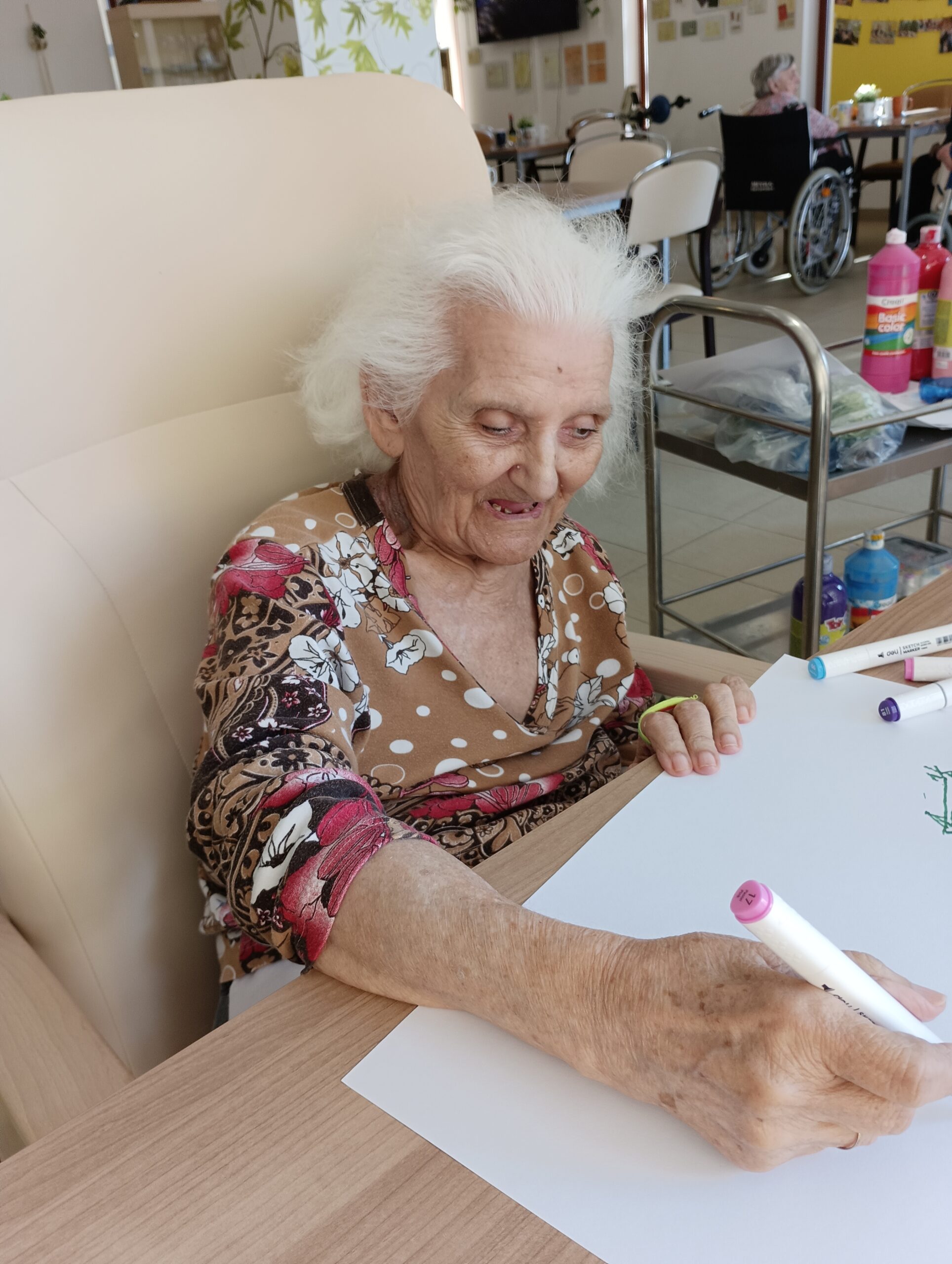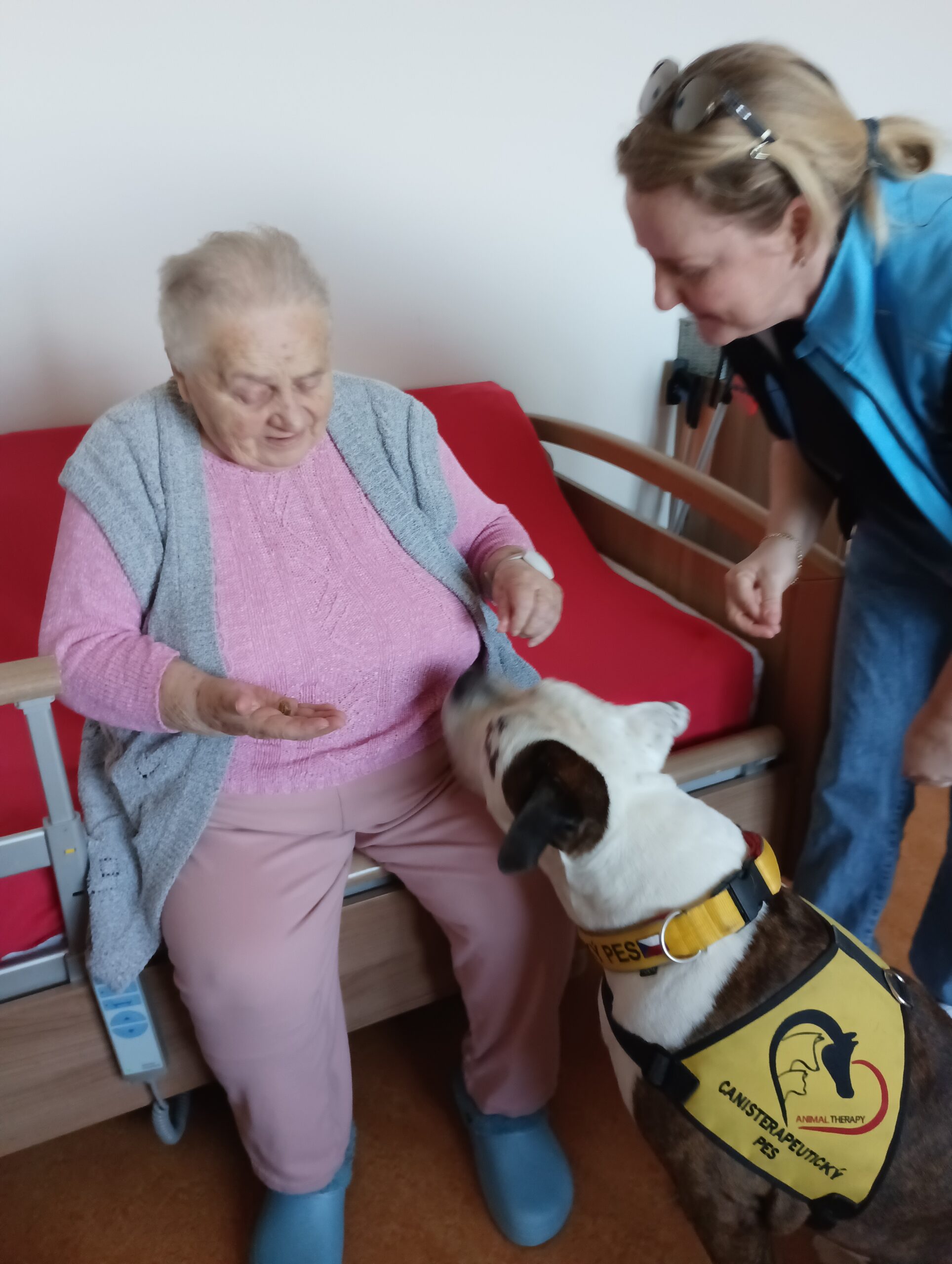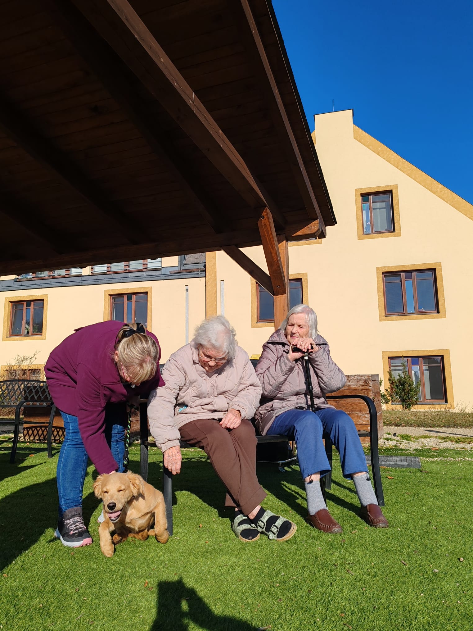 Odpoledne máme krásné počasí, a tak první sluneční paprsky už společně trávíme venku na naší zahradě. A dnes nás navštívila naše psí kamarádka Eni. Dopoledne jsme měli canisterapii s naším čtyřnohým kamarádem Dárečkem, a také jsme malovali jarní květiny.