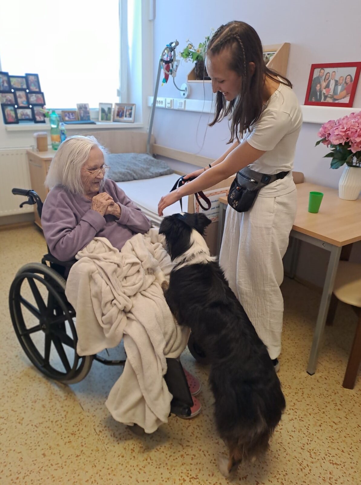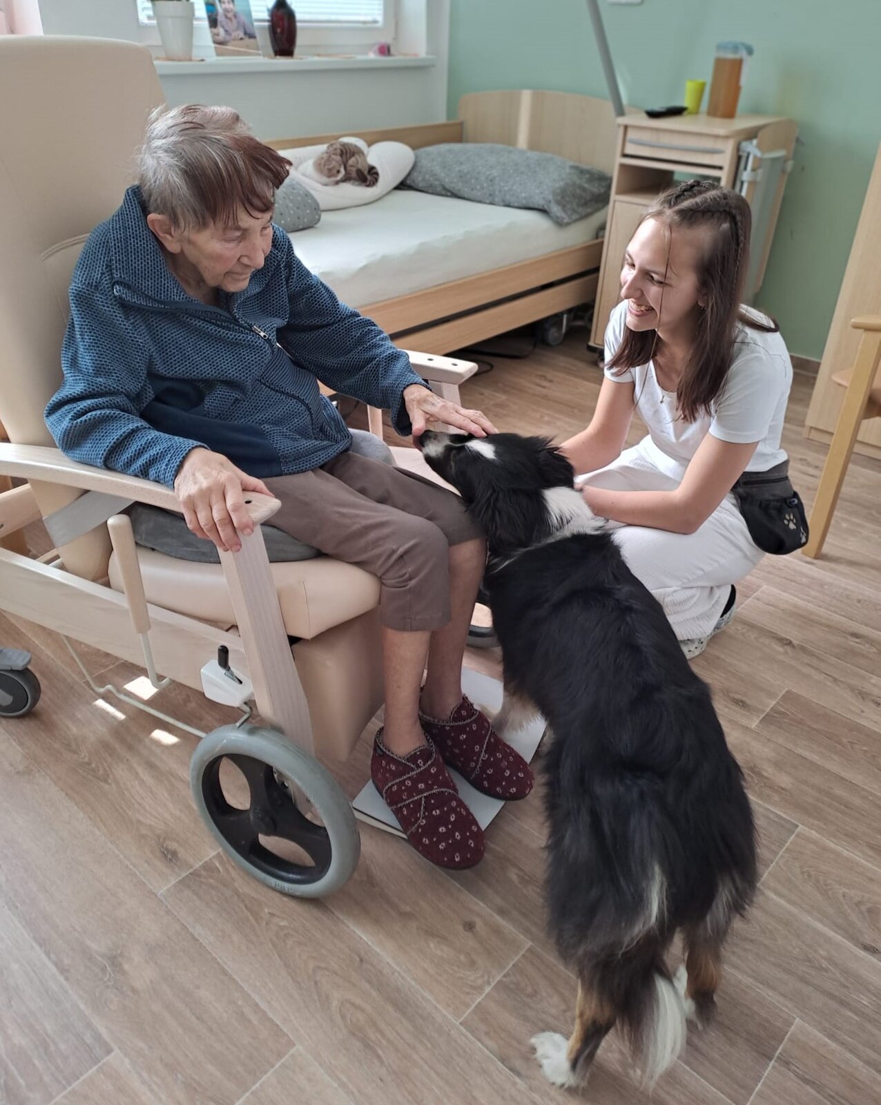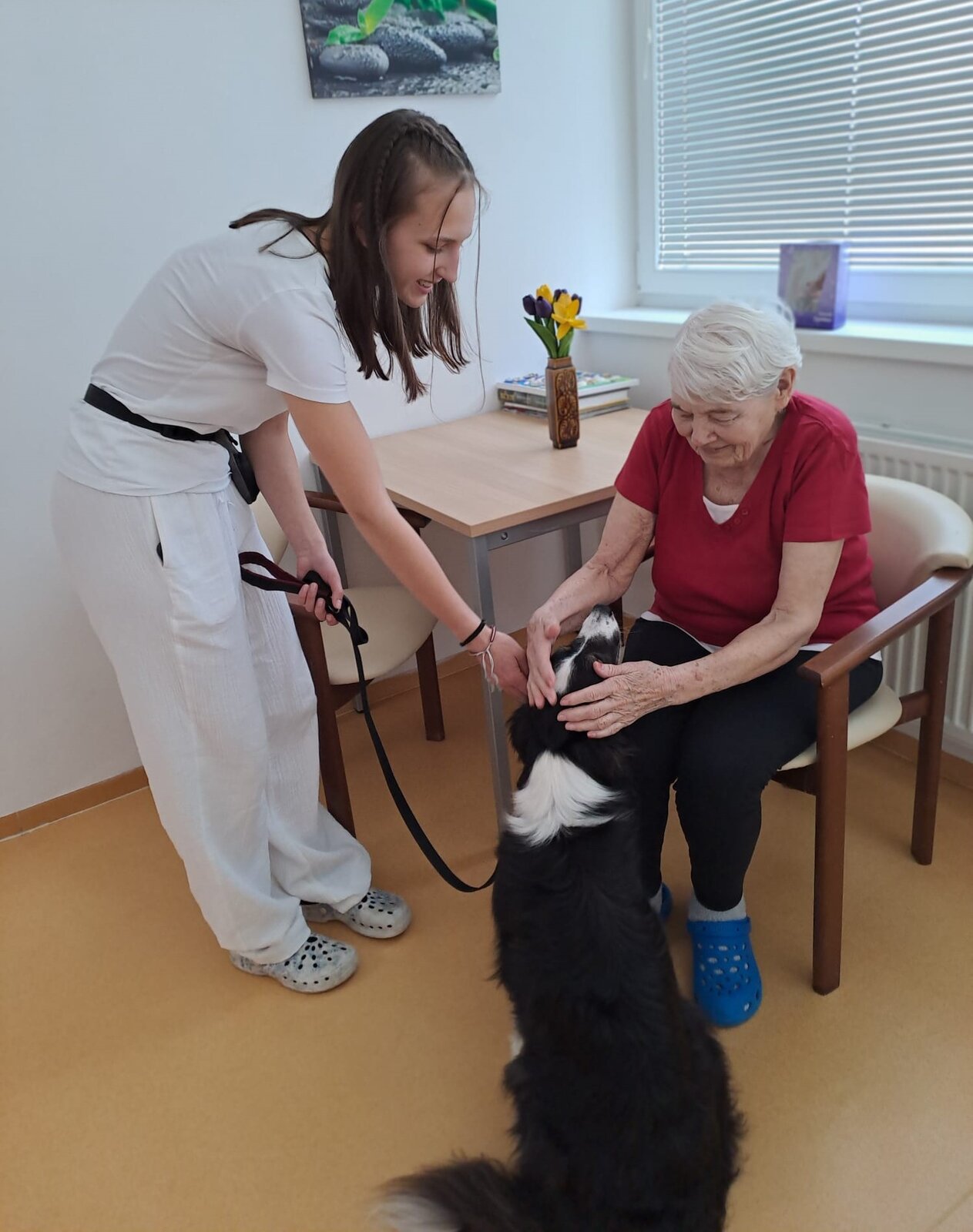 V rámci odborné praxe připravila naše skvělá studentka Lucie pro klienty Senevida Ostrov krásné a srdečné poledne. Hlavní hvězdou byla fenka plemene Border kolie, která si okamžitě získala srdce všech přítomných svou přítulností, klidnou povahou a přátelským chováním. Zvířecí terapie přináší radost, úsměvy i uklidnění – a právě to bylo na tomto setkání cítit na každém kroku.