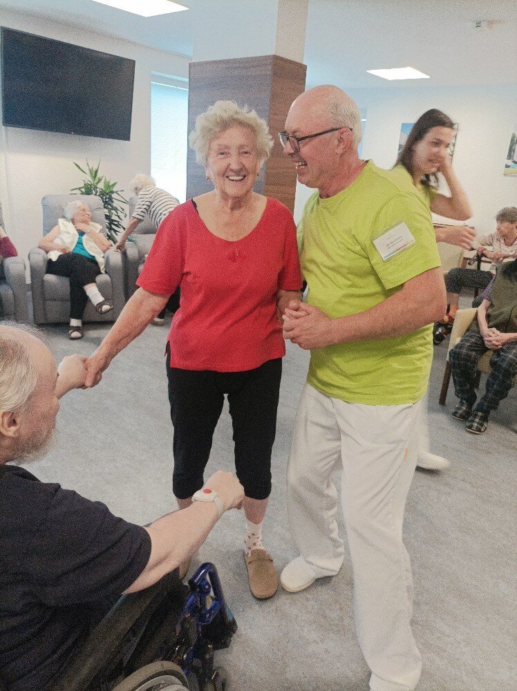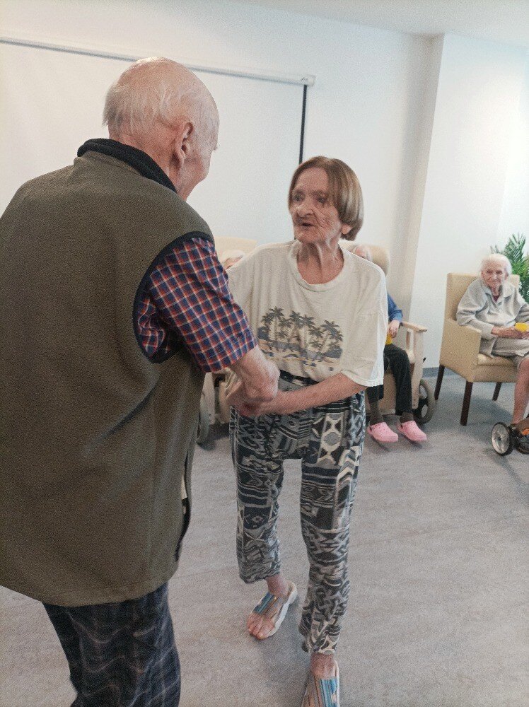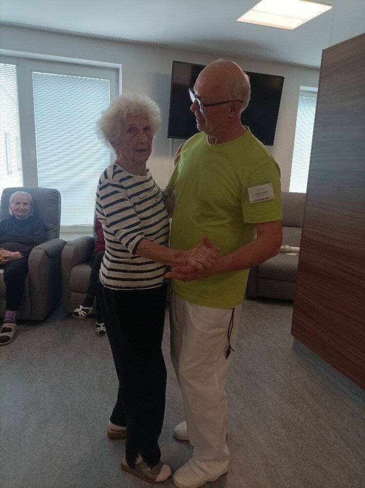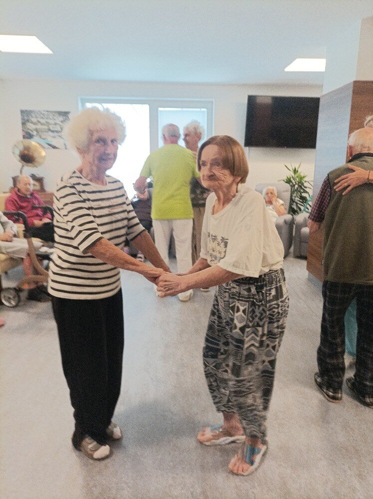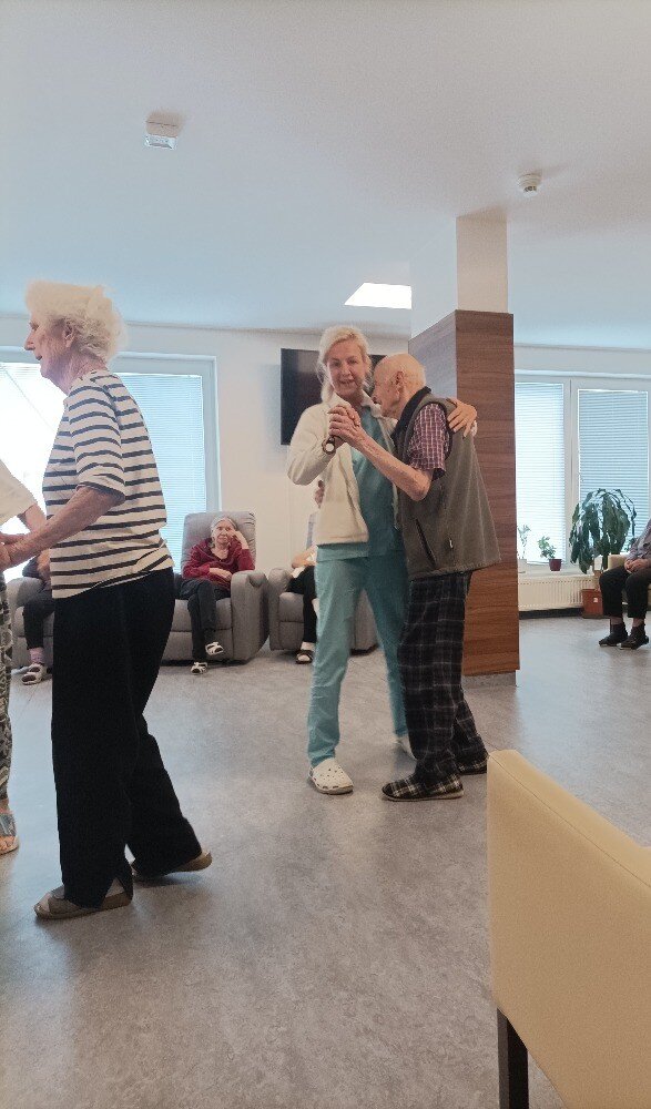 V domově Senevida vládla radost a vzrušení. Namísto obvyklého odpoledního programu se tentokrát uskutečnila speciální akce - společenské tance v naší knihovně! 💃 Jakmile zazněly tóny známých melodií, sál ožil 🎶. Bylo vidět, jak se vzpomínky na mládí vrací s každým krokem 💙.