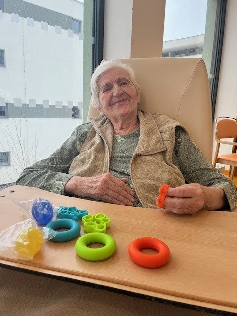 Naši klienti Senevida Boskovice pravidelně cvičí s naší fyzioterapeutkou Klárkou. Nový rok přinesl i nové rehabilitační pomůcky, aby si každodenní cvičení zpestřili. Oblíbené cvičení je s therabandy, což jsou posilovací gumy různých barev a pevností. Dále máme také sadu pomůcek na jemnou motoriku a úplnou novinkou je rotoped a akupresurní, masážní podložka.
