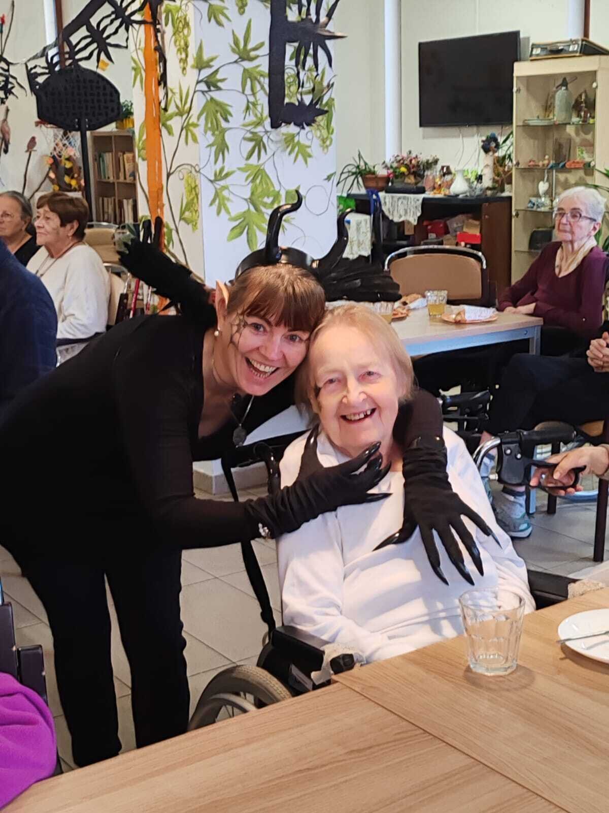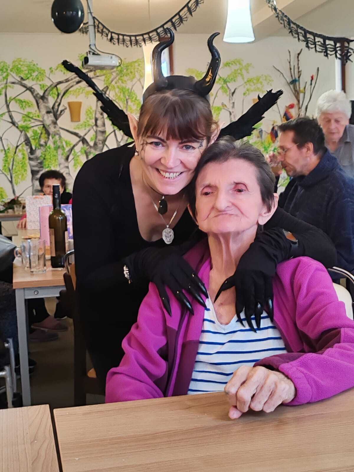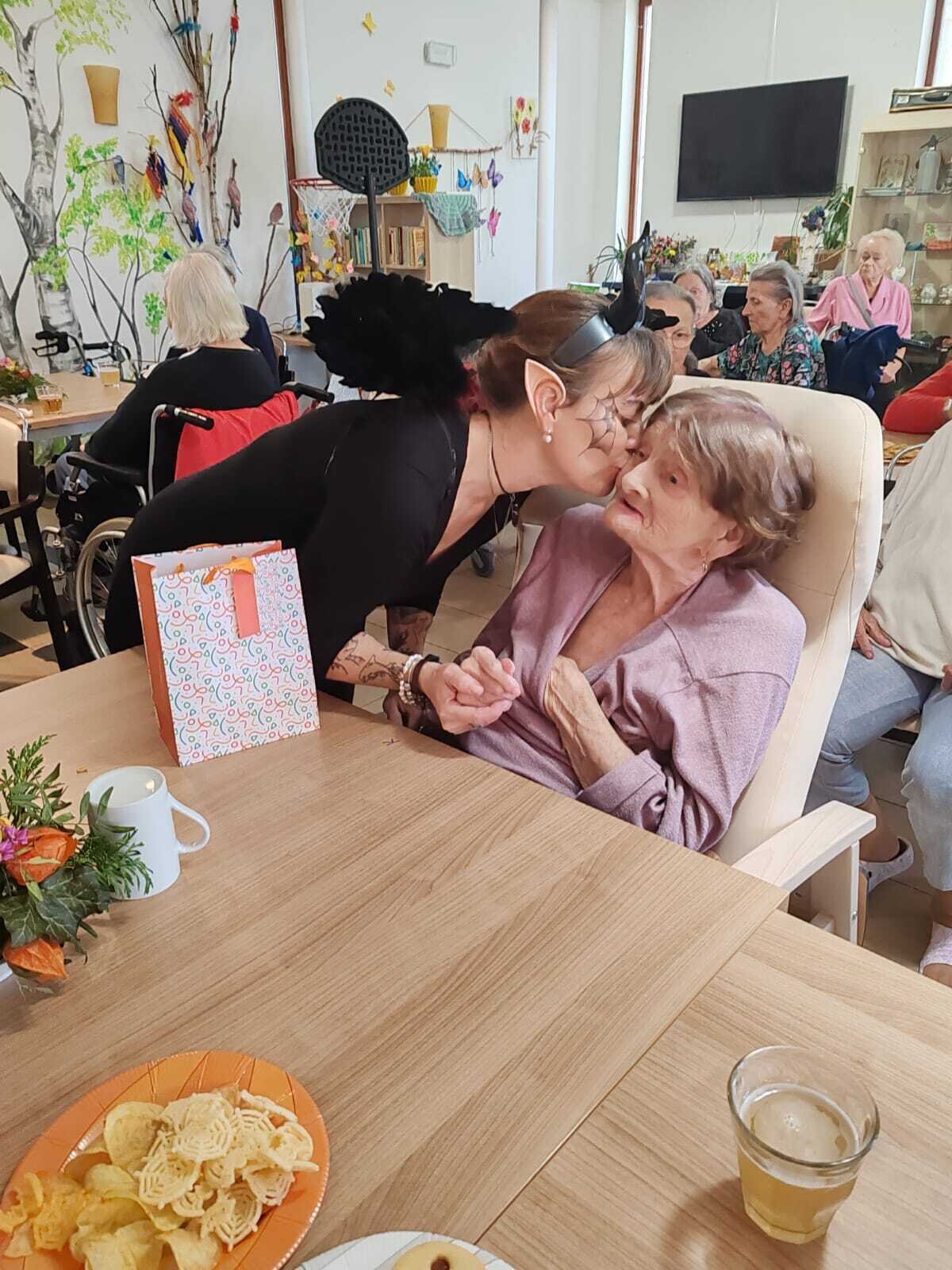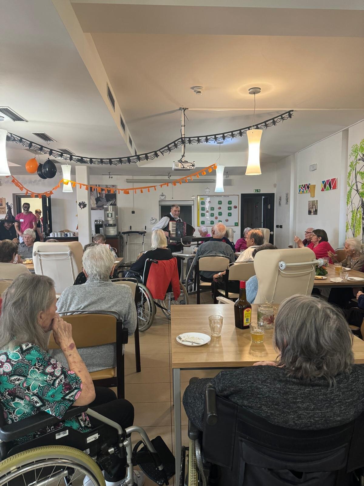 Ve čtvrtek 31.10. se tradičně konala oslava narozenin. Tentokrát nám oslava vyšla přesně na svátek Halloween, při kterém je zvykem převlékání do kostýmů a strašidelná výzdoba. V dopoledních hodinách tak klienti ve spolupráci s aktivizačními pracovnicemi vyzdobili jídelnu. Na odpoledne bylo připraveno pohoštění v podobě párků v rohlíku a naše aktivizační pracovnice Bětka dokonce upekla dort ve tvaru mozku! K poslechu nám po celé odpoledne hrál harmonikář pan Lehotai. Oslava se opravdu moc vydařila!