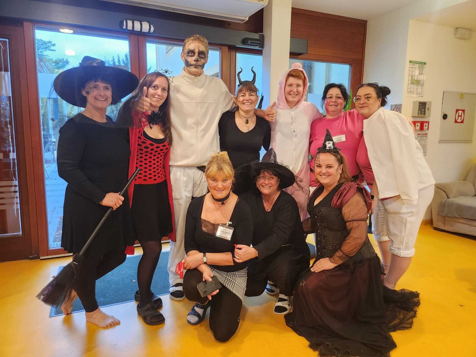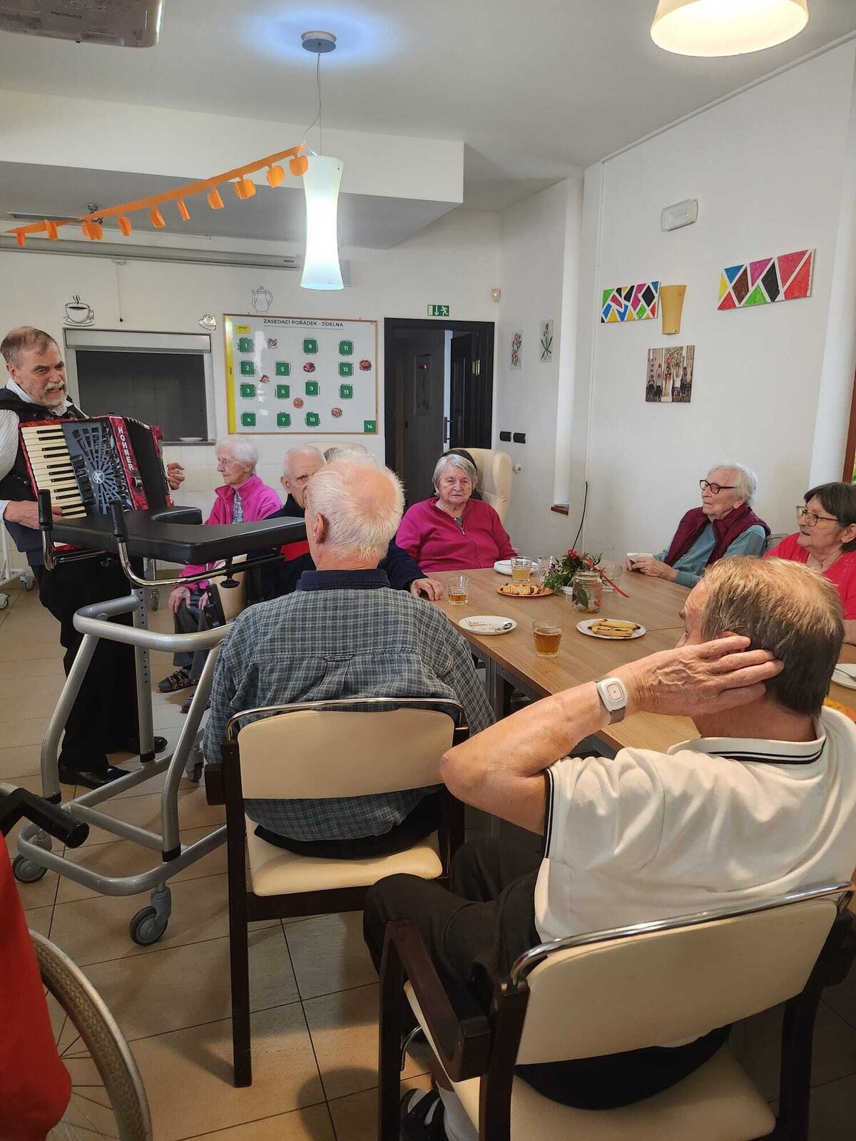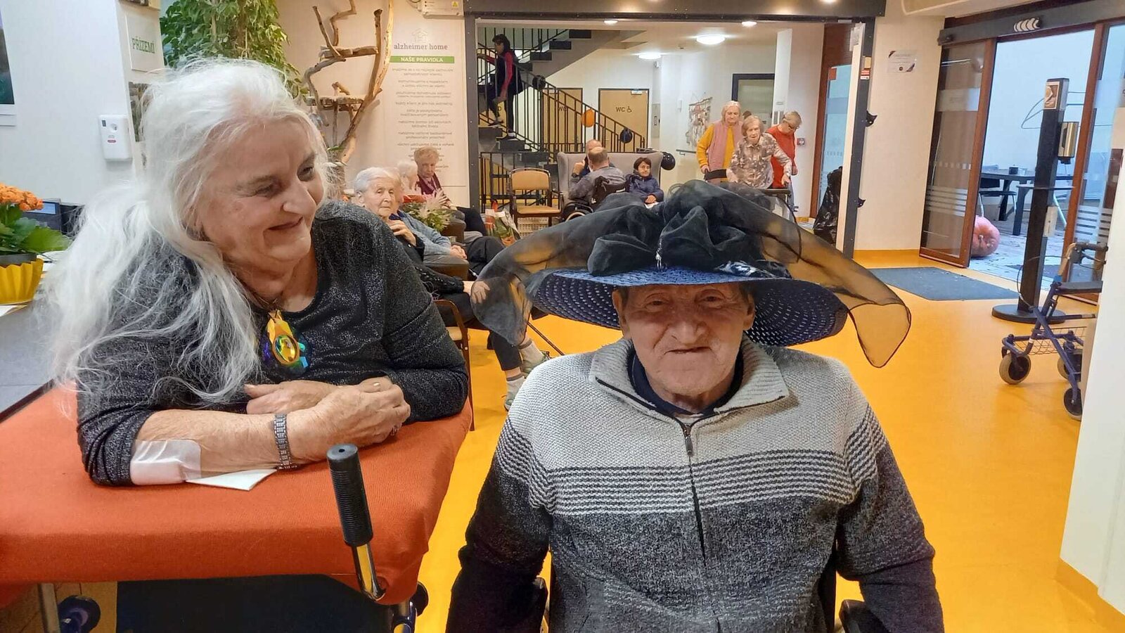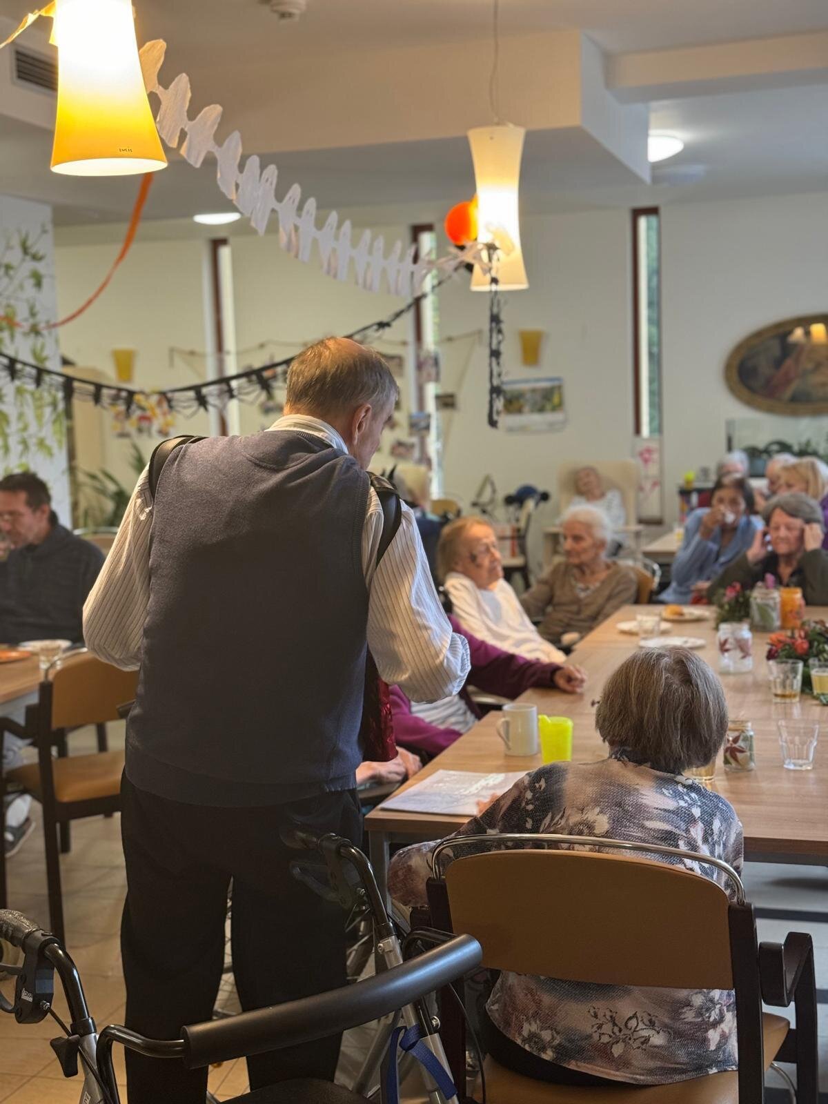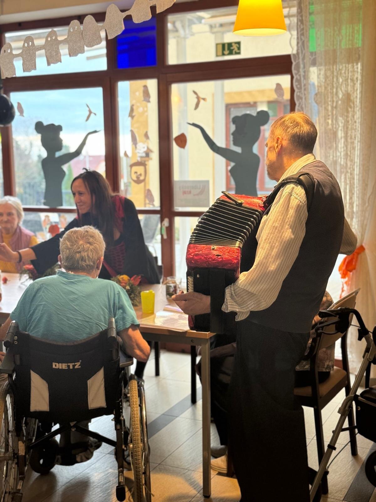 Ve čtvrtek 31.10. se tradičně konala oslava narozenin. Tentokrát nám oslava vyšla přesně na svátek Halloween, při kterém je zvykem převlékání do kostýmů a strašidelná výzdoba. V dopoledních hodinách tak klienti ve spolupráci s aktivizačními pracovnicemi vyzdobili jídelnu. Na odpoledne bylo připraveno pohoštění v podobě párků v rohlíku a naše aktivizační pracovnice Bětka dokonce upekla dort ve tvaru mozku! K poslechu nám po celé odpoledne hrál harmonikář pan Lehotai. Oslava se opravdu moc vydařila!