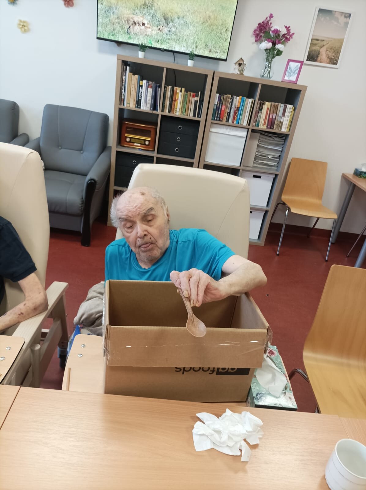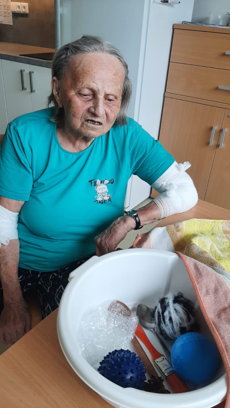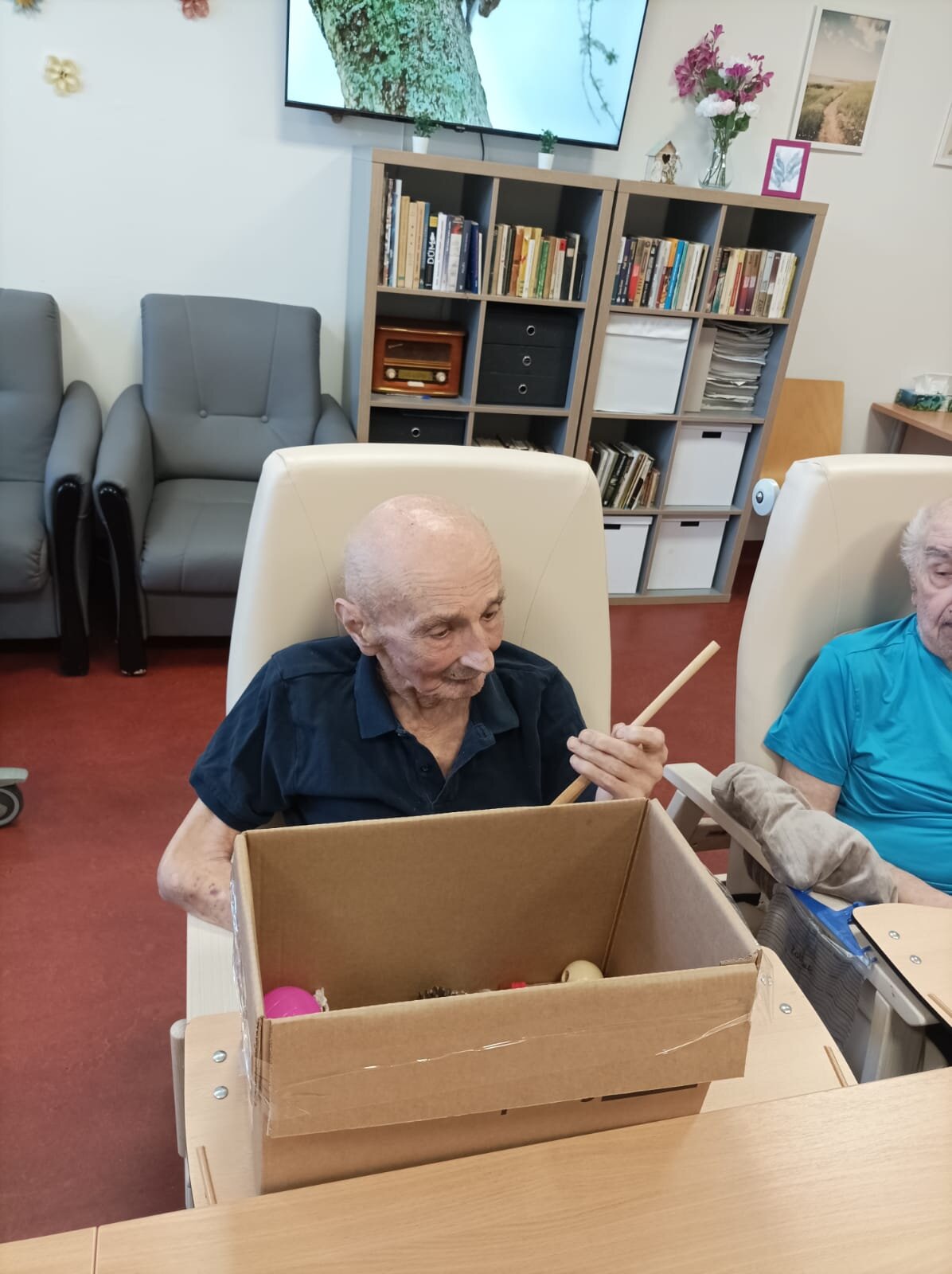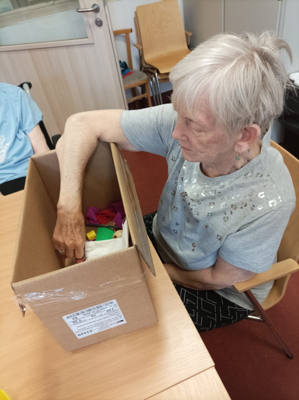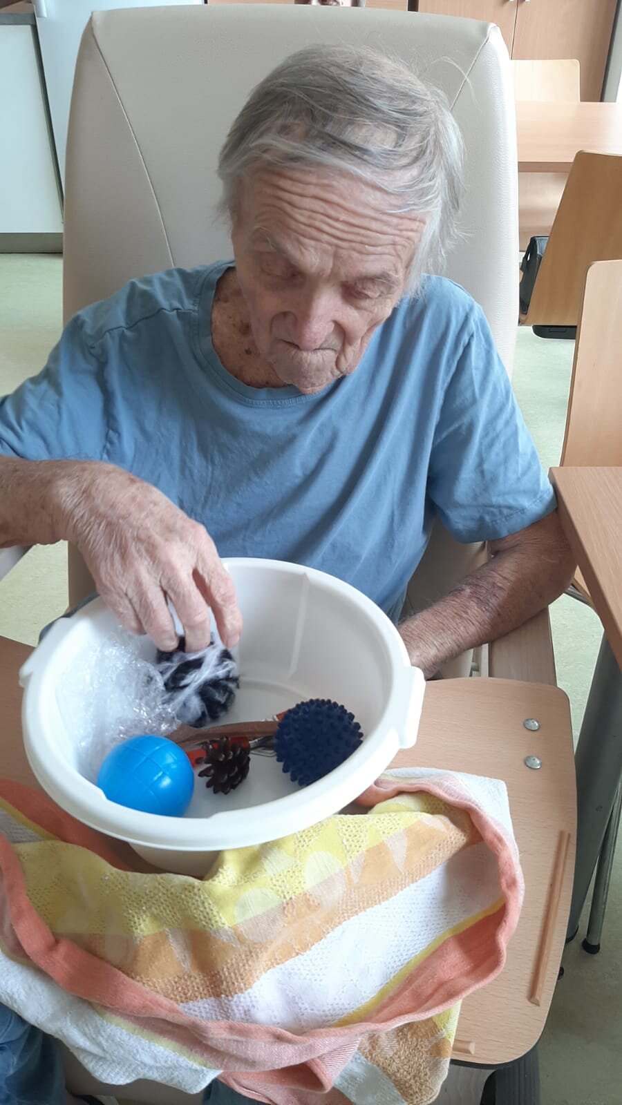 Dnes v ALZHIMER HOME Nepomuk probíhalo poznávání předmětů pomocí hmatu. 🖐️Je to skvělý způsob, jak procvičit své smysly a paměť.🧠 Klienti zkoumali různé tvary a materiály, což jim přineslo radost a zároveň to stimulovalo jejich kognitivní funkce.🔺🟠🟪
