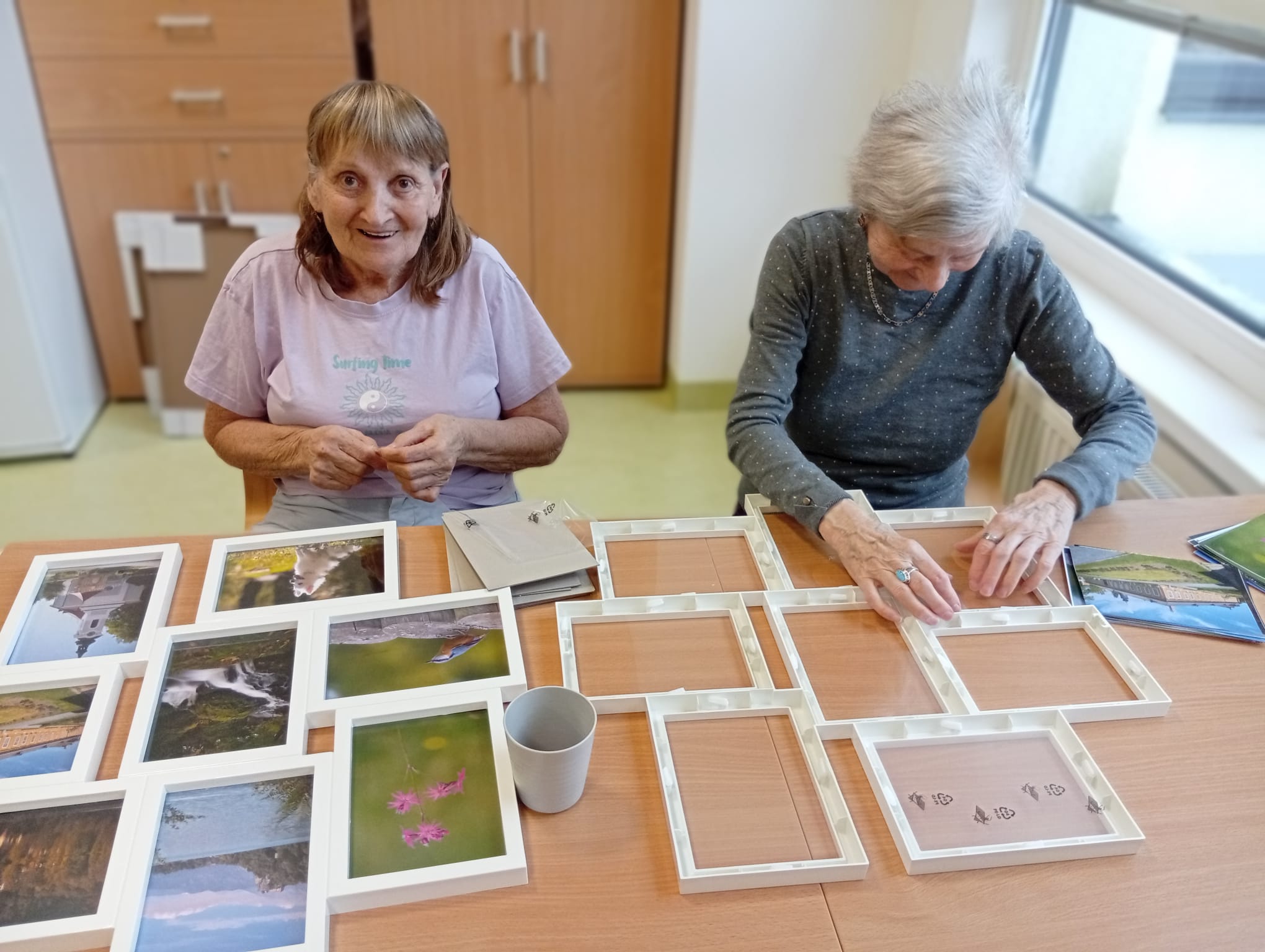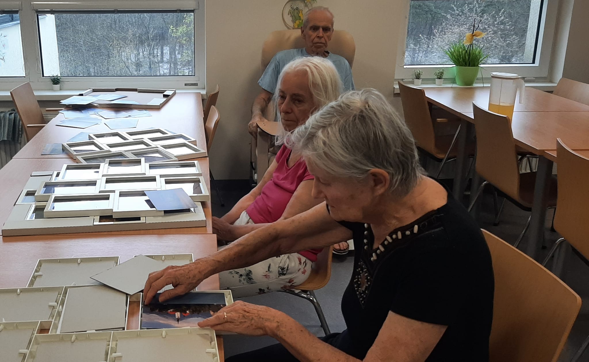 S klienty jsme věnovali ruční činnosti zaměřené na vkládání fotografií do rámečků. Aktivita klienty velni zaujala.