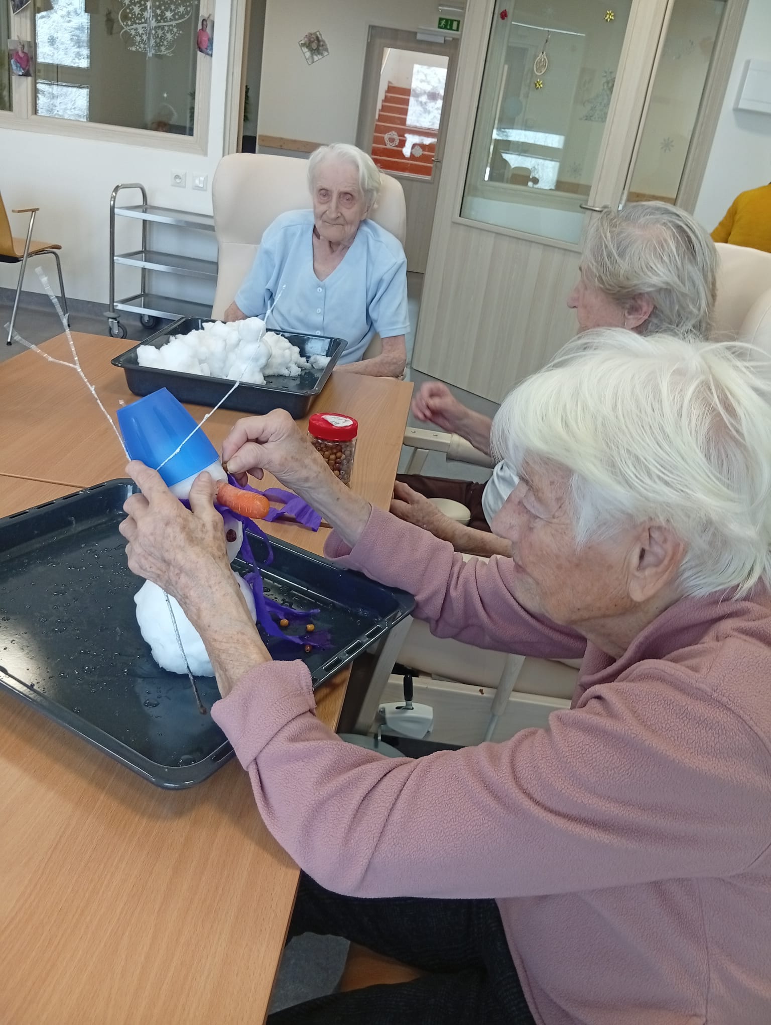 Na jednotlivých patrech probíhaly ruční práce s různým zaměřením. Aktivita podporovala jemnou motoriku, kreativitu, soustředění a navazovala zimní atmosféru.