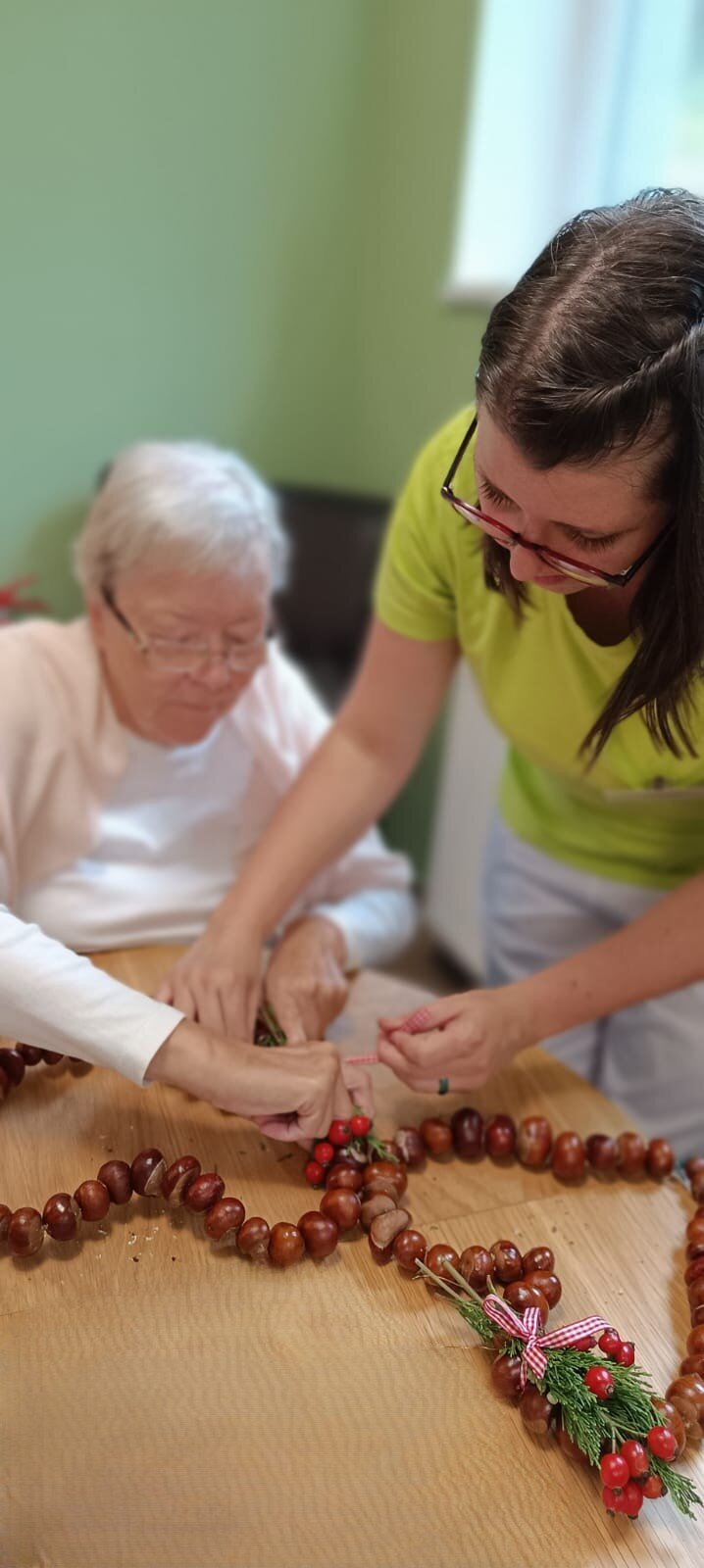 Naše šikovné klientky v Senevida Modřany si rády užívají tvořivé dopoledne. Tentokrát jsme se pustily do výroby srdcí z kaštanů. Ruční práce podporují jemnou motoriku, trpělivost, ale zároveň přinášejí radost, klid a společně strávené chvíle. Podzimní dekorace teď krásně zdobí pokoje našich klientek.🍂👌🧡