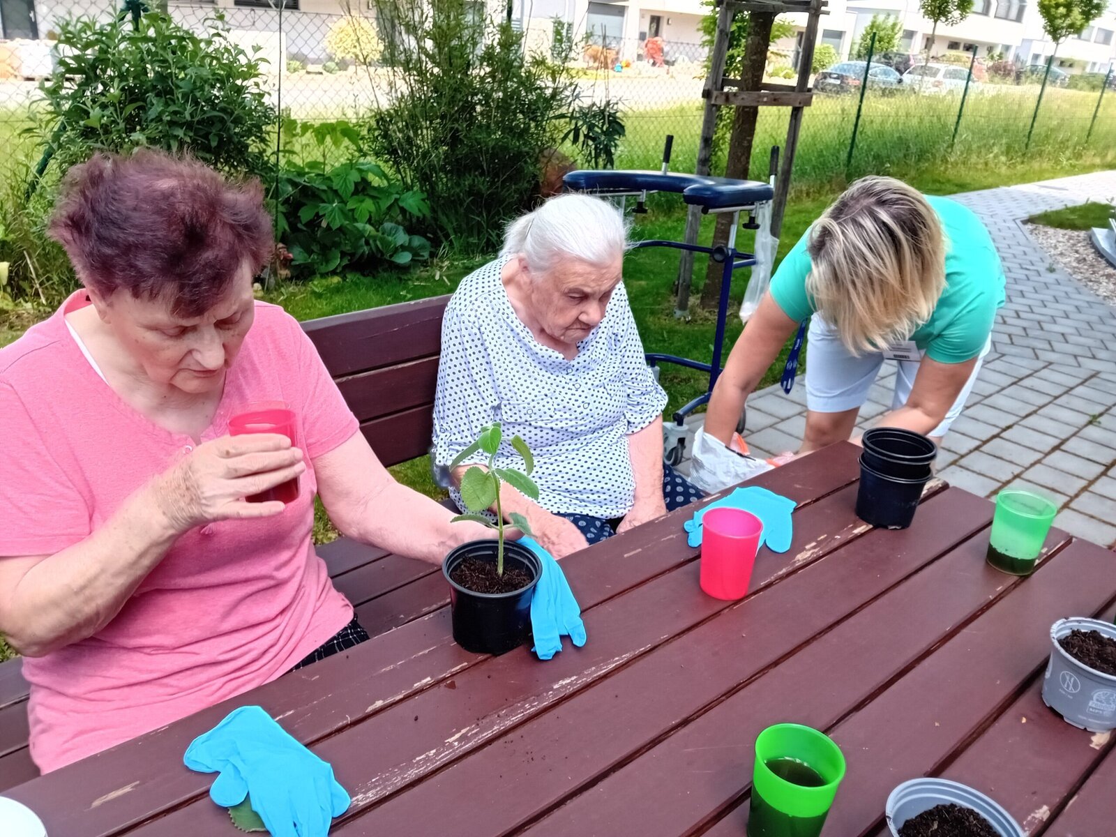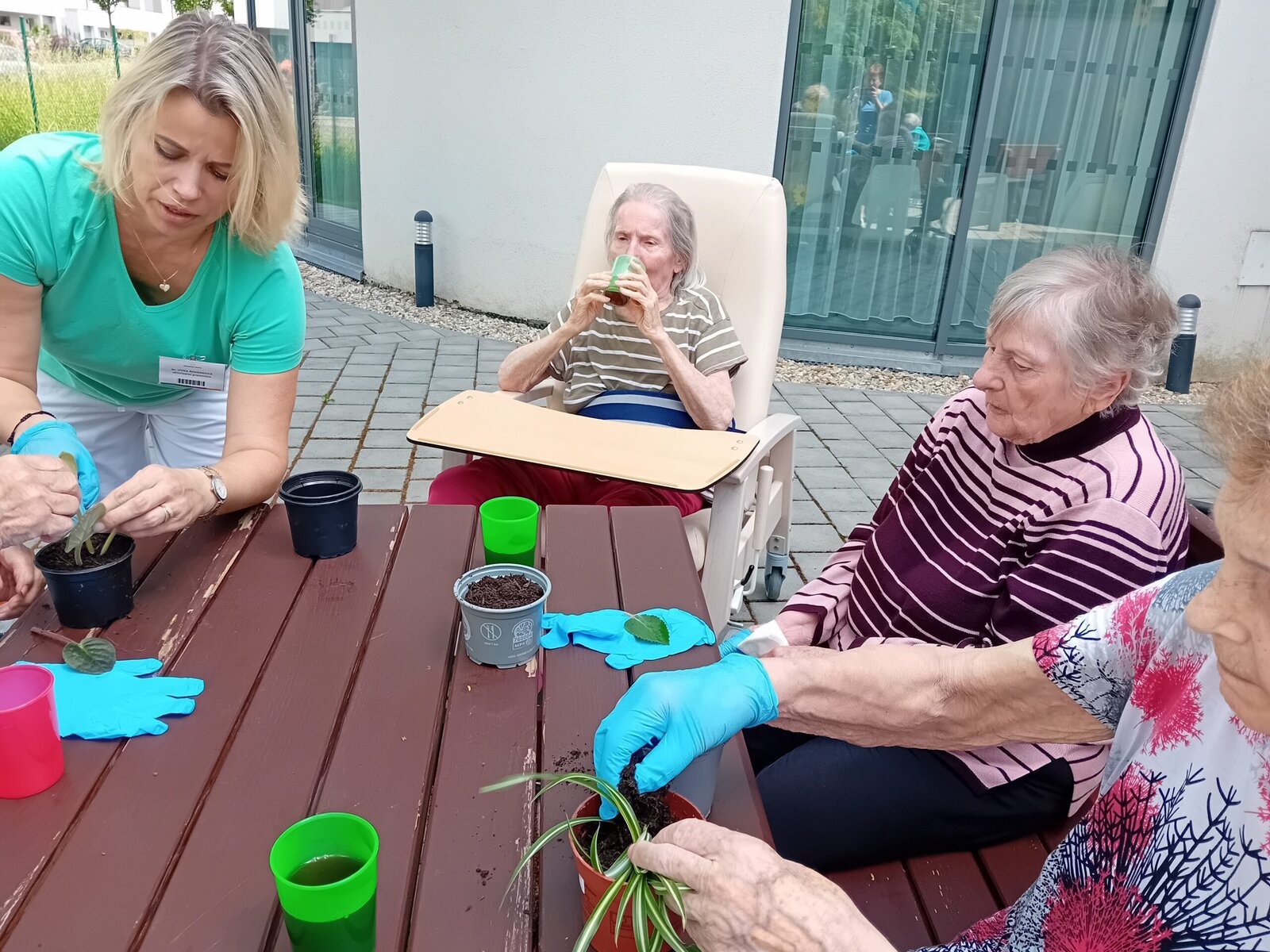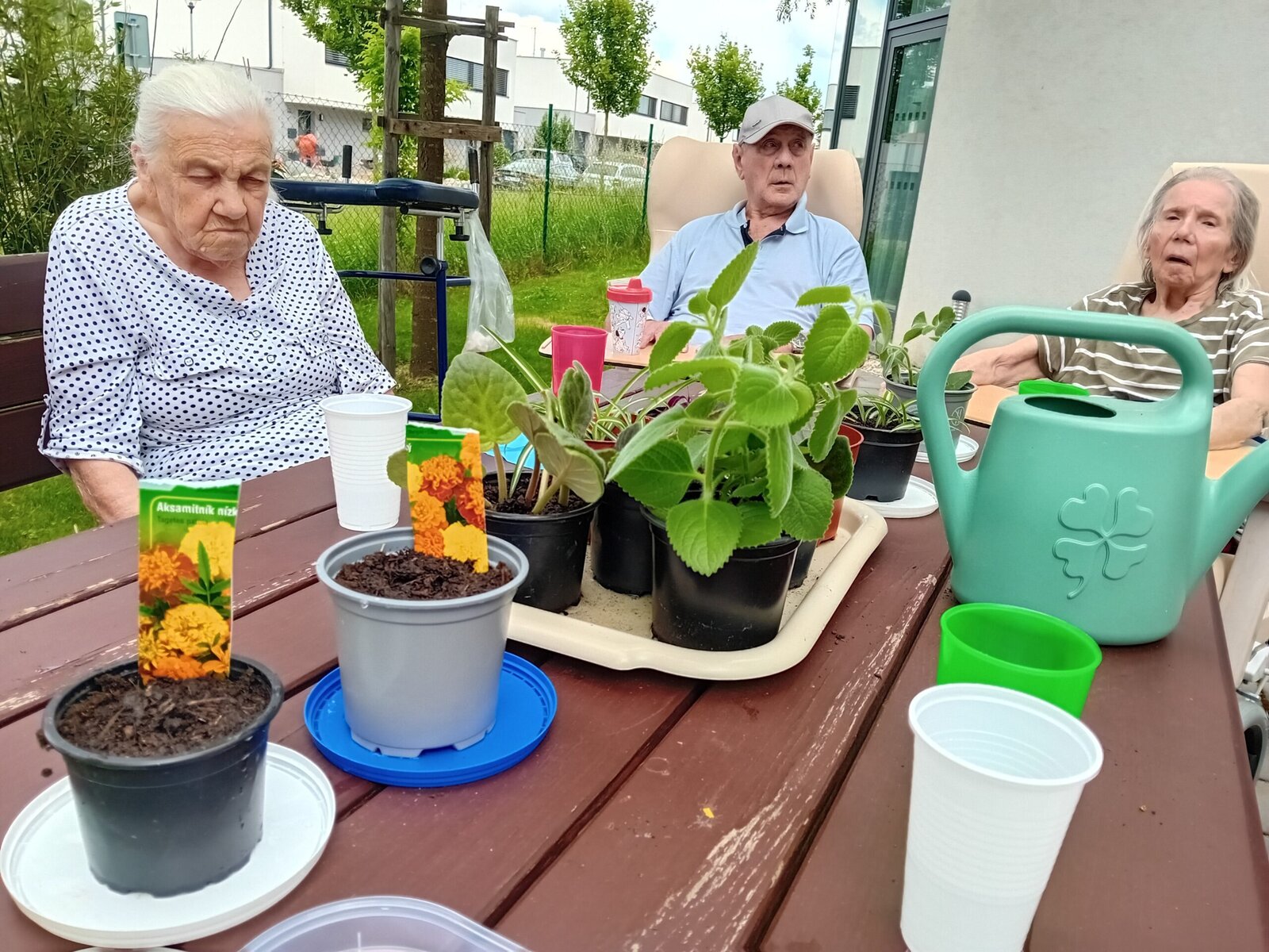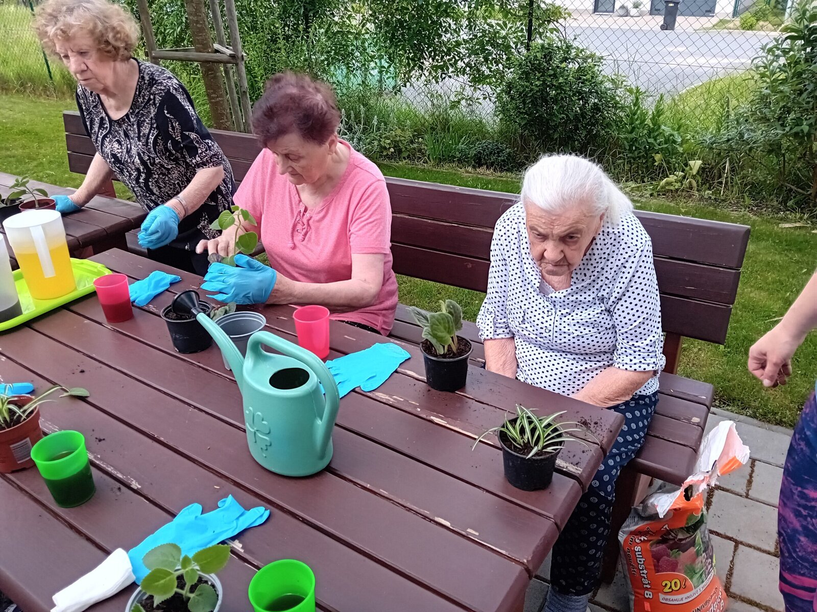 Pondělní slunečné odpoledne jsme v Senevida Slavkov u Brna využili v rámci aktivizací k pobytu na zahradě. Tentokrát jsme se dali do sázení pokojových rostlin a práci s hlínou jsme si náramně užívali.