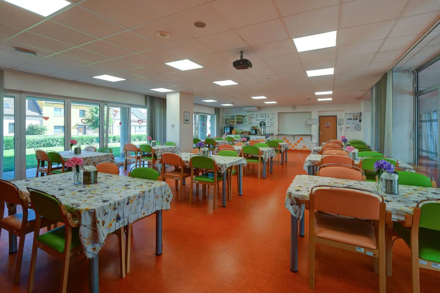 Klienti mají denně 5 jídel, možnost výběru ze dvou obědových jídel a také dietní úpravu stravy.