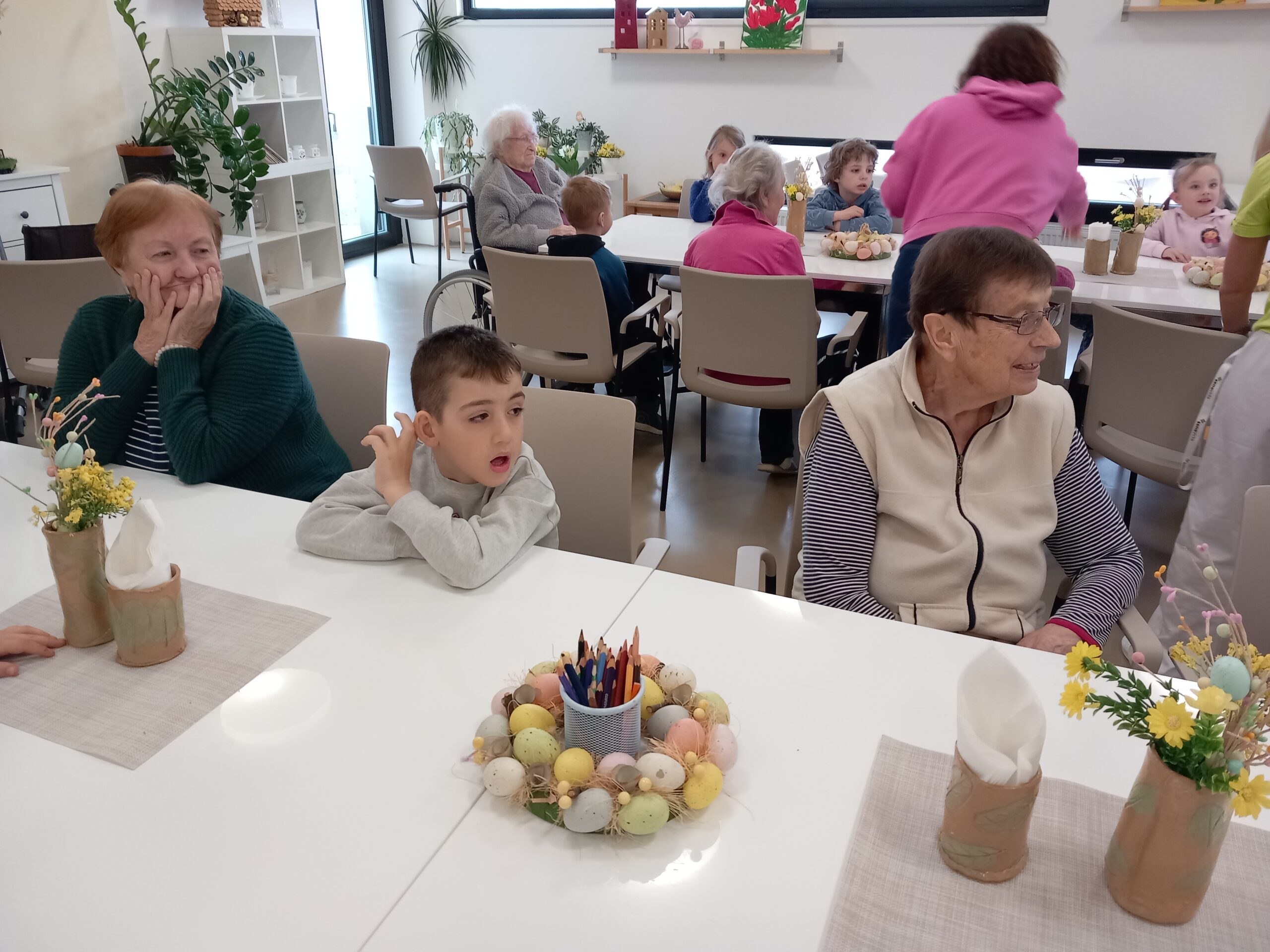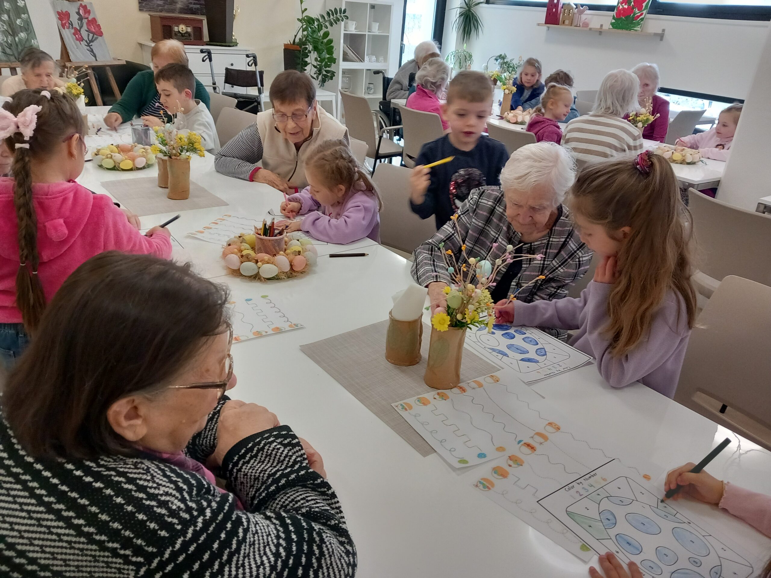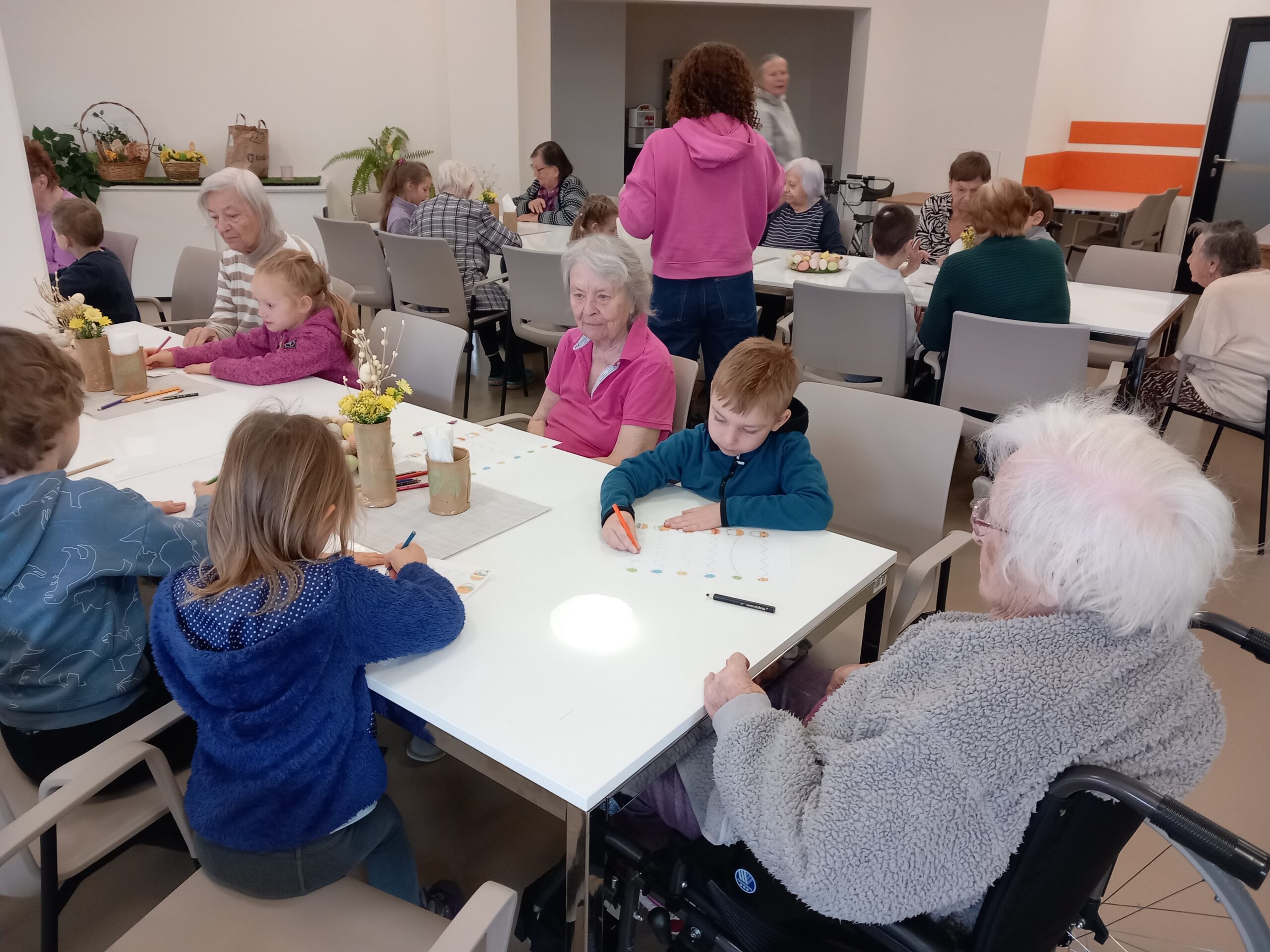 Společně jsme se pustili do velikonočního tvoření, při kterém vznikly pestré dekorace a nechyběla ani dobrá nálada. Mezigenerační setkání znovu ukázalo, jak obohacující je sdílení času mezi dětmi a seniory. Radost byla na obou stranách a celou akci provázela velmi srdečná atmosféra.