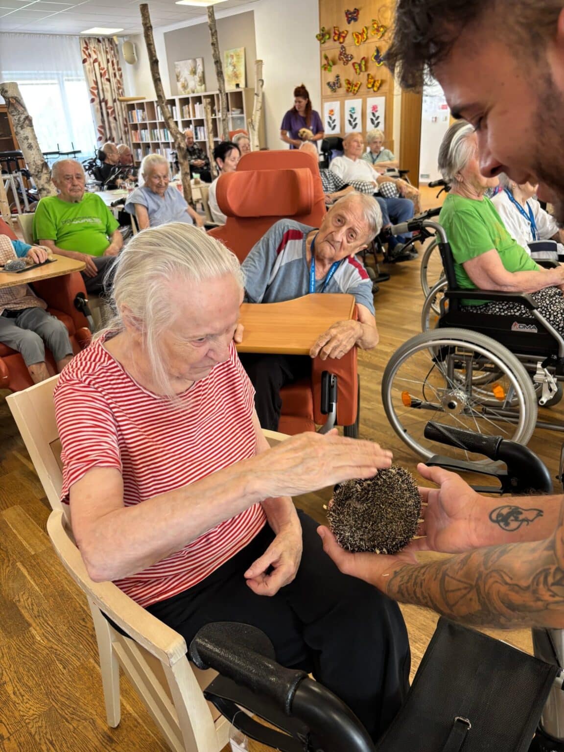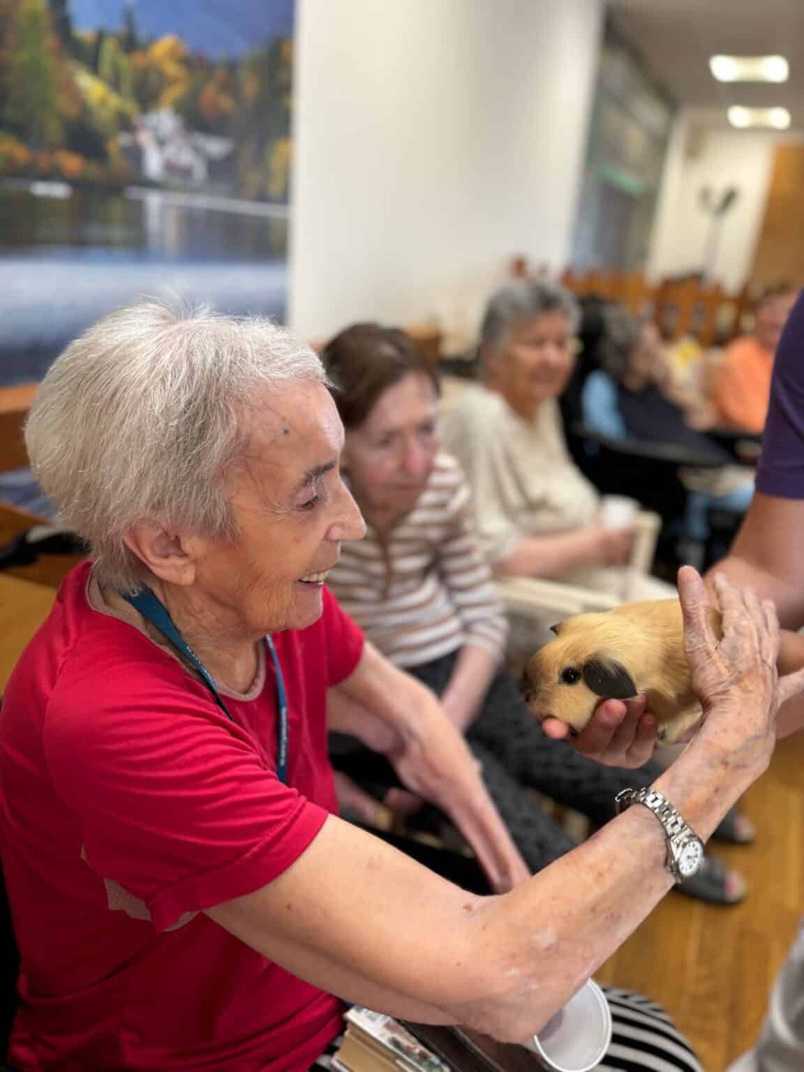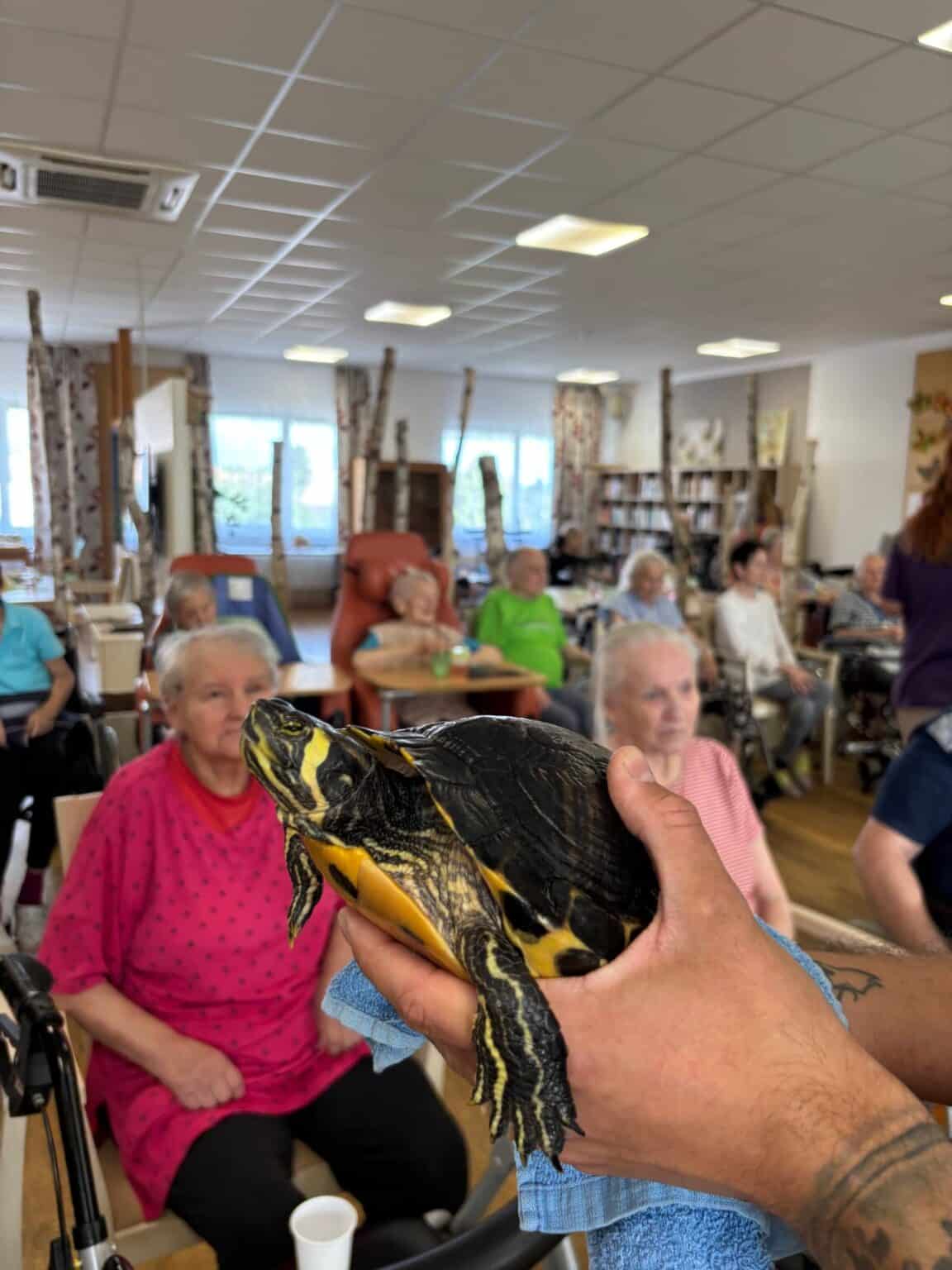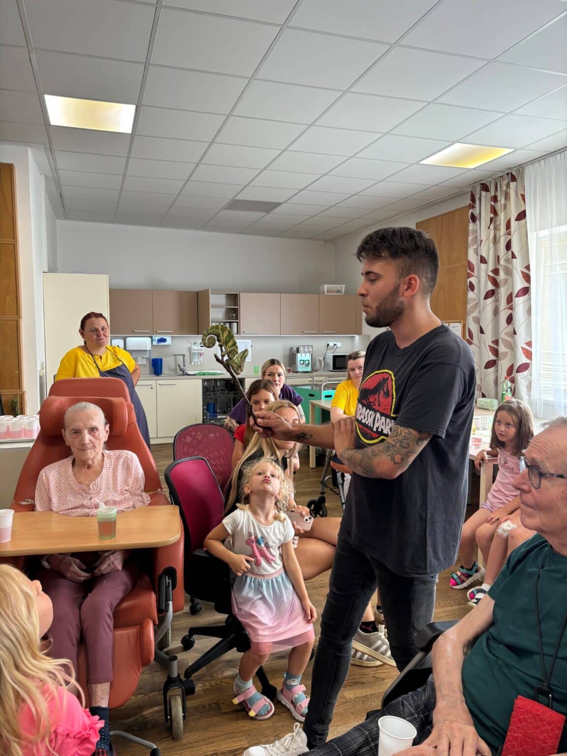 Atmosféra byla přátelská a plná zvědavosti. Klienti se s nadšením zapojili – hladili zvířata, kladli otázky a vzpomínali na své vlastní domácí mazlíčky z dřívějších let. Účast byla hojná a z ohlasů bylo zřejmé, že se akce velmi líbila. Děkujeme panu Filípkovi za jeho návštěvu a věříme, že se podobné setkání v budoucnu zopakuje.