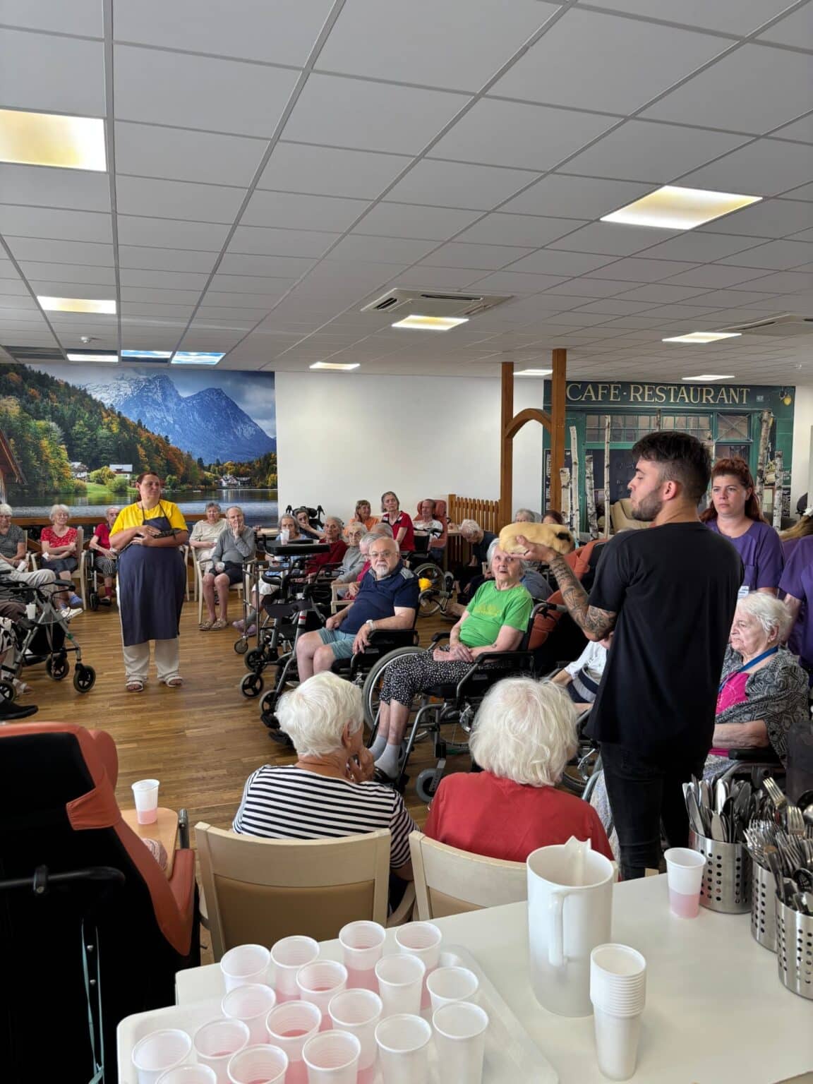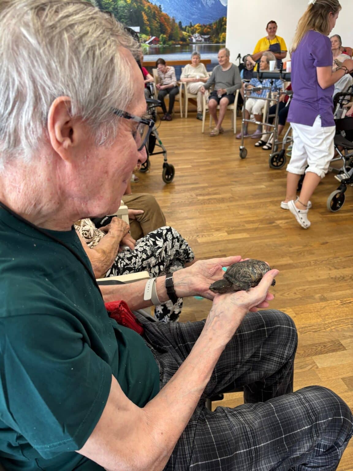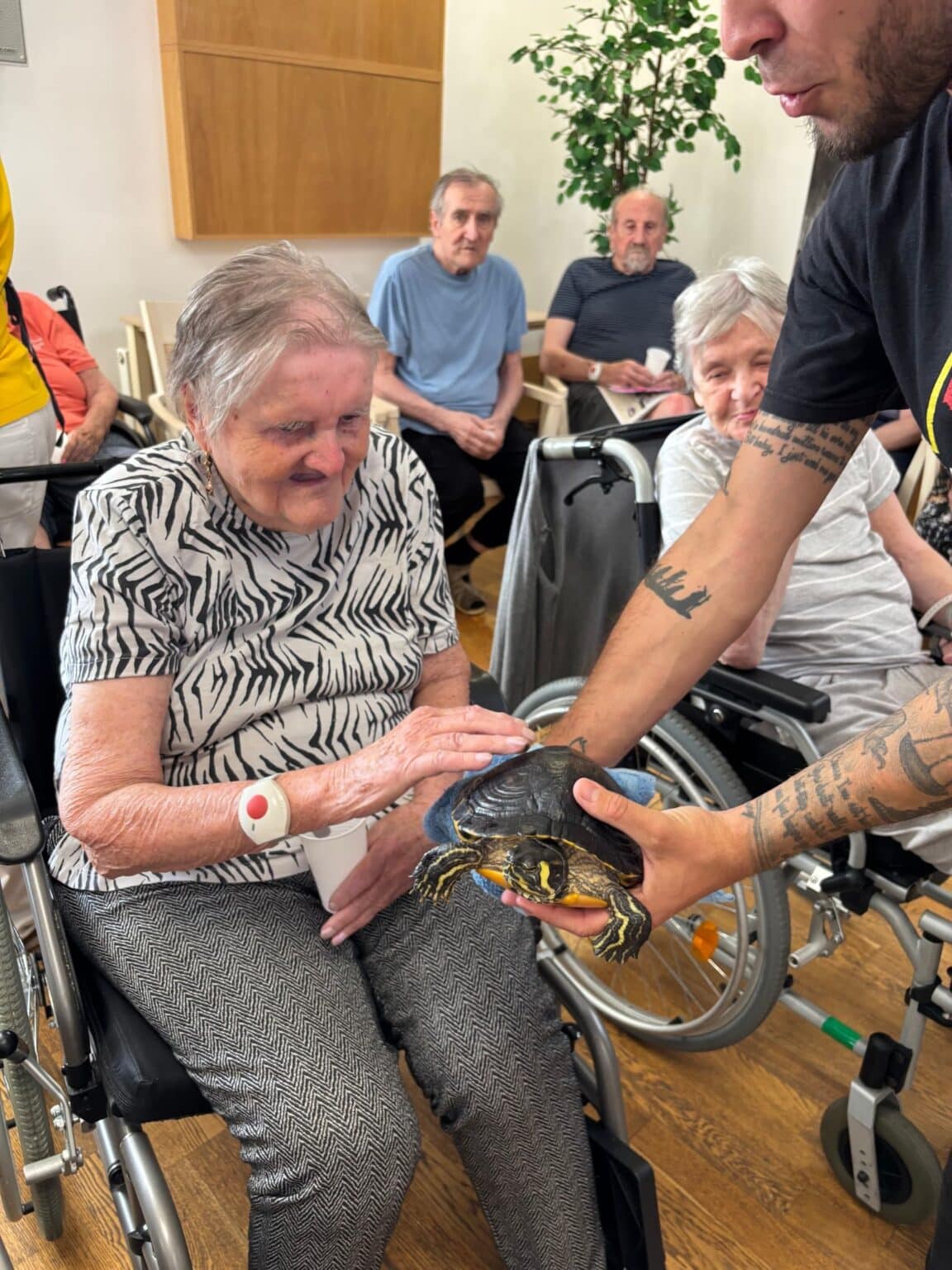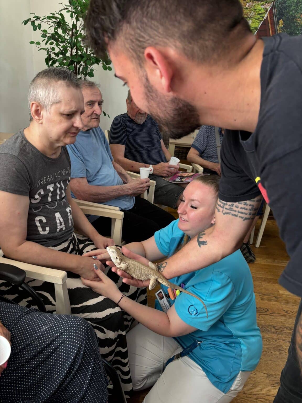Atmosféra byla přátelská a plná zvědavosti. Klienti se s nadšením zapojili – hladili zvířata, kladli otázky a vzpomínali na své vlastní domácí mazlíčky z dřívějších let. Účast byla hojná a z ohlasů bylo zřejmé, že se akce velmi líbila. Děkujeme panu Filípkovi za jeho návštěvu a věříme, že se podobné setkání v budoucnu zopakuje.