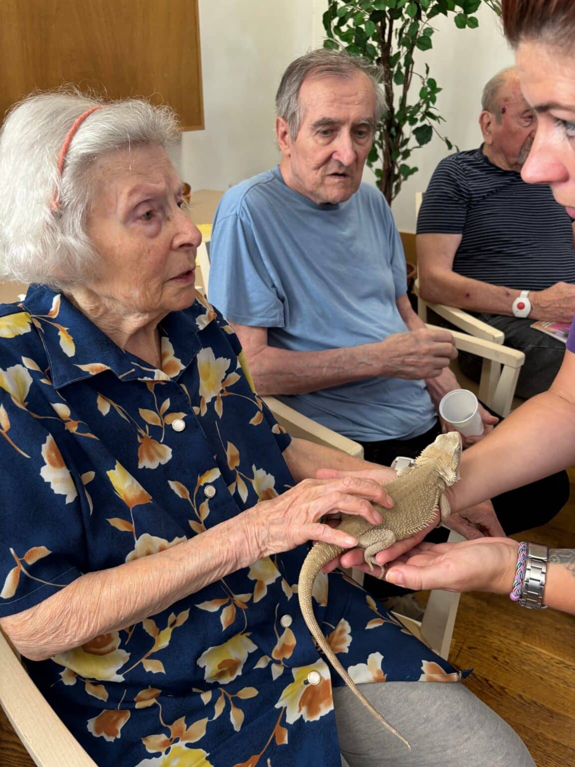Tento týden jsme měli v našem domově nevšední a velmi milou návštěvu. Zavítal k nám chovatel exotických zvířat pan Filípek, který s sebou přivezl zajímavé a neobvyklé obyvatele zvířecí říše. Klienti tak měli jedinečnou možnost zblízka si prohlédnout a dokonce pohladit nebo vzít do rukou tvory, které běžně vídáme spíše v přírodopisných dokumentech.