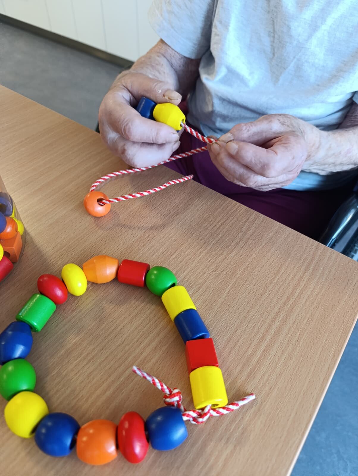 Naše šikovné ruce v akci! 🙌 Dnes jsme se v Senevida Nepomuk v rámci terapie setkali, abychom rozvíjeli jemnou motoriku a kreativitu. Někteří naši klienti si užili relaxační navlékání barevných korálků, zatímco jiní se s nadšením pustili do výroby z papíru. Každé takové tvoření přináší radost, pocit užitečnosti a krásné výsledky.
