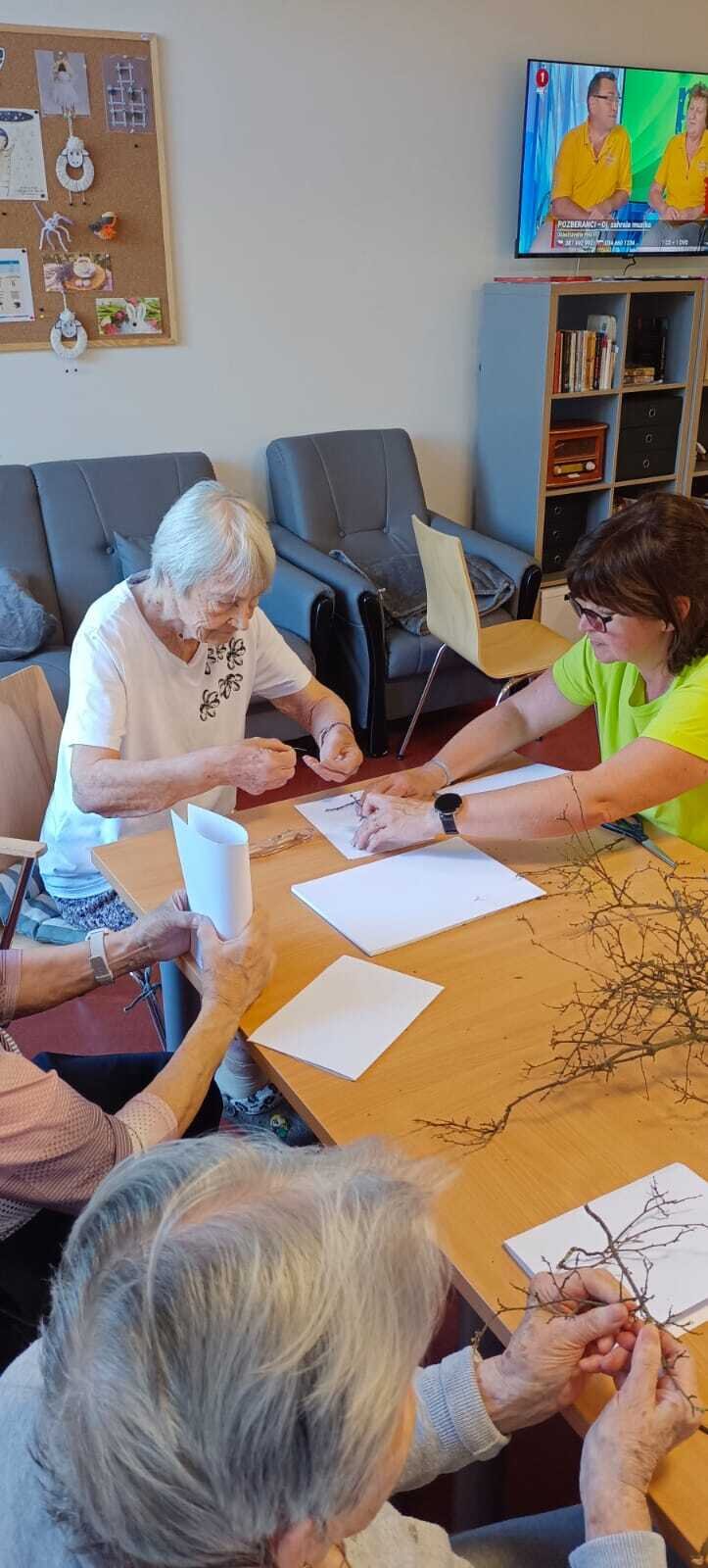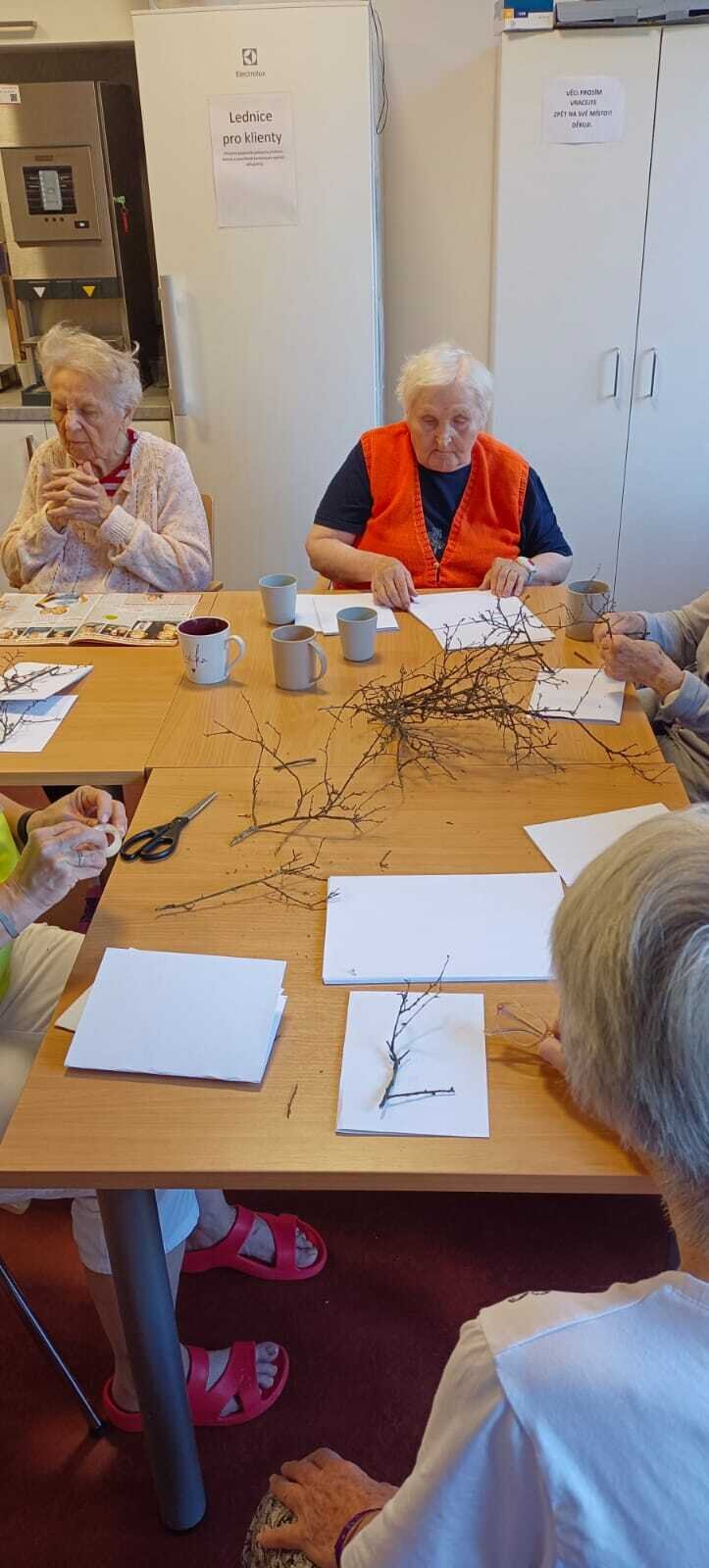 Naši klienti v Senevida Nepomuk rádi něco vyrábí a tak jsme tentokrát zvolili variantu v kombinaci papír, větvičky, krepový papír a lepidlo.👍