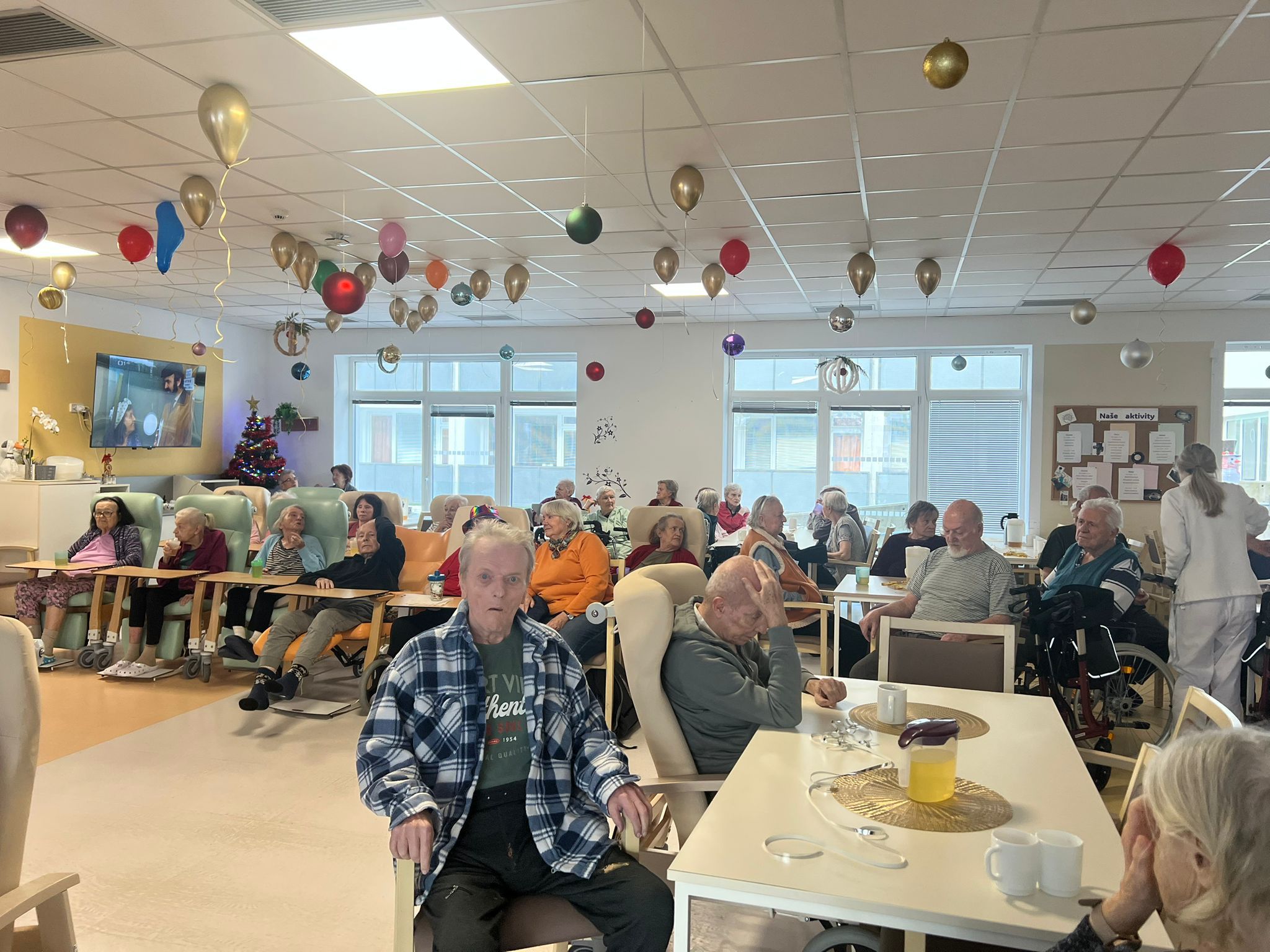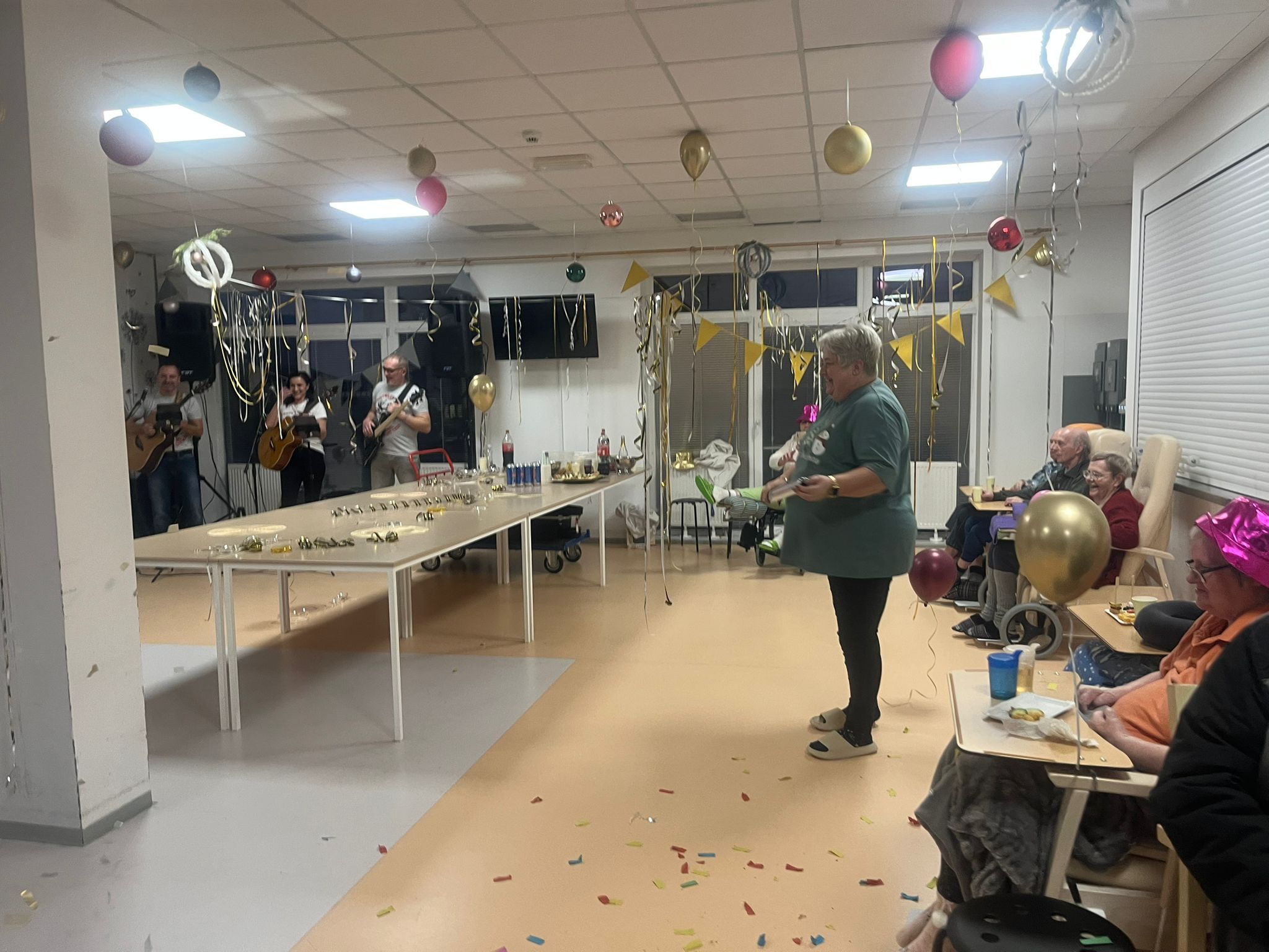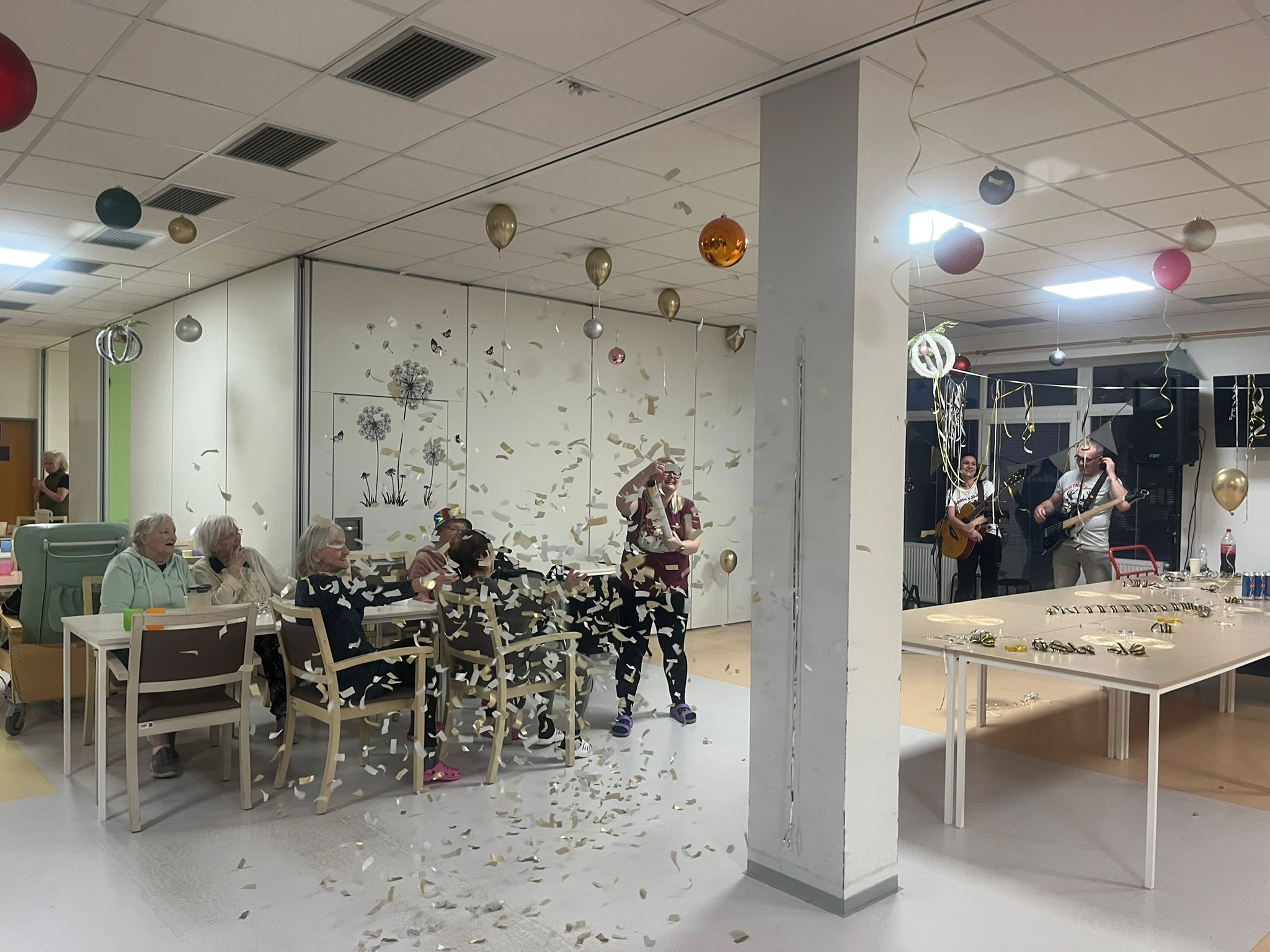 Celé úterý se v našem zařízení ALZHEIMER HOME Česká Lípa neslo v duchu příprav na show Silvestr před Silvestrem. Klienti si sami připravili občerstvení, o výzdobu se postaraly sociální a aktivizační pracovnice a k tanci a poslechu hrála celé odpoledne kapela JA-HE-VA.
