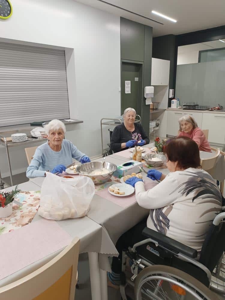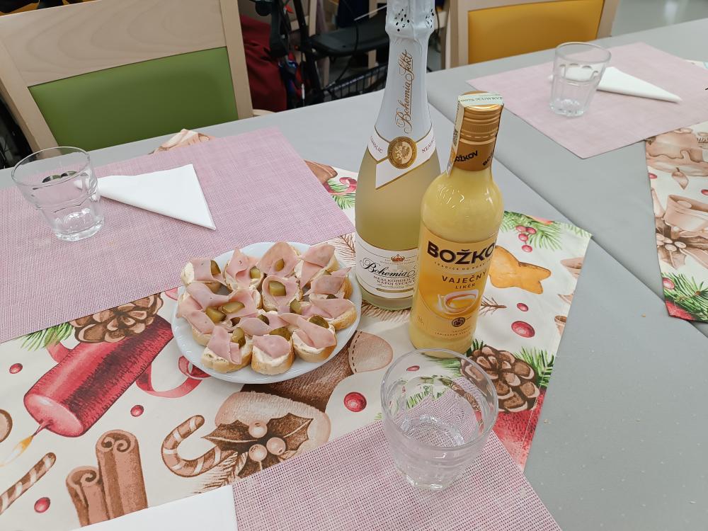 Společnými silami klientů a aktivizačních pracovnic vznikly výborné jednohubky. Část klientů chystala pohoštění, zatímco ostatní se sešli u sledování tradiční pohádky Mrazík.