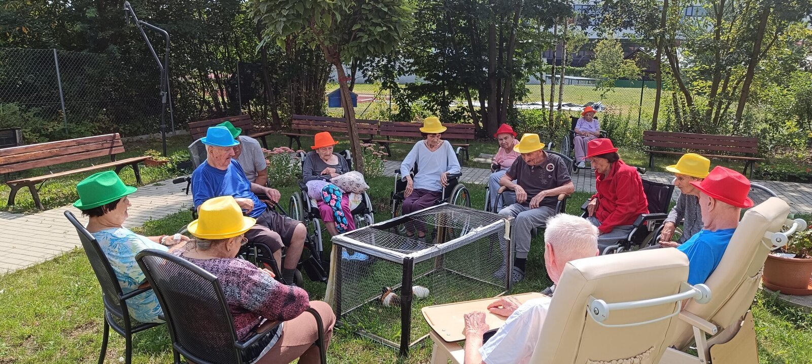 Slunečné dny v Senevida Modřany trávíme co nejvíce venku, tak i tentokrát tomu nebylo jinak. Po obědě jsme se přesunuli na zahrádku, kde jsme společně strávili čas i s našimi morčaty při poslechu hudby. 😊