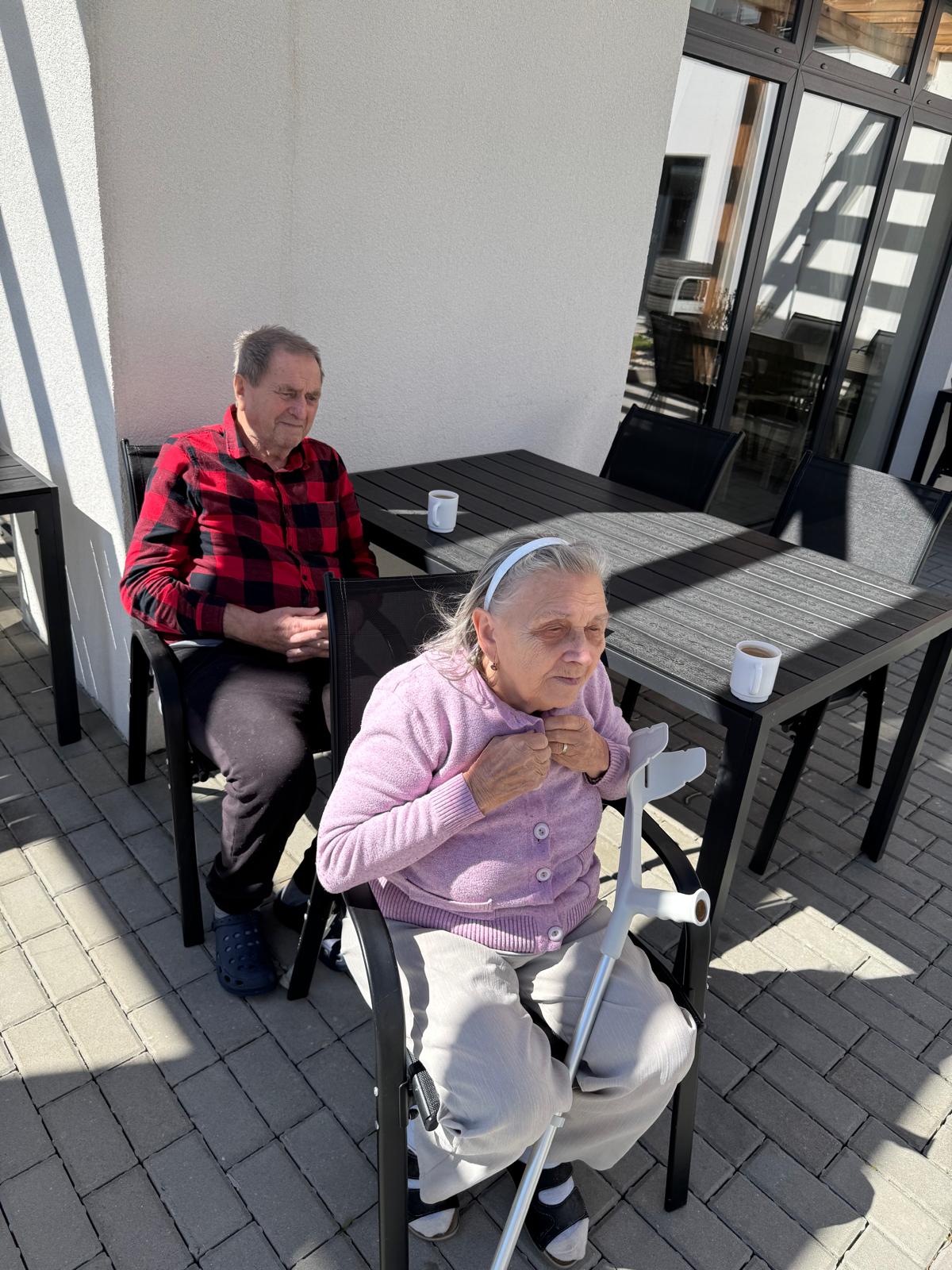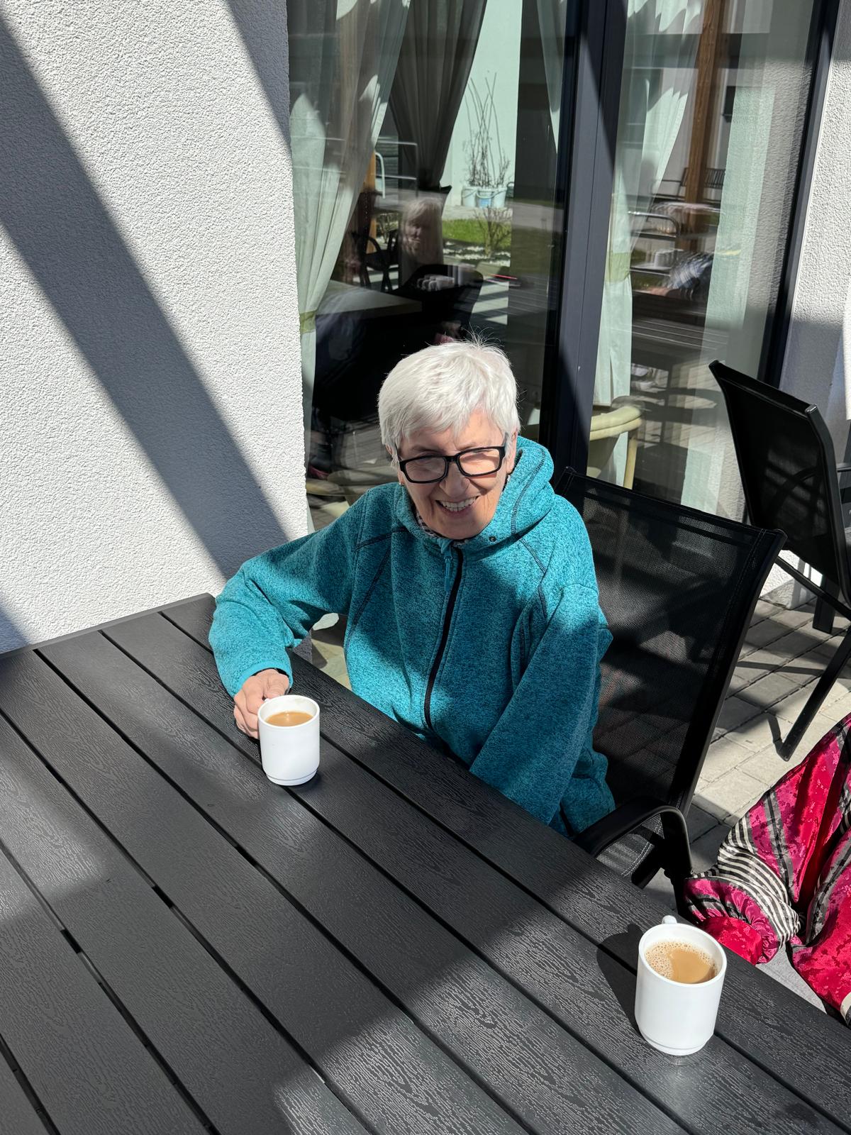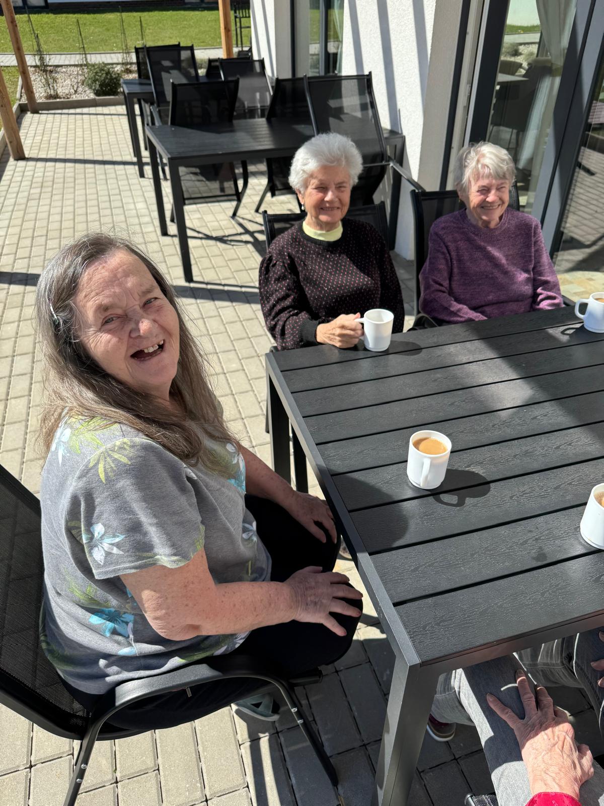 Využili jsme hezkého slunečného počasí a užili si odpolední čas u kávy venku na terase.☀