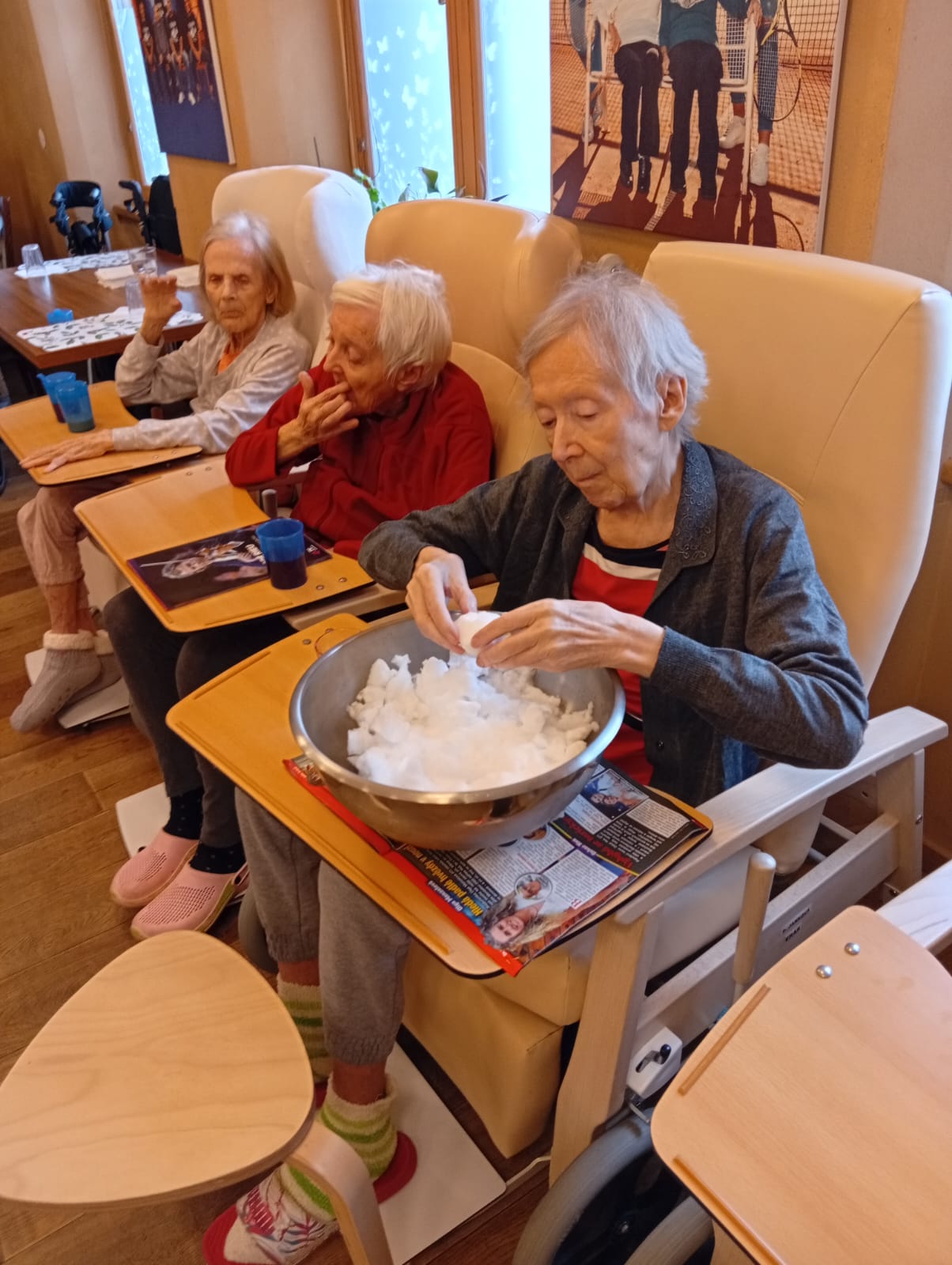 Napadl nám sníh, ale abychom neriskovali zranění na ledu nebo nachlazení z chladného počasí, potěšili jsme se čerstvým sněhem alespoň takto.