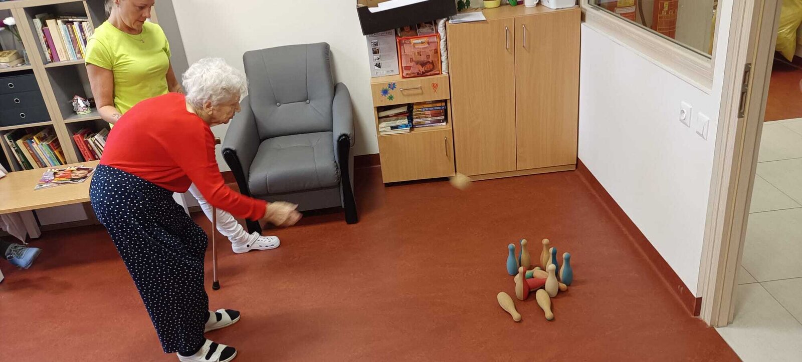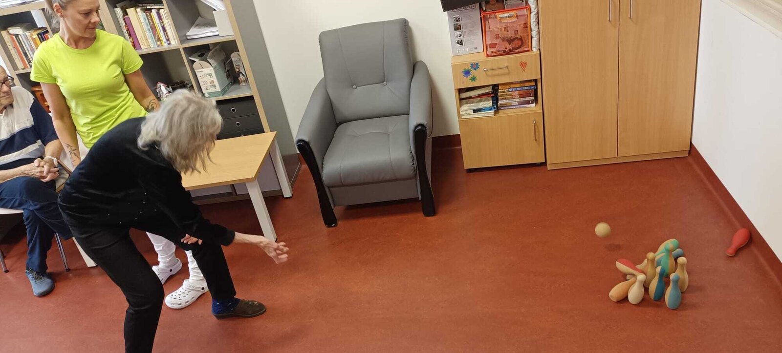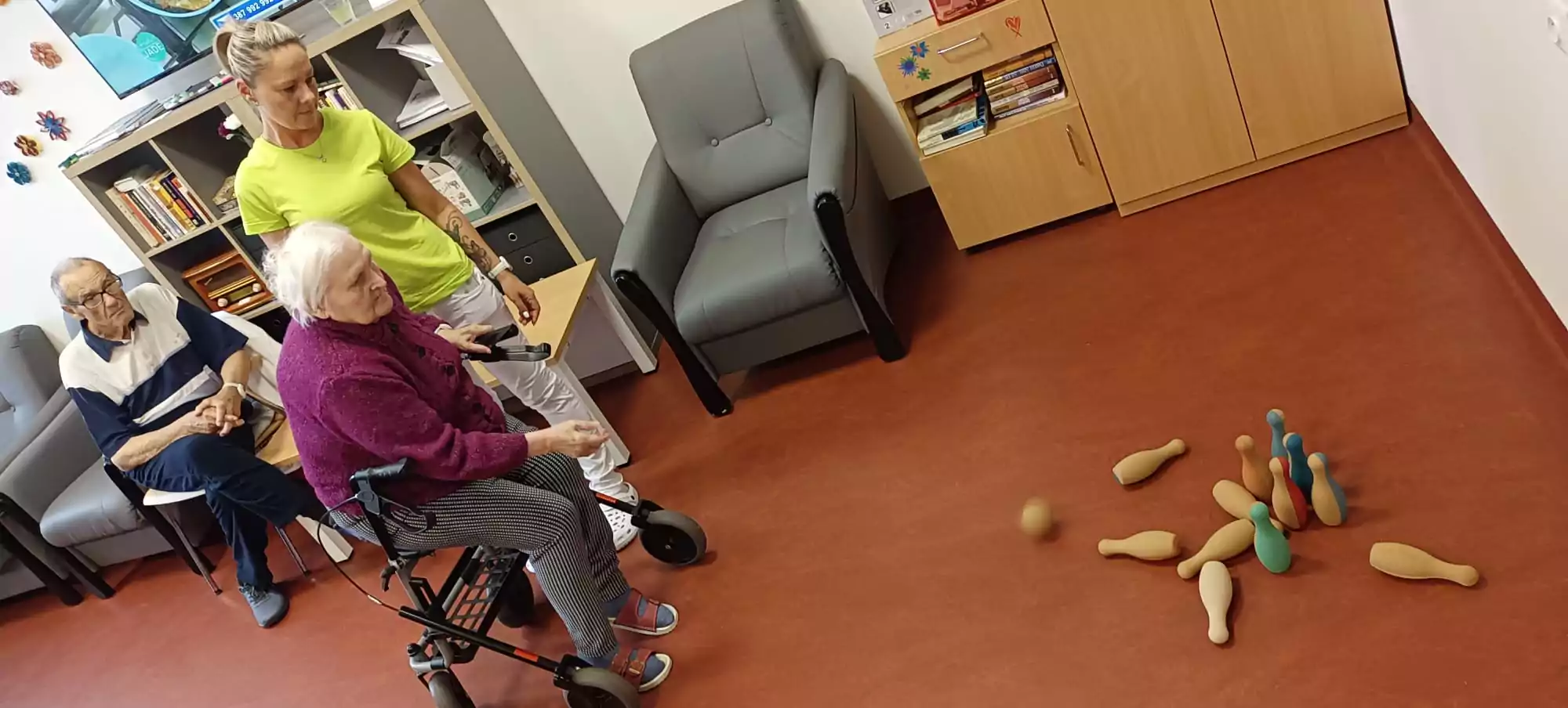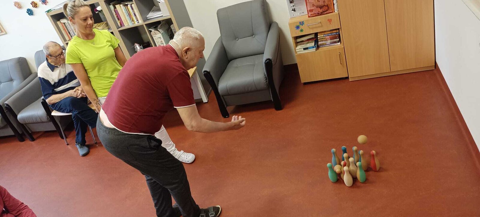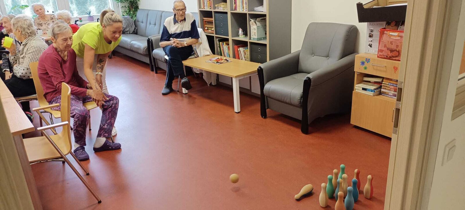 V rámci hraní kuželek podporujeme fyzickou a sociální aktivitu. Tato tradiční hra má bohatou historii a je oblíbená po celém světě i u nás v zařízení 🎉😍