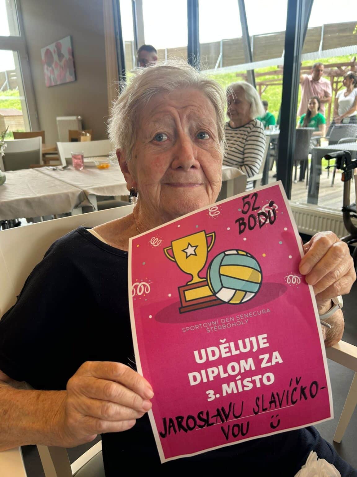 Celý den se nesl v duchu „Sportovního dne“, konkrétní aktivity jsme samozřejmě upravili možnostem klientů. Soutěžilo se například v hodu na terč, petagu nebo kuželkách.