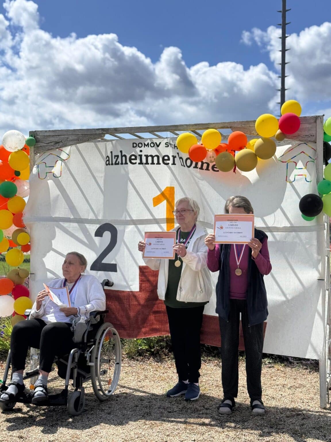 Děkujeme všem, kteří nám umožnili být součástí této krásné události – paní ředitelce Alzheimer Home Evě Stehlíkové za pozvání, obci Radimovice za podporu, sponzorům za skvělou organizaci i doprovodný program. Zvláštní poděkování patří našim rehabilitačním sestřičkám Šárce a Verunce za neocenitelnou podporu během dne, stejně jako aktivizačním pracovníkům Žandě, Petě a Lukymu, kteří s klienty poctivě trénovali už od jara. Nezapomenutelnou atmosféru doladily děti Kristián a Mája, naši malí maskoti, kteří přinesli energii, úsměv a neskrývanou radost.