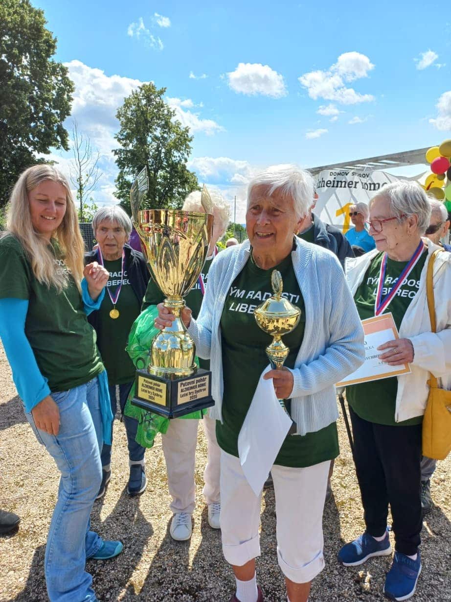 Výsledek celodenního snažení byl korunován nádherným prvním místem pro náš tým. Oslava byla spontánní, radostná a doprovázená písněmi i dojetím. Všichni přítomní si uvědomovali, že největší výhrou je být spolu, sdílet zážitky a ukazovat, co všechno je možné – bez ohledu na věk či zdravotní omezení.