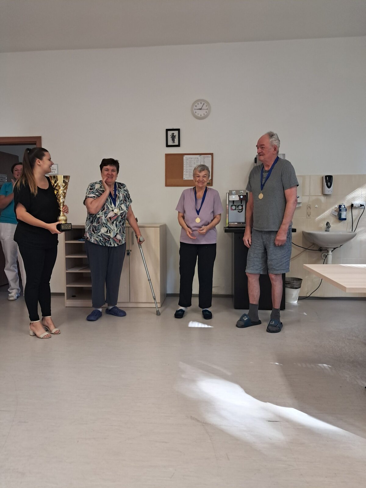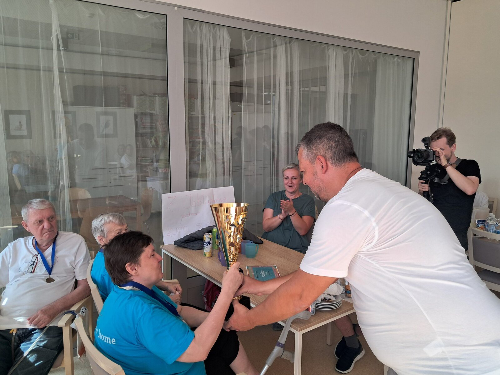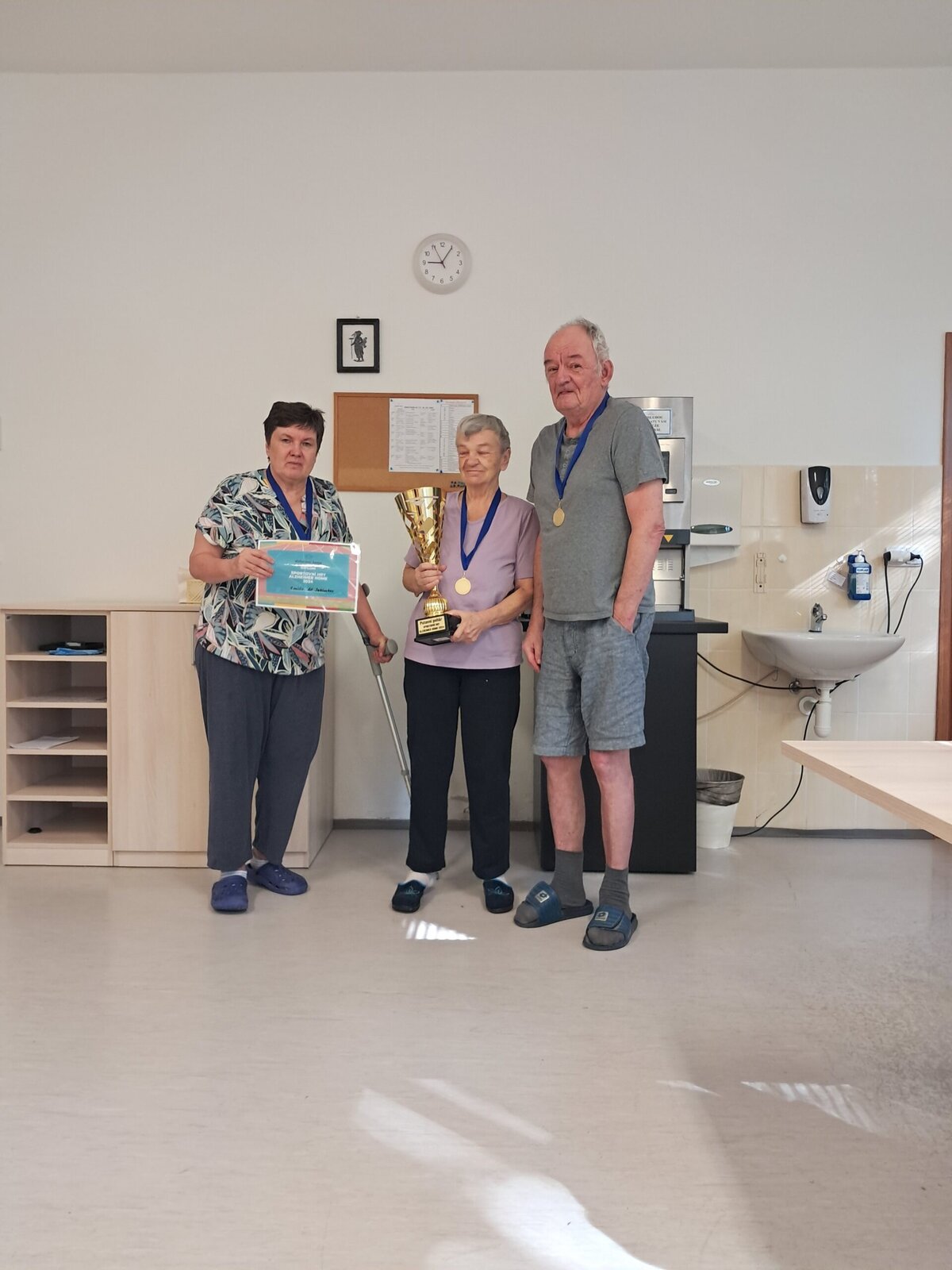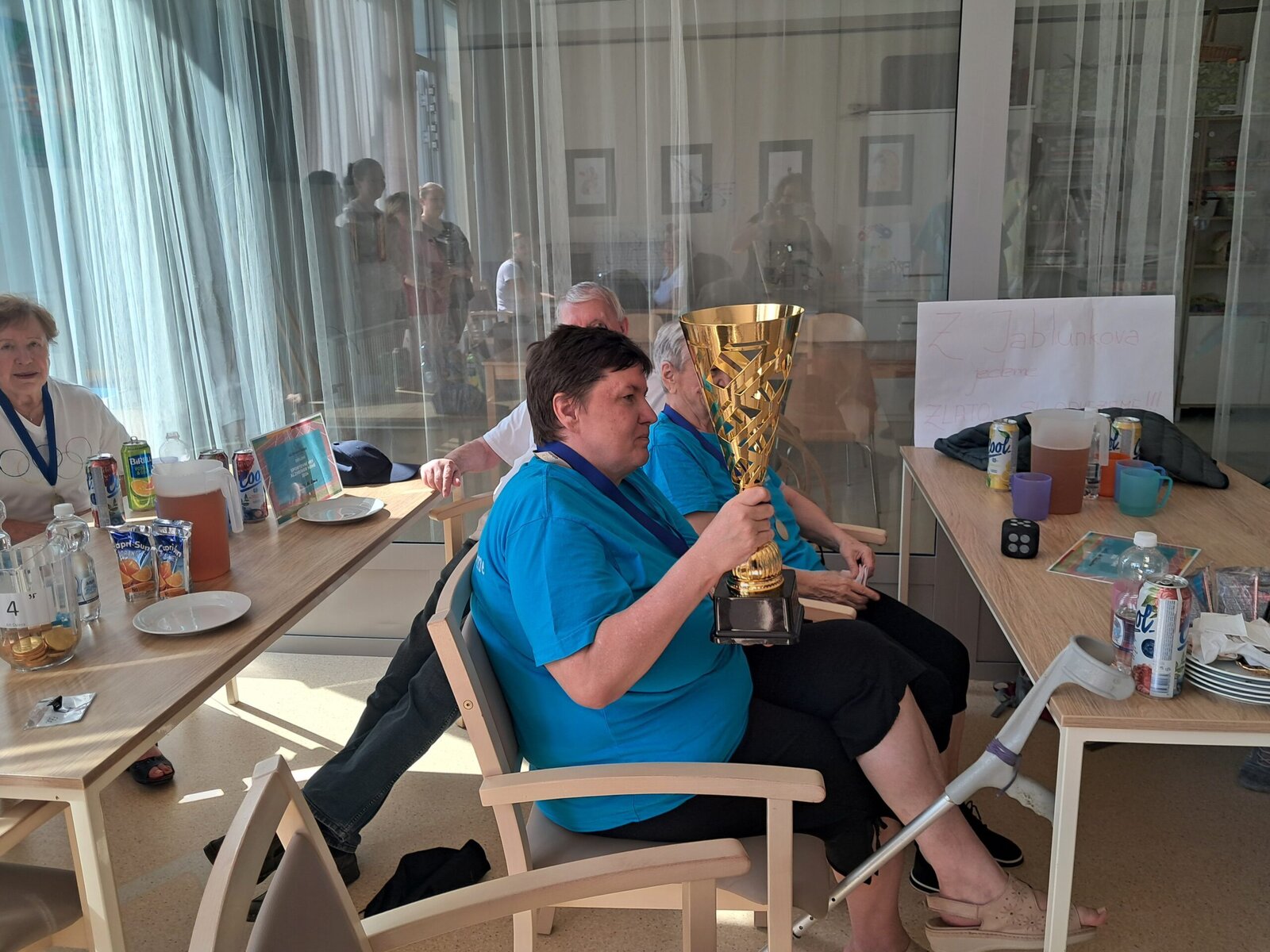 Dnes jsme pro náš tříčlenný tým zorganizovali oslavu vítězství, paní ředitelka klientům poděkovala za skvělou reprezentaci našeho zařízení, nechyběl přípitek a něco sladkého k snědku. Gratulujeme všem klientům! 👏 Děkujeme jim za účast a díky také patří pořadatelům za kvalitní organizaci a zábavu. Moc jsme si to užili a těšíme se na příští hry👍.