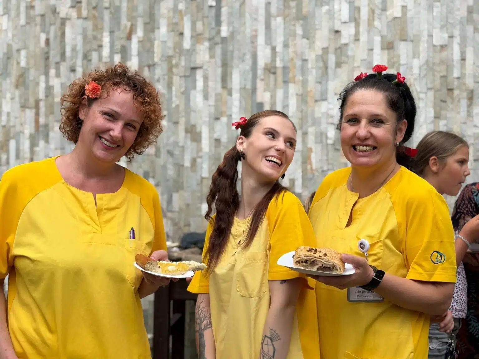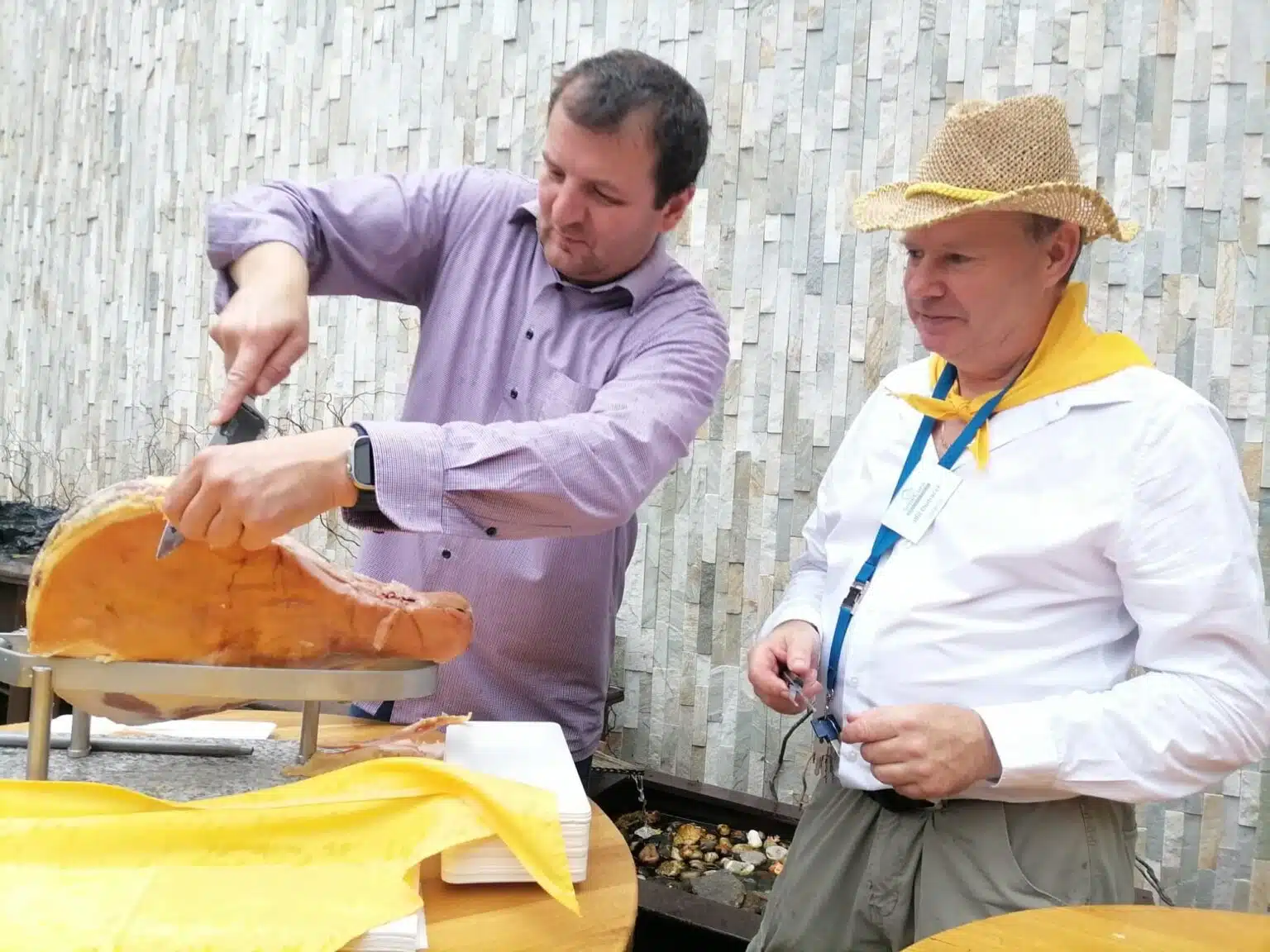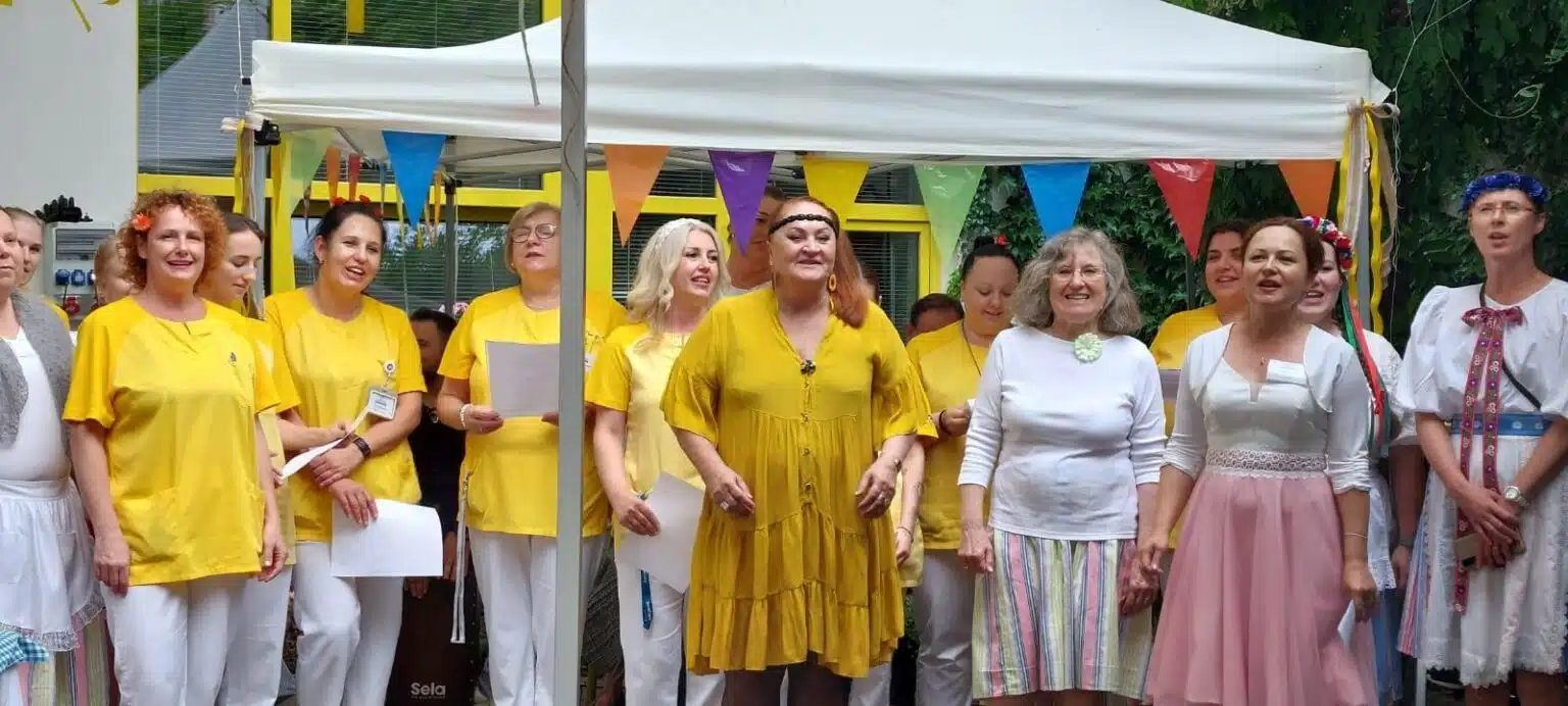 Pan Karel Kekeši s akordeonem v ruce zahrál a zazpíval na úvod. Než se paní ředitelka postavila k mikrofonu, aby přivítala všechny hosty, klienty i zaměstnance, převzali pomyslnou štafetu právě zaměstnanci a zazpívali dvě nacvičené lidovky. Ještě šéfkuchař objasnil nabízené menu, sestavené tak, aby demonstrovalo téma letošní slavnosti. V nabídce byly různé druhy mas i jitrnic, koláčů i kremrolí, dalších salátů a dobrot. K pití bylo podáváno zlatavé pivo i víno, kofola i káva. Zvláště děti, ale také nejeden klient, si přišel na své u pultu se zmrzlinou.