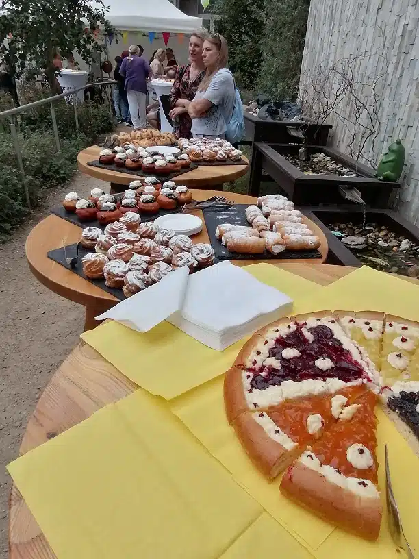 Zahrada je díky dobrovolníkům krásně uklizená, sluníčko by mělo také chvíli svítit. Teď už jen postavit přístřešky, naaranžovat kytky a dobroty, dodělat cukroví, nafouknout balónky, vetknout květy do copů. To a spousta dalších důležitých činností byla potřeba udělat, aby ve 14:00 hodin 10. září 2025 mohla vypuknout největší sláva na půdě SeniorCentra Klamovka.