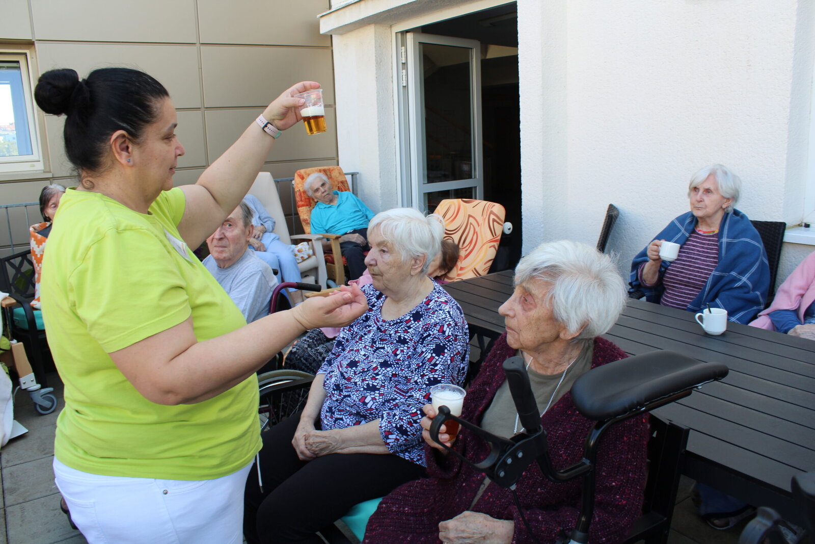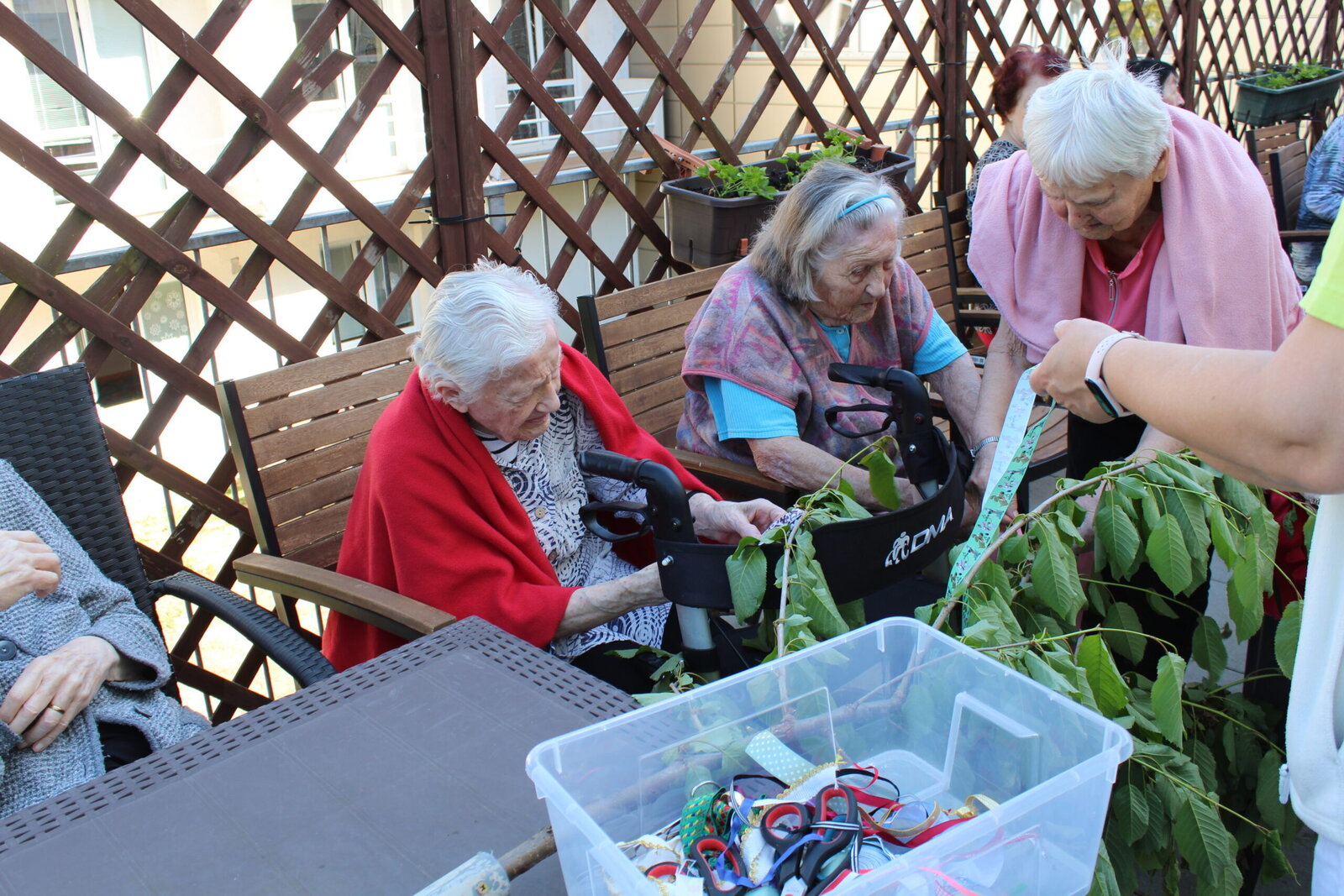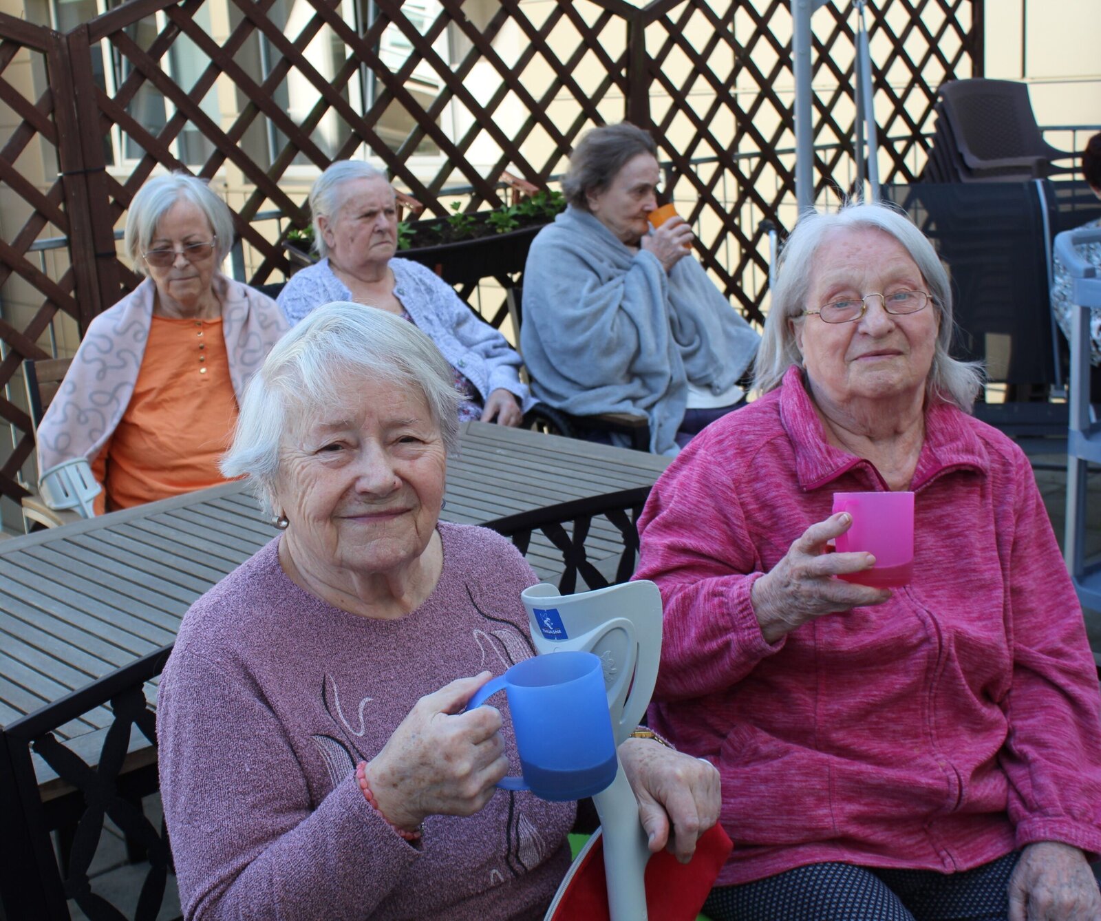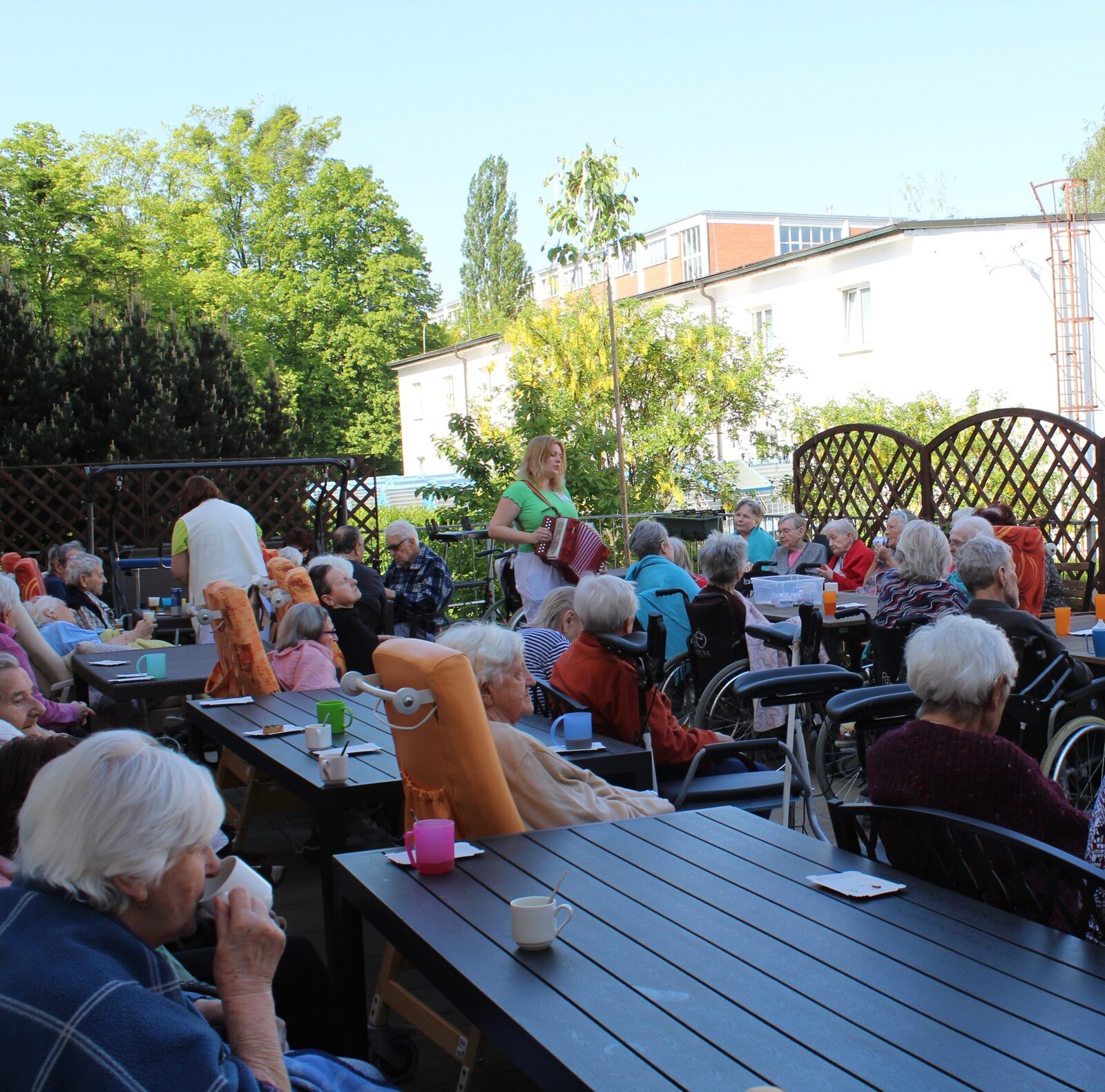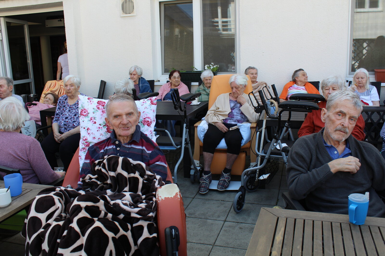 Přivítali jsme měsíc květen postavením májky. Ozdobili jsme ji pentlemi, postavili a nyní zdobí terasu. Věříme, že nám vydrží po celý květen. Ke zdobení jsme zpívali, pili kávu a dali si sladkou buchtu. S takovou bude ten květen krásný.