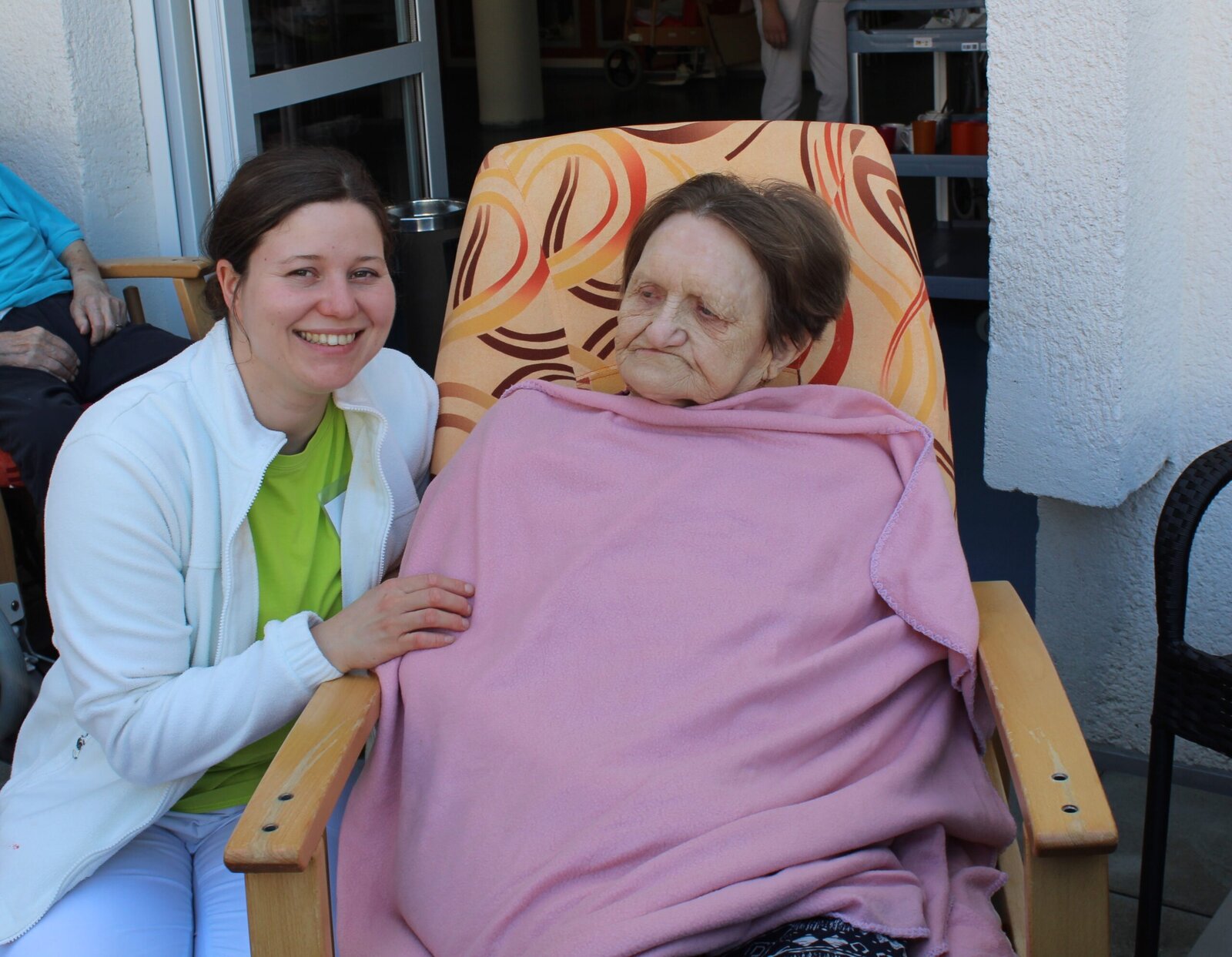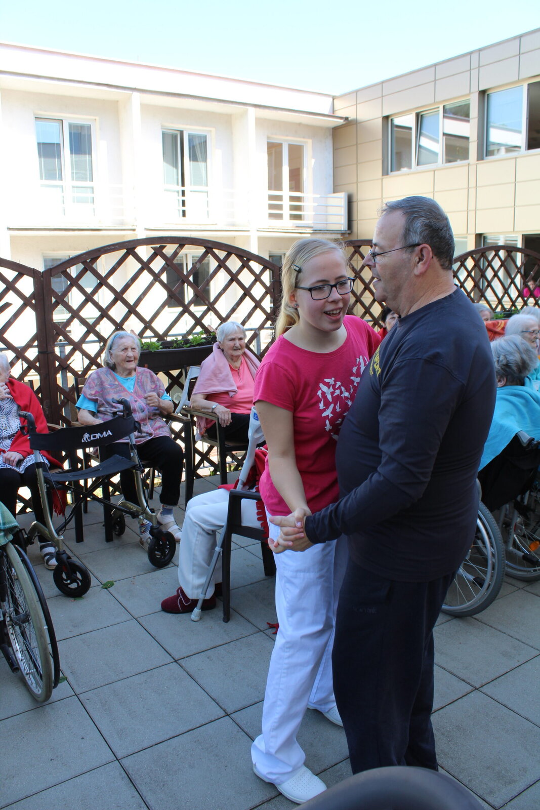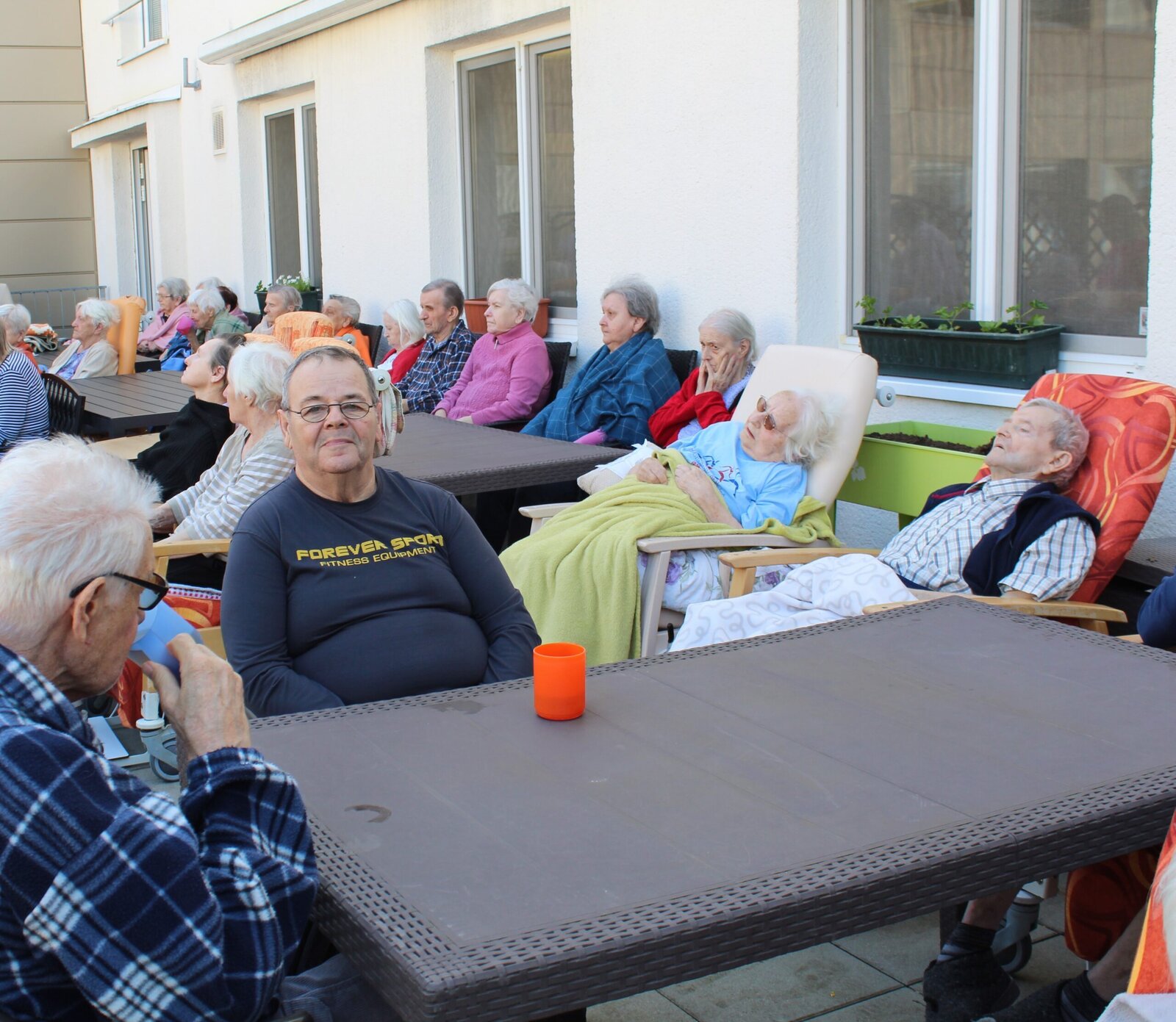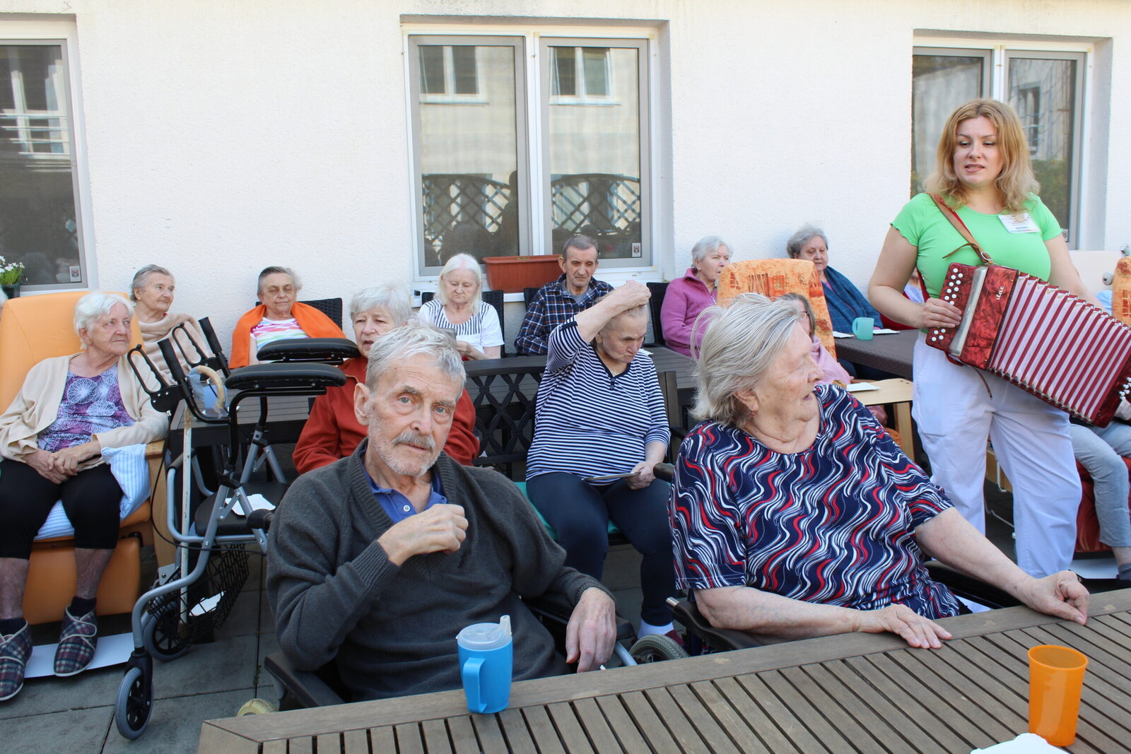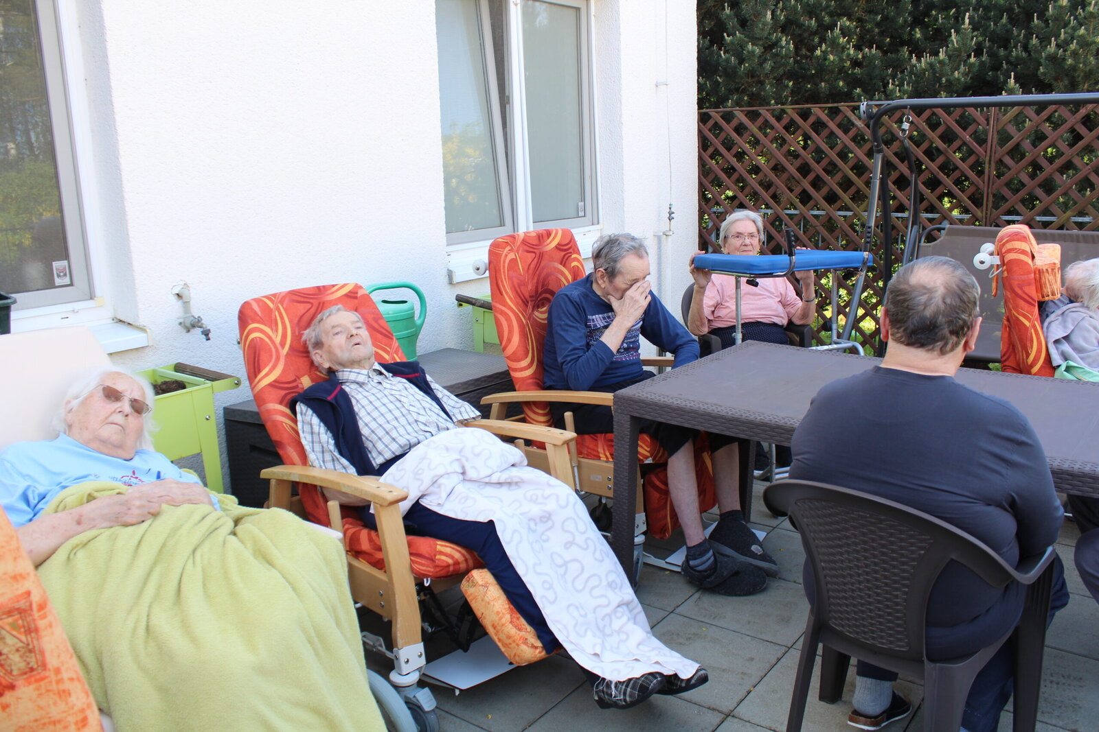 Přivítali jsme měsíc květen postavením májky. Ozdobili jsme ji pentlemi, postavili a nyní zdobí terasu. Věříme, že nám vydrží po celý květen. Ke zdobení jsme zpívali, pili kávu a dali si sladkou buchtu. S takovou bude ten květen krásný.